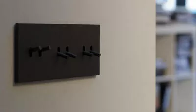 La finition noir mat met en valeur la pureté des lignes, les bords droits, les angles nets et la beauté de la matière de ces interrupteurs design haut de gamme.
