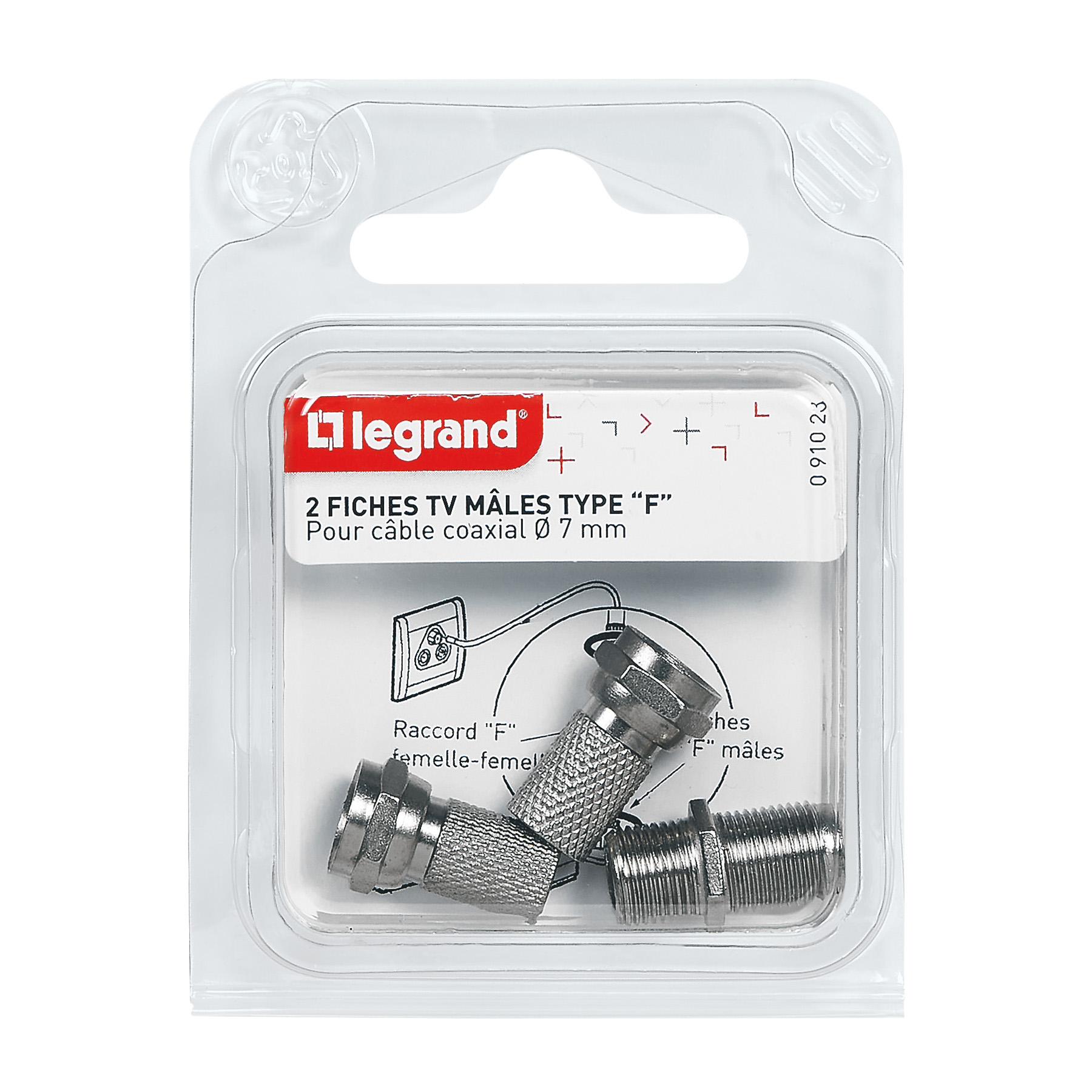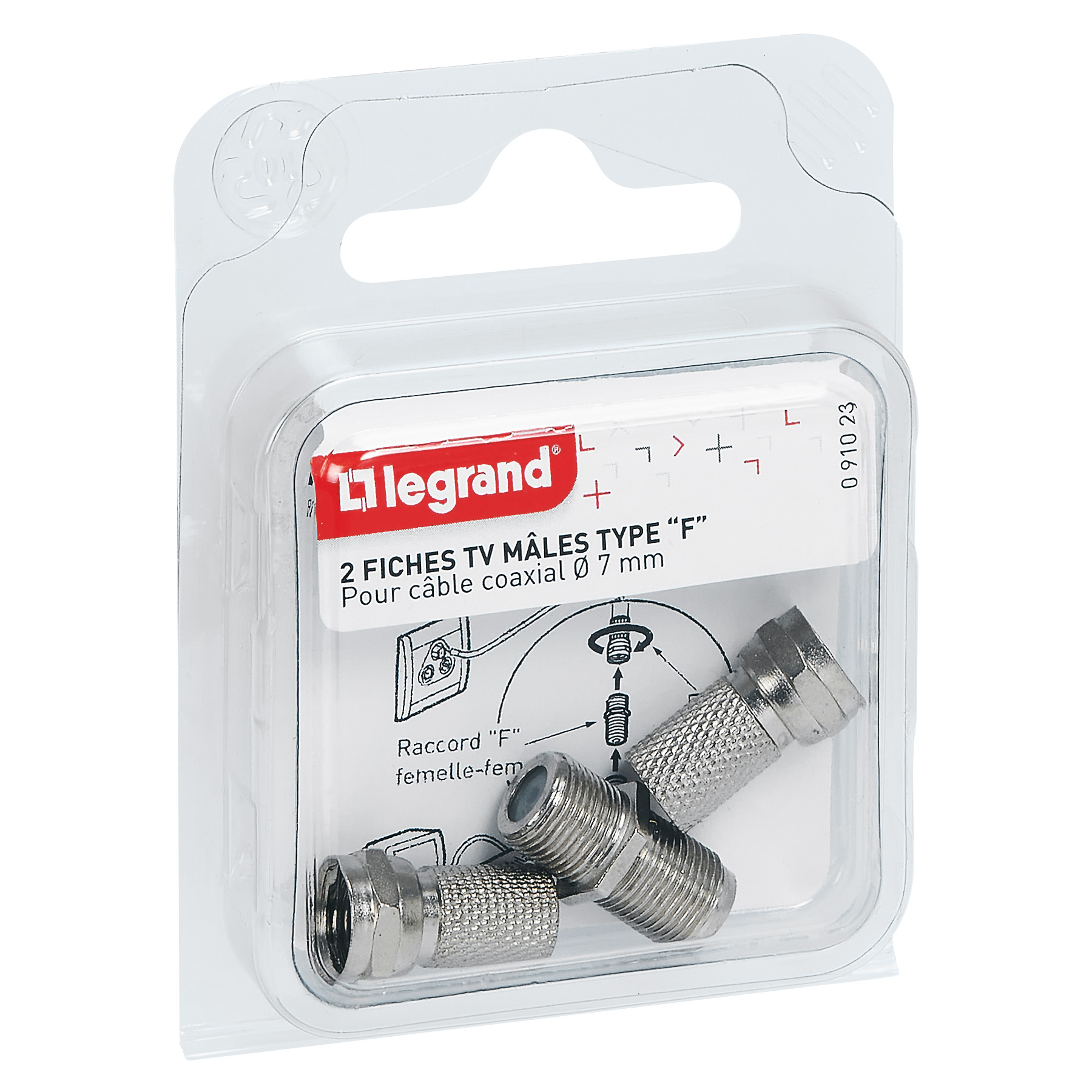 Adaptateur "F" femelle pour fiche TV coaxiale - avec 2 fiches "F" mâles à visser