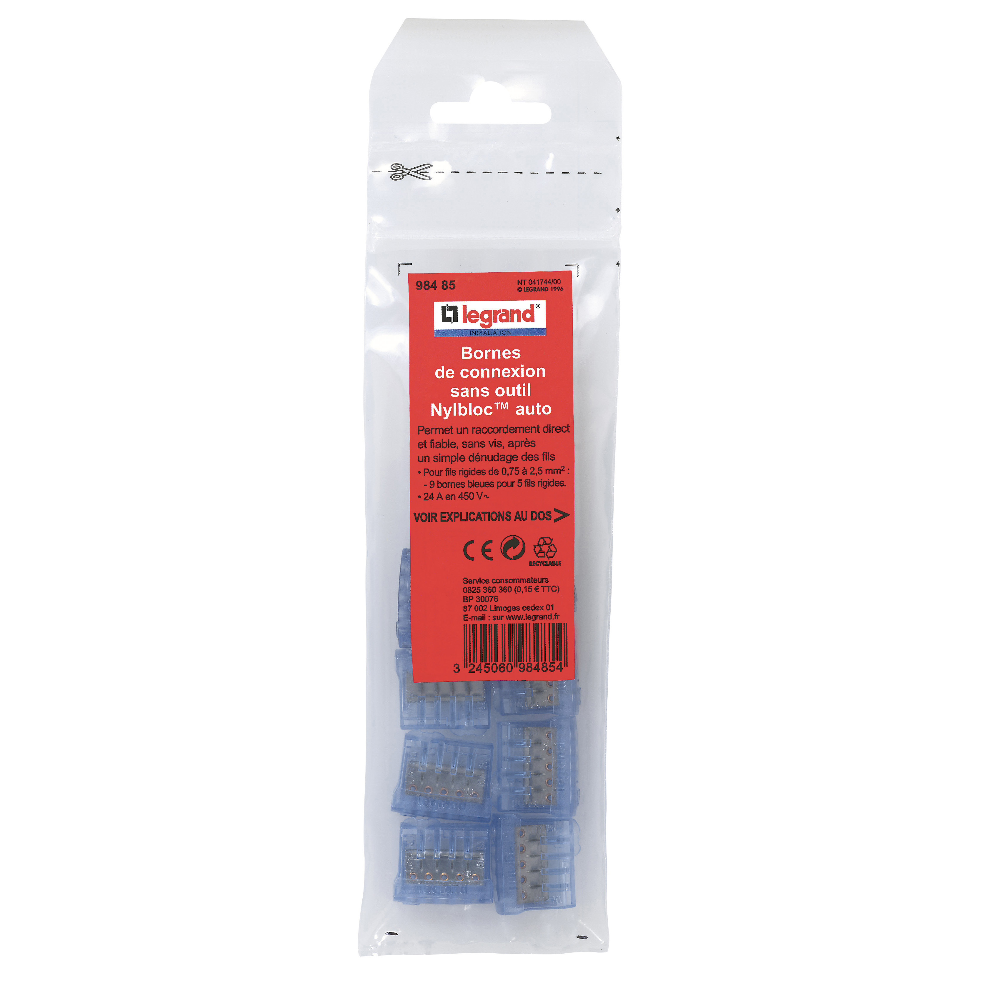 Borne de connexion Nylbloc auto pour fils rigides - 9 bornes bleues pour 5 fils