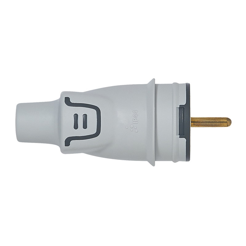 Fiche mâle avec terre Plexo - plastique - IP44 - blister - gris