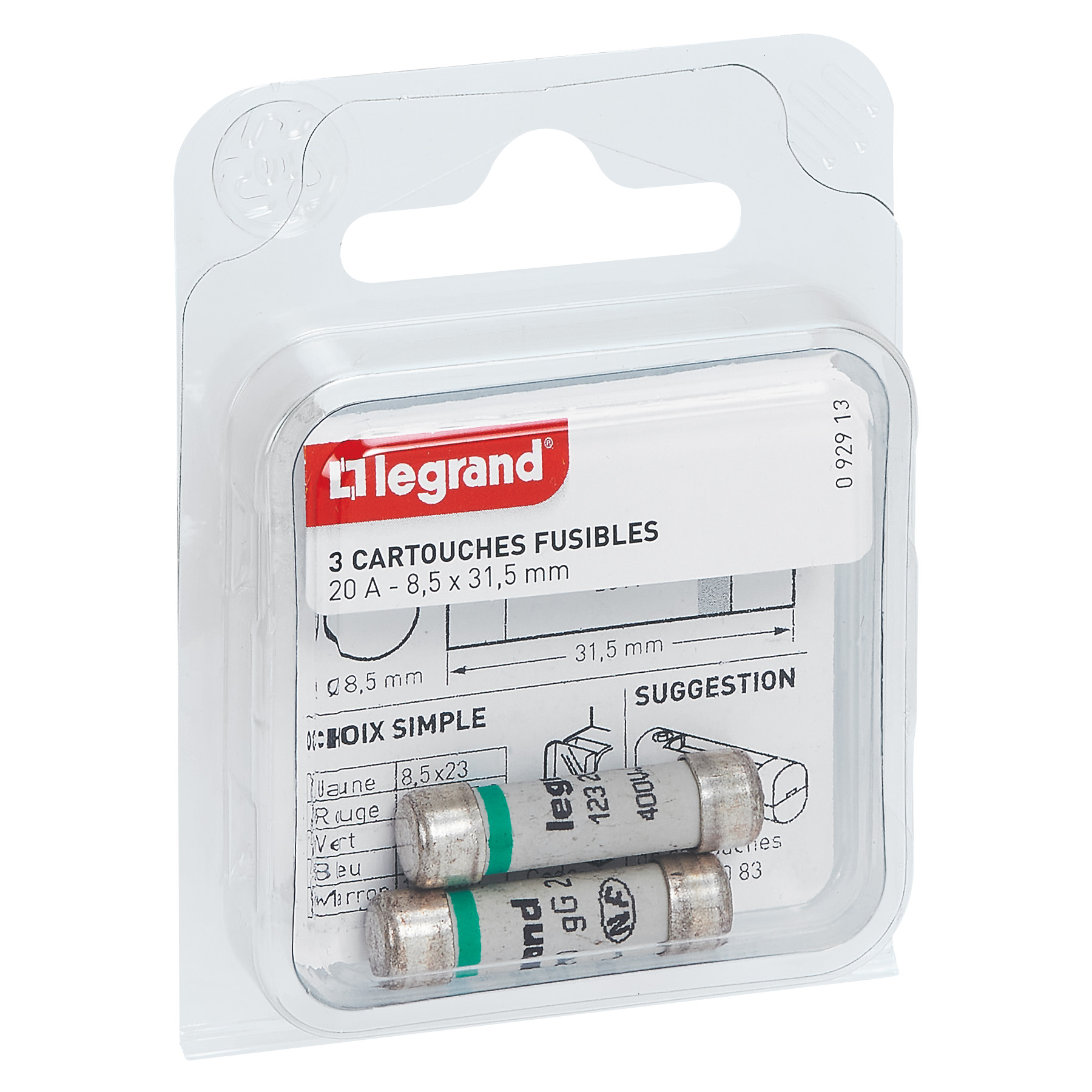 Cartouches fusibles pour porte-fusibles - sans témoin - 8,5x31,5mm - 20A