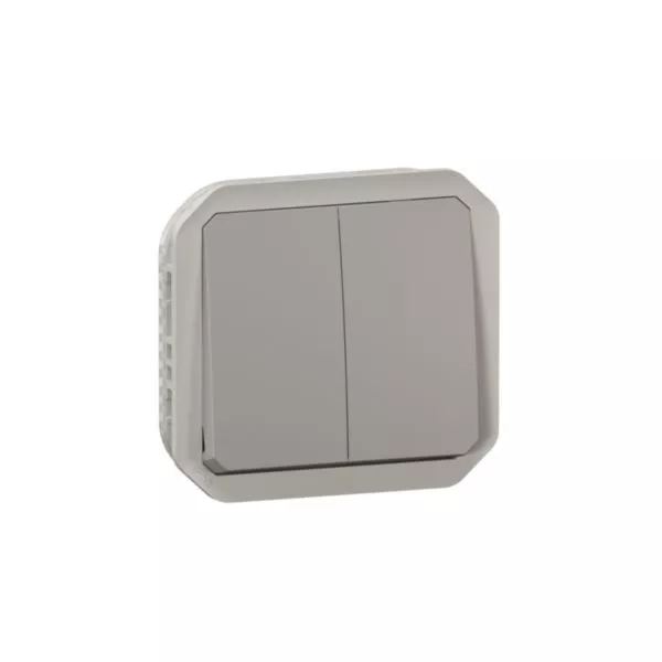 Commande pour fonction double interrupteur ou va-et-vient 10A ou poussoir 10A étanche Plexo finition gris
