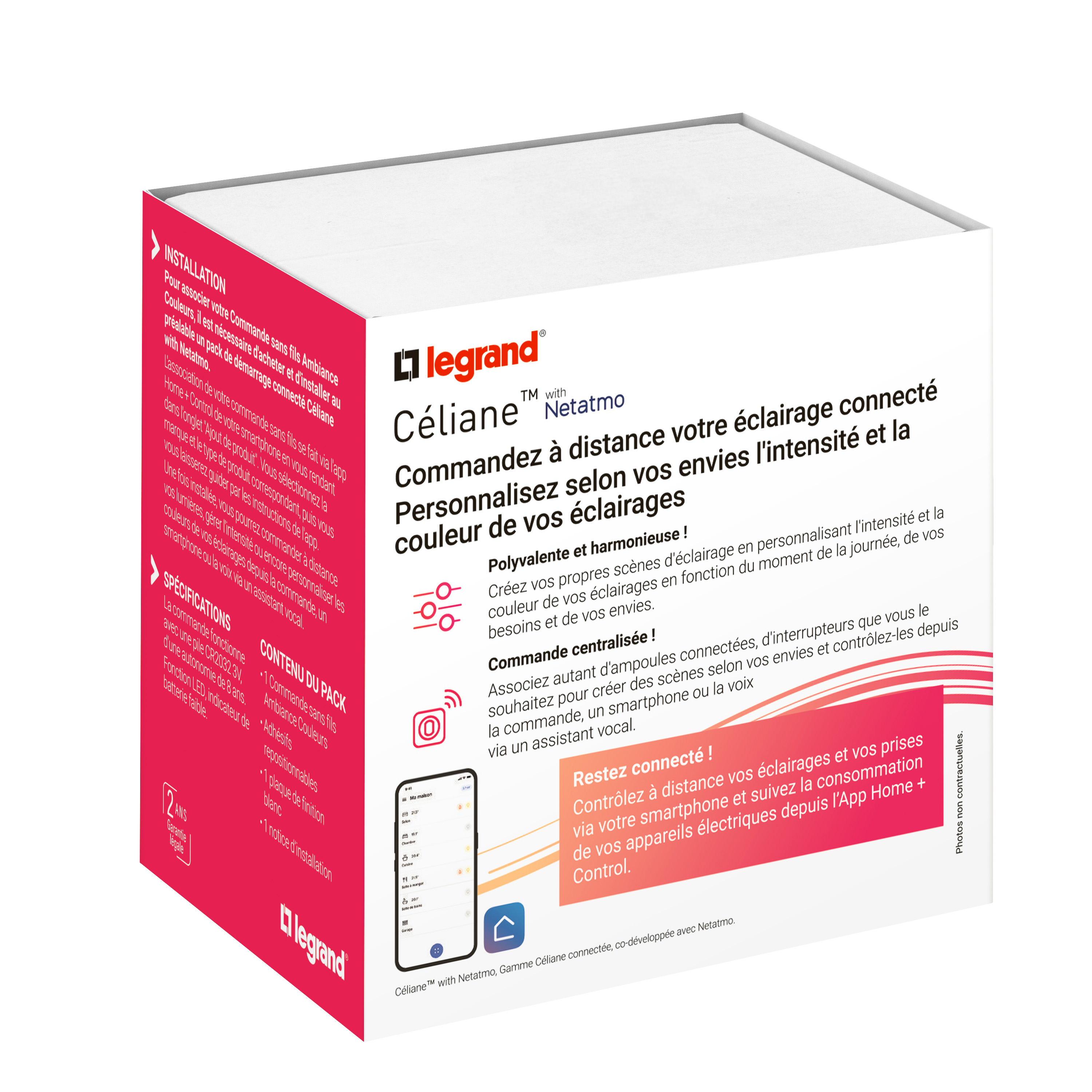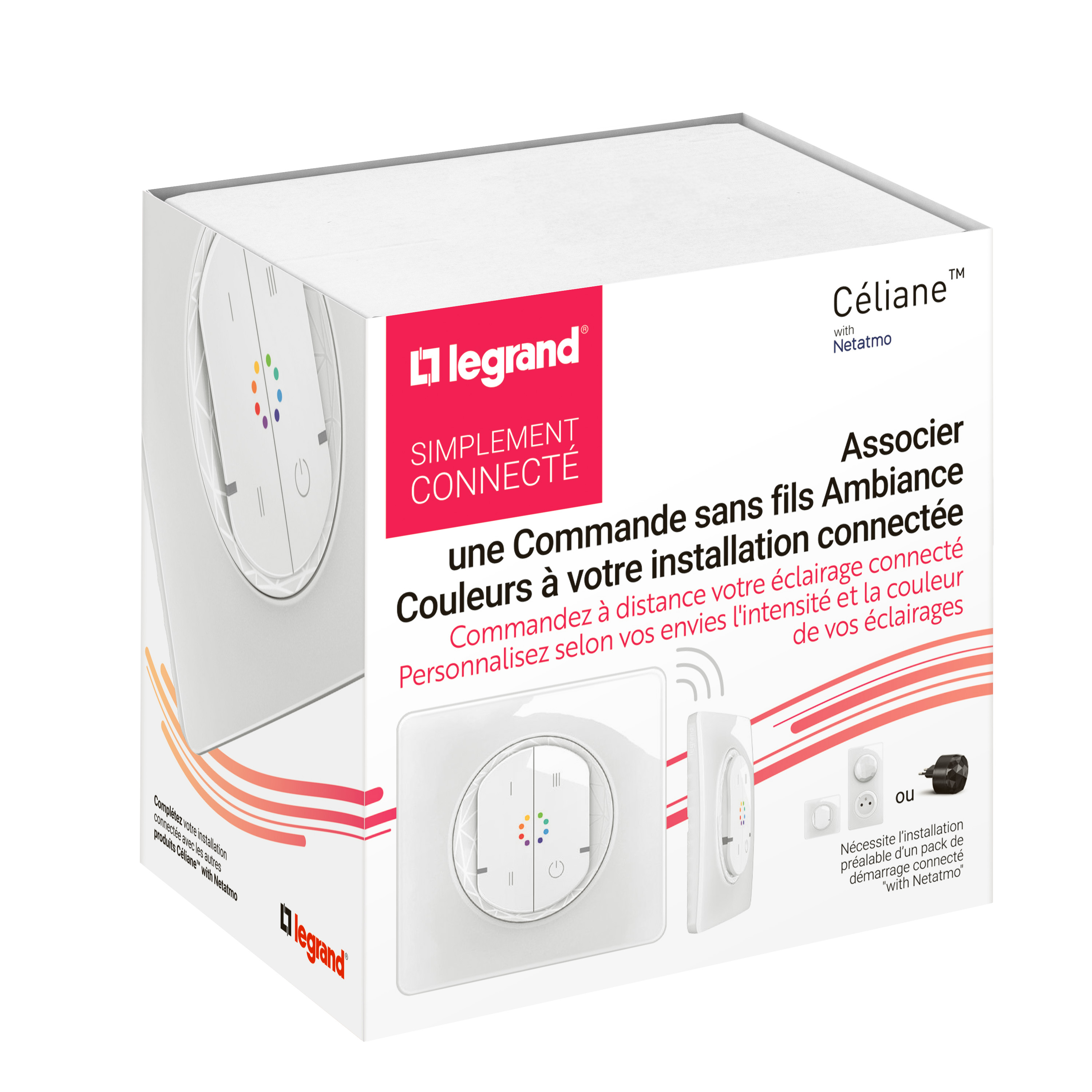 Commande sans fils multicouleurs Céliane with Netatmo, permet de commander des ampoules couleurs connectées, s'installe sans tirer de fils, sans dégâts sur les murs