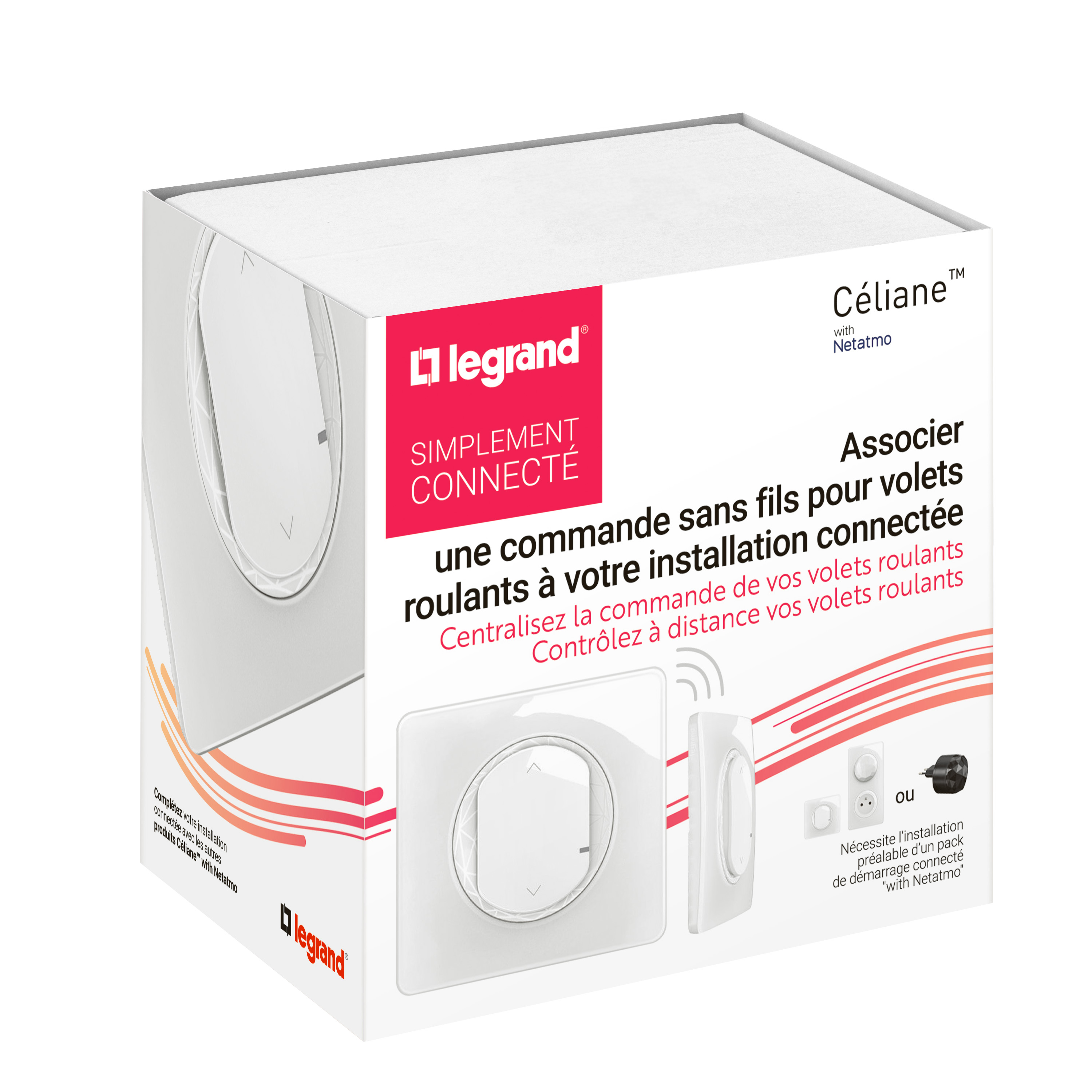 Commande sans fils pour interrupteur volets roulants et stores Céliane with Netatmo avec plaque - Blanc