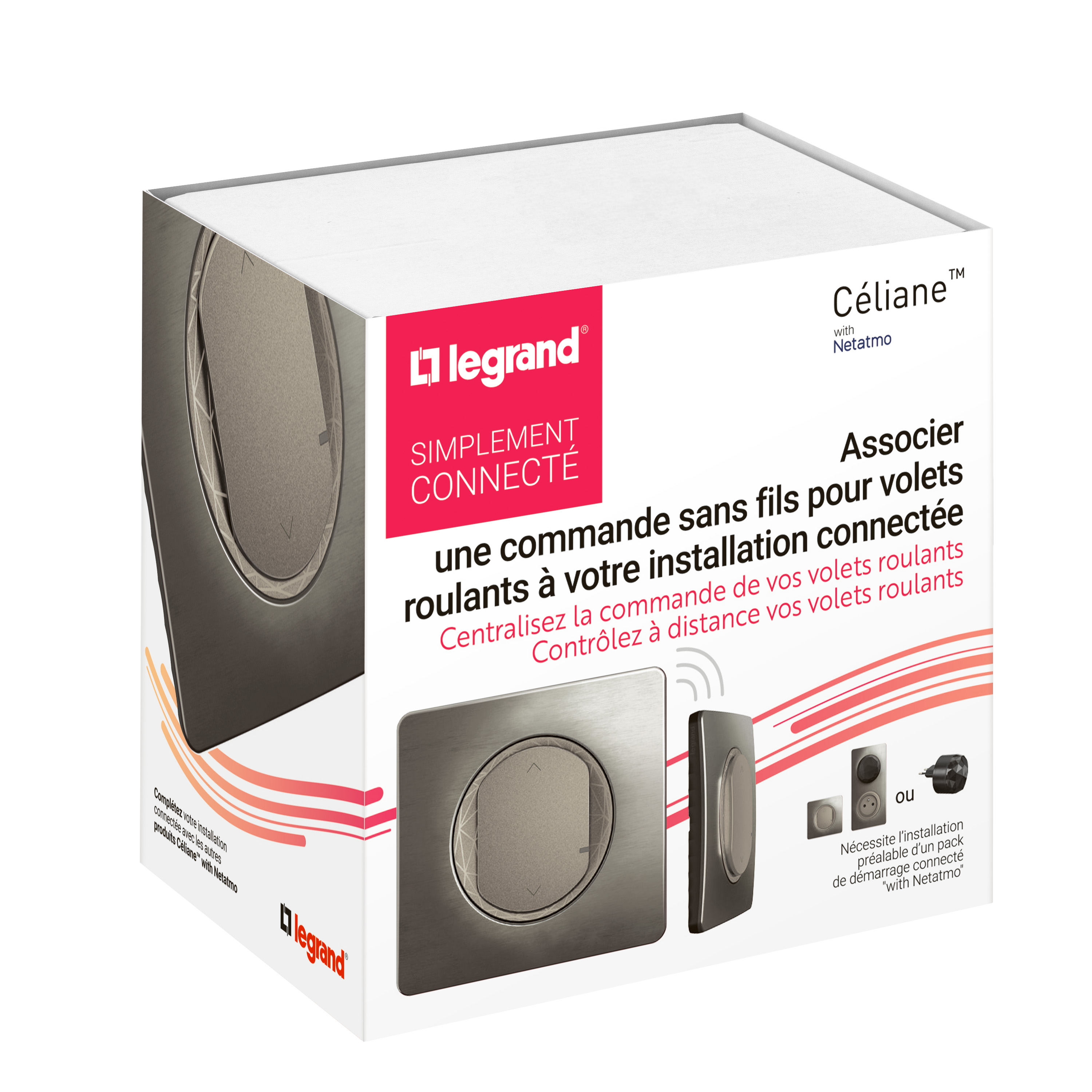 Commande sans fils pour interrupteur volets roulants et stores Céliane with Netatmo avec plaque - Titanium