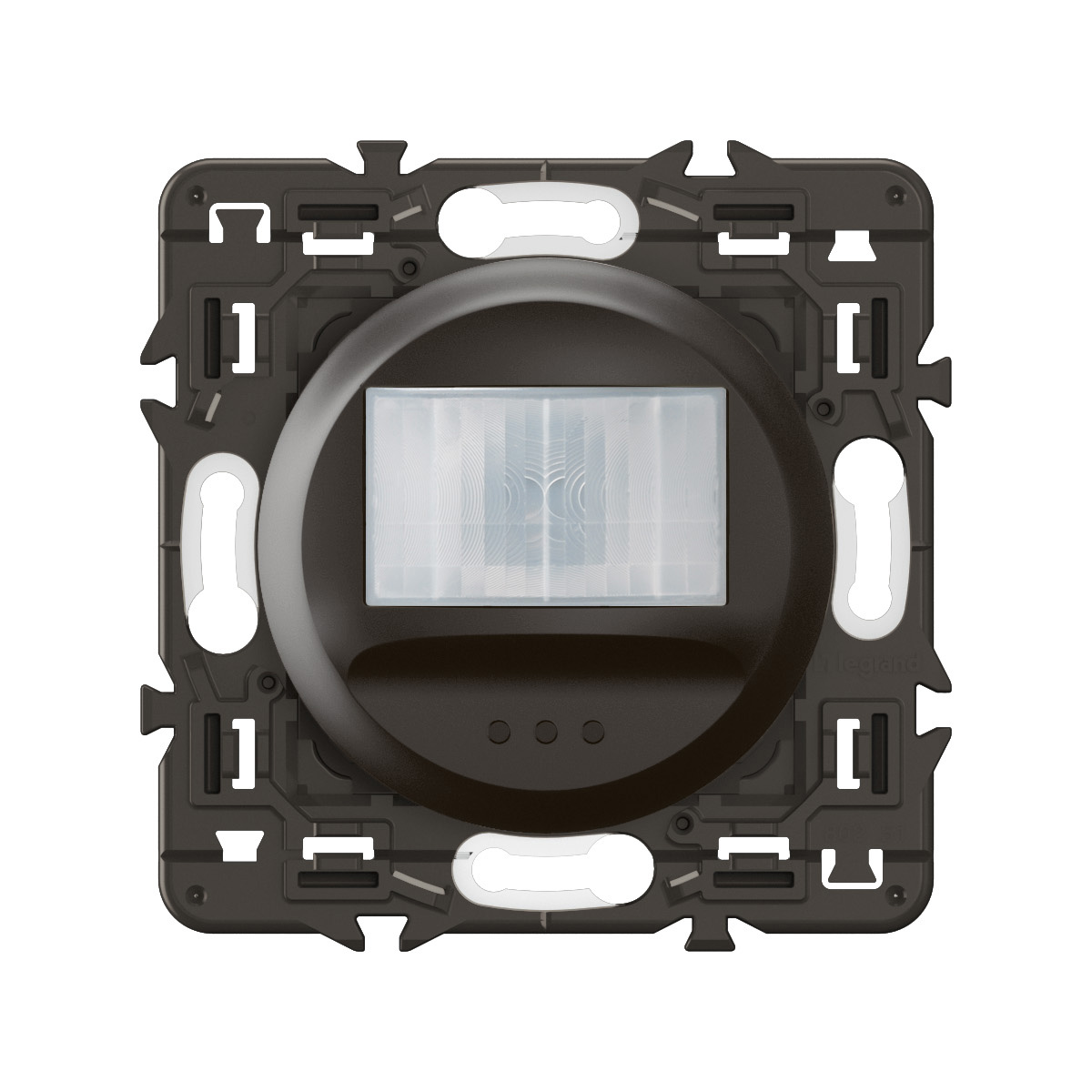 Détecteur mural sans Neutre 100W LED Céliane compatible toutes lampes - Noir avec support, à équiper d'une plaque