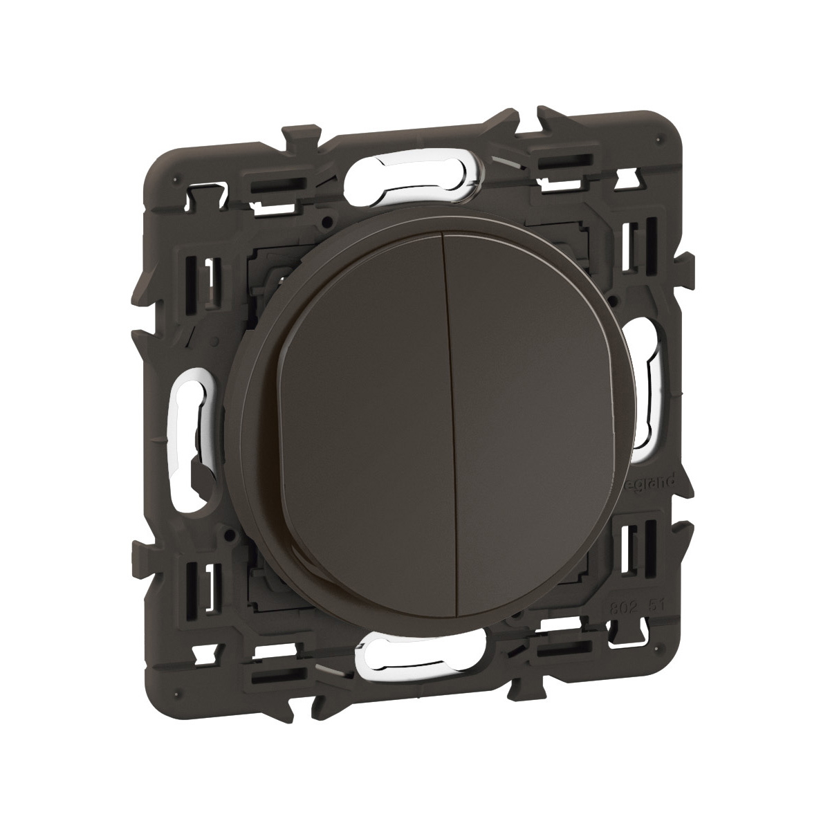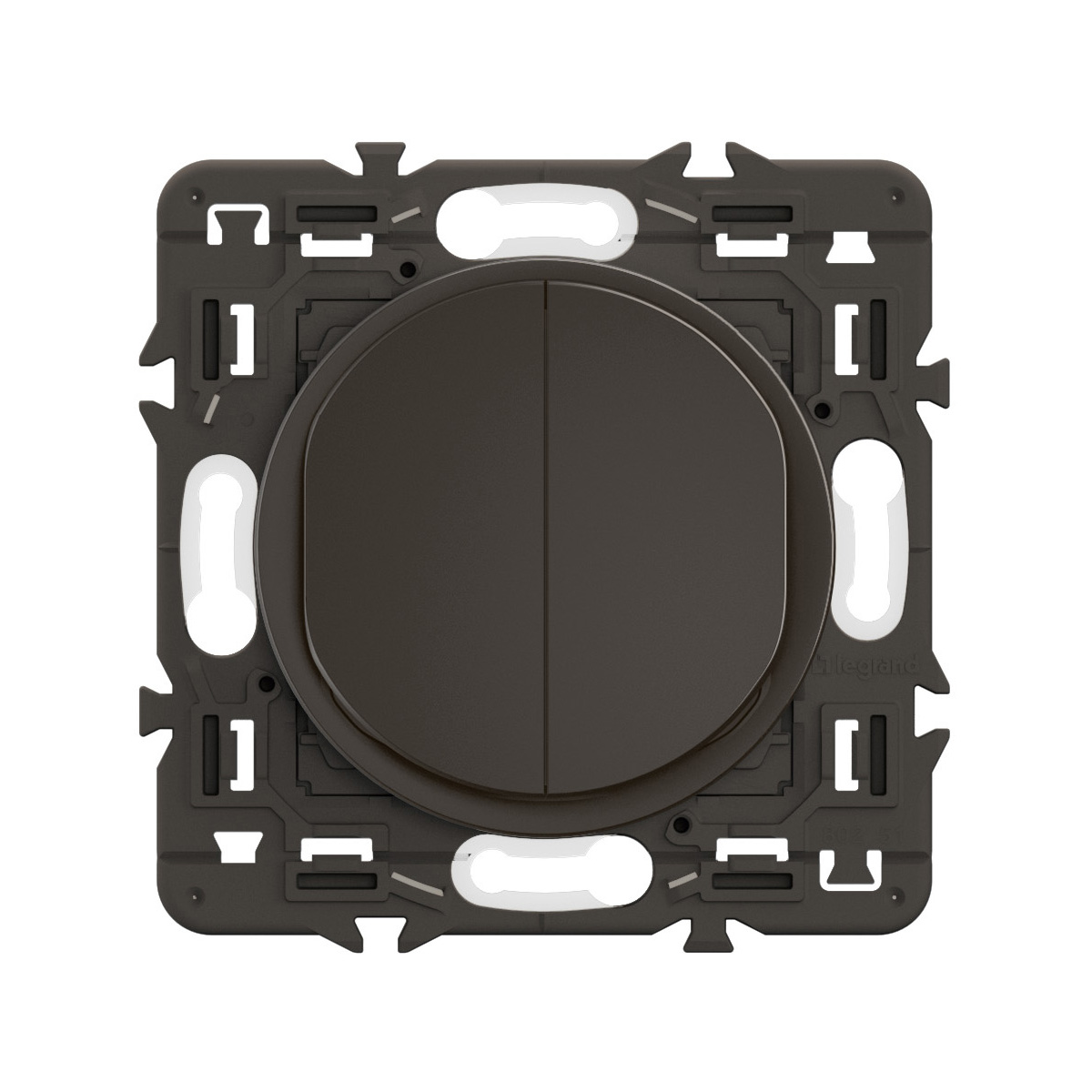 Double interrupteur ou va-et-vient 10A Céliane - Noir avec support, à équiper d'une plaque