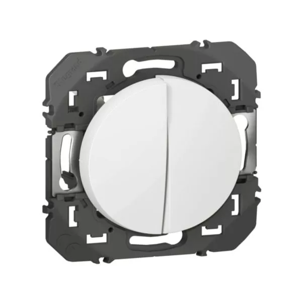 Double interrupteur ou va-et-vient dooxie 10AX 250V~ finition blanc - emballage blister