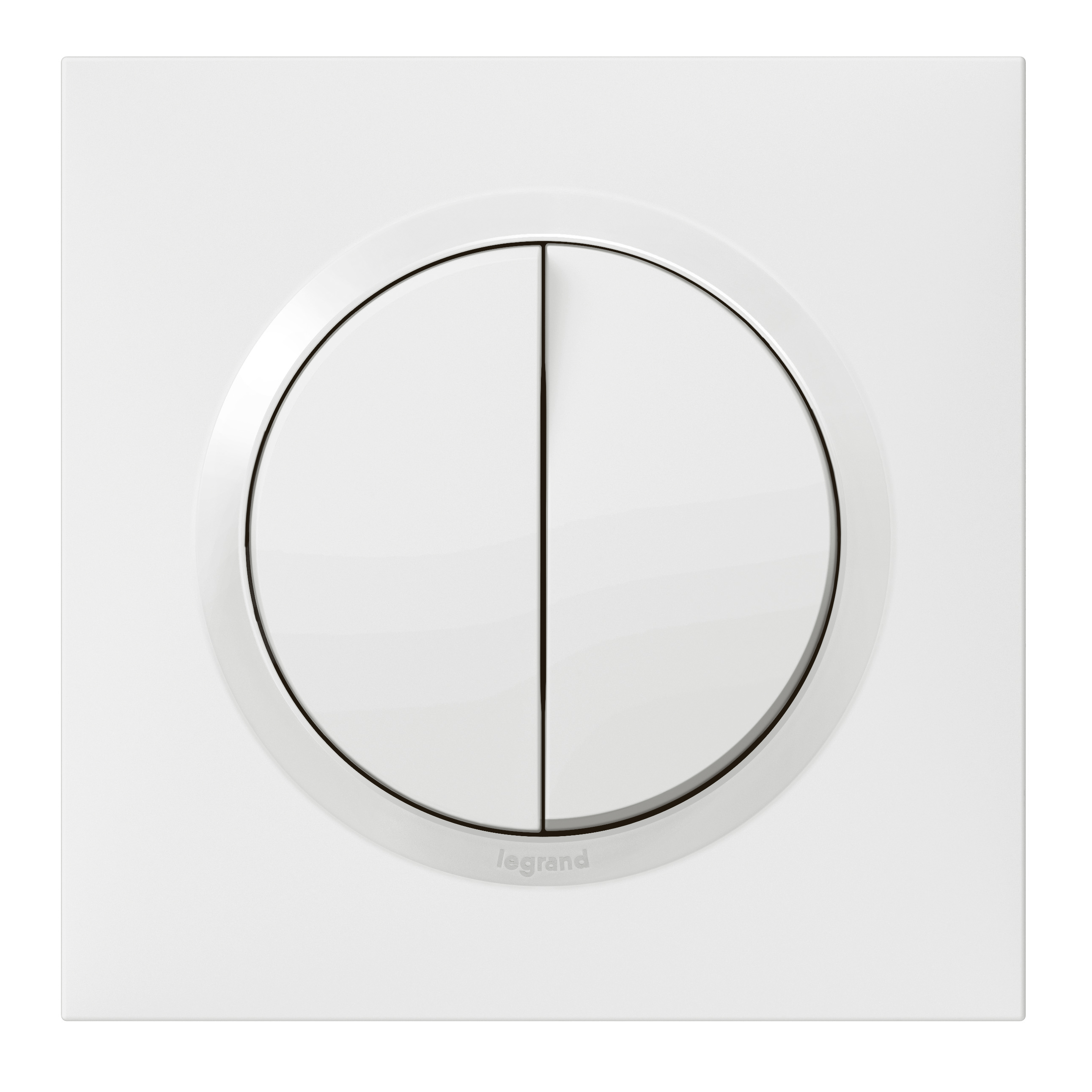 Double interrupteur ou va-et-vient dooxie 10AX 250V~ livré avec plaque carrée blanche