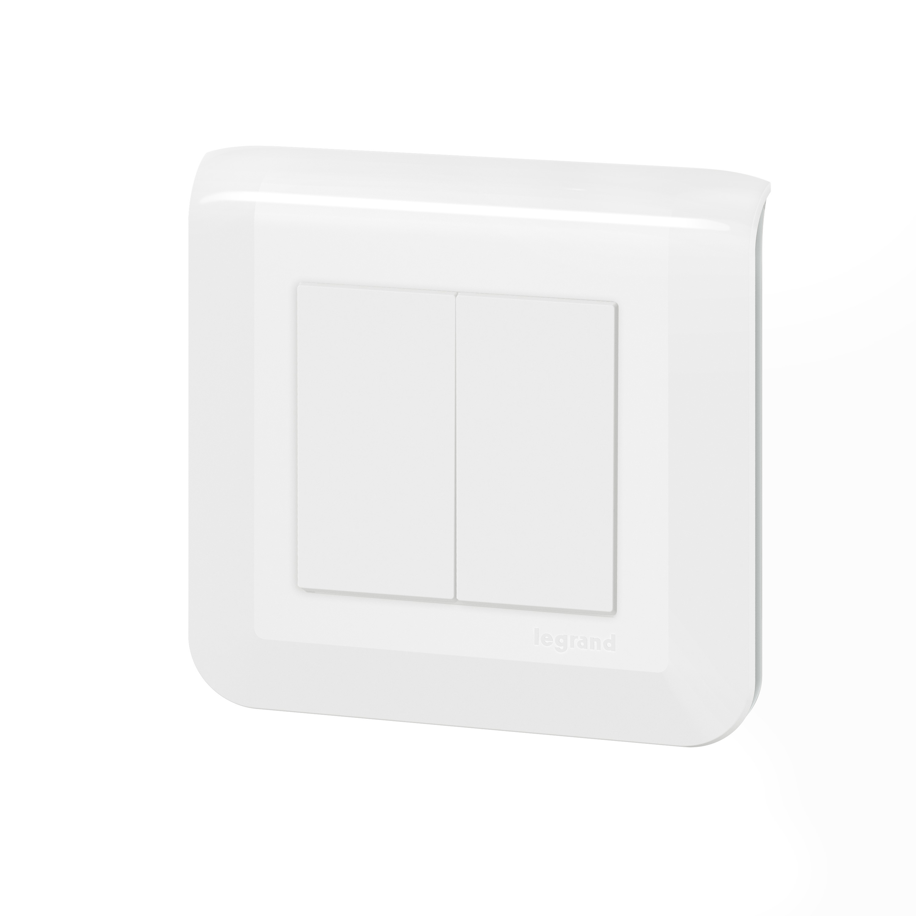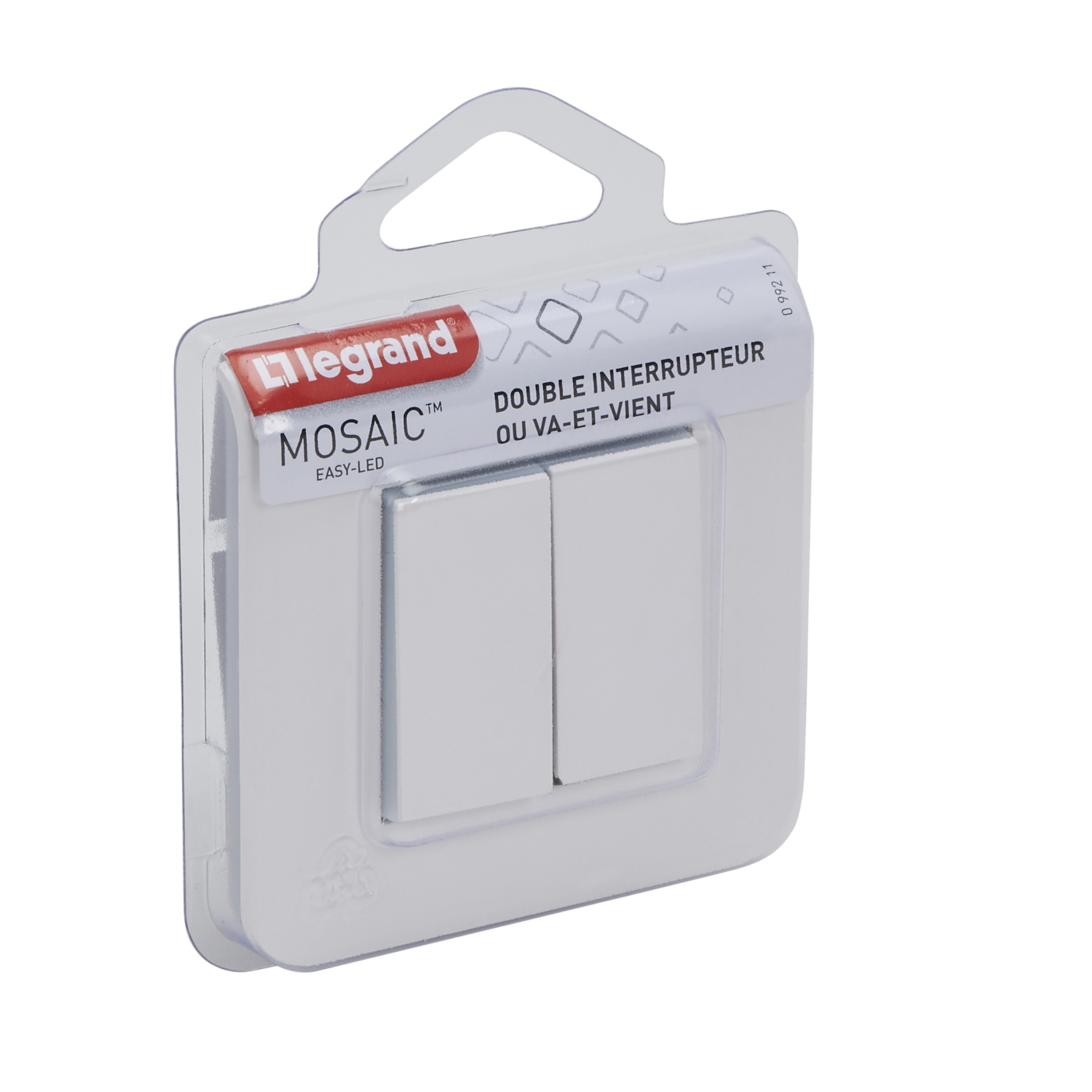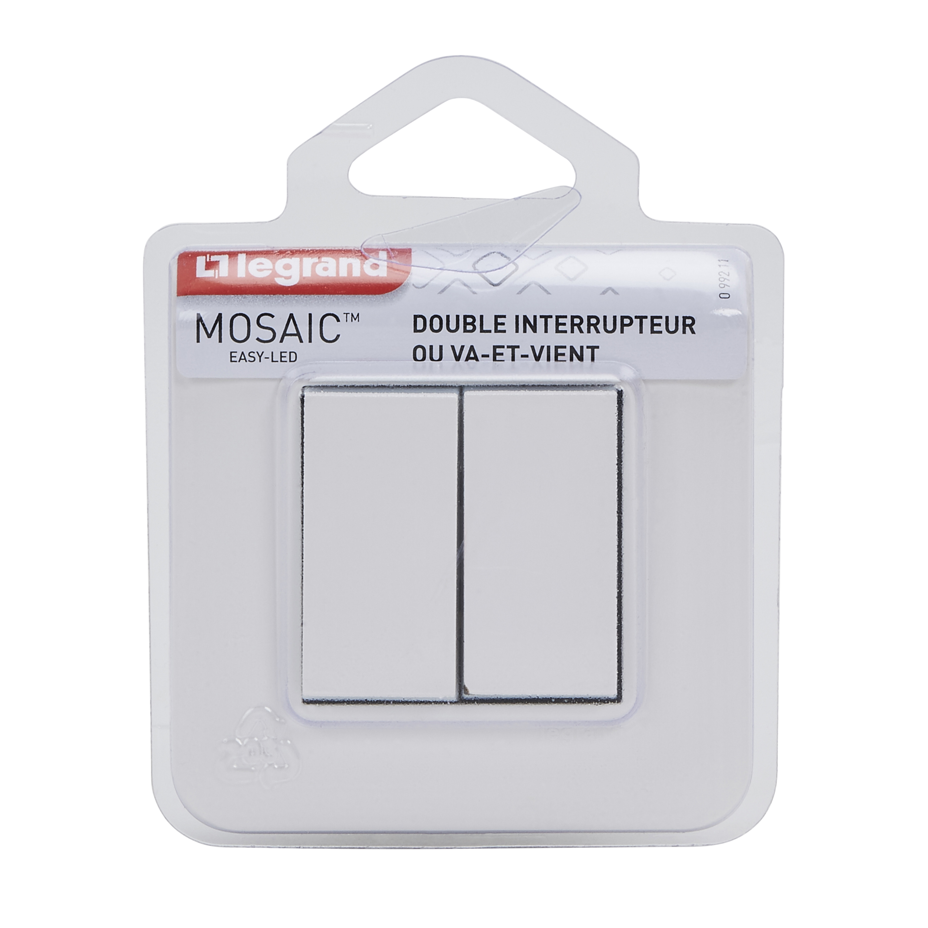 Double interrupteur ou va-et-vient Mosaic 10A blanc complet avec plaque et fixation à griffes