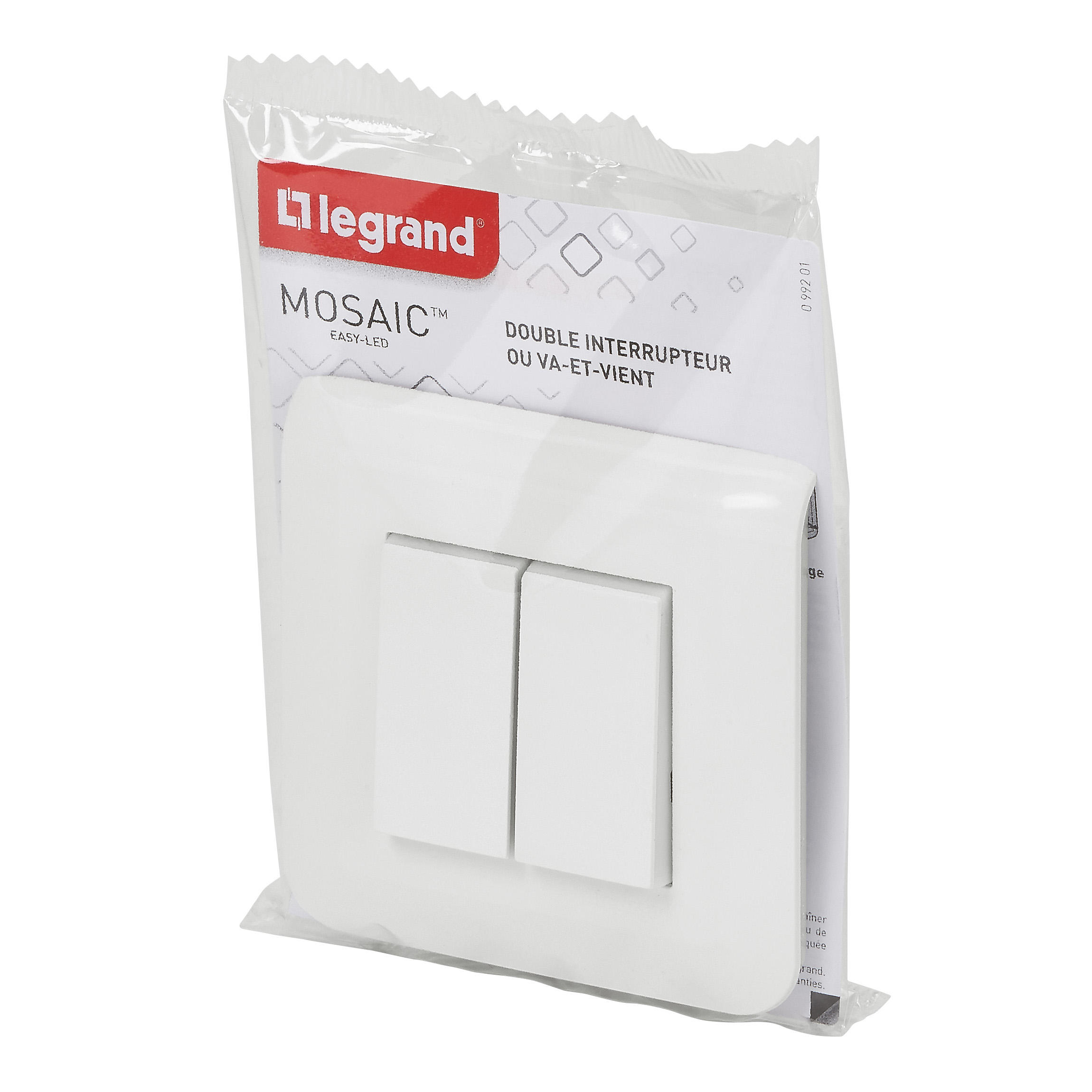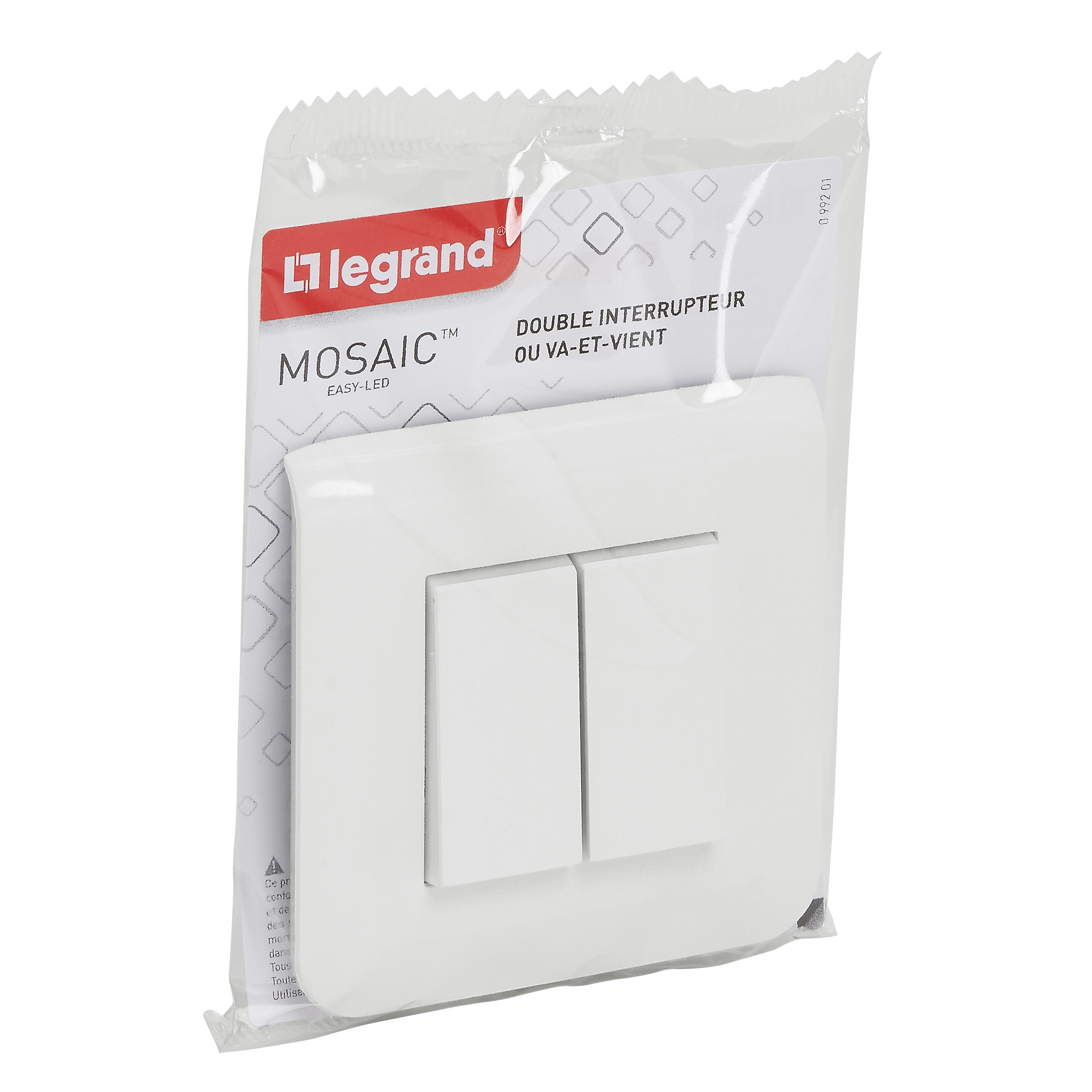 Double interrupteur ou va-et-vient Mosaic 10A blanc complet avec plaque et fixation à vis