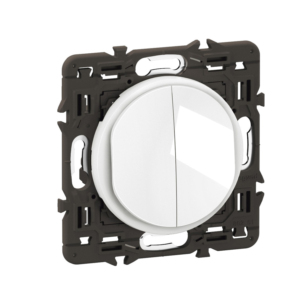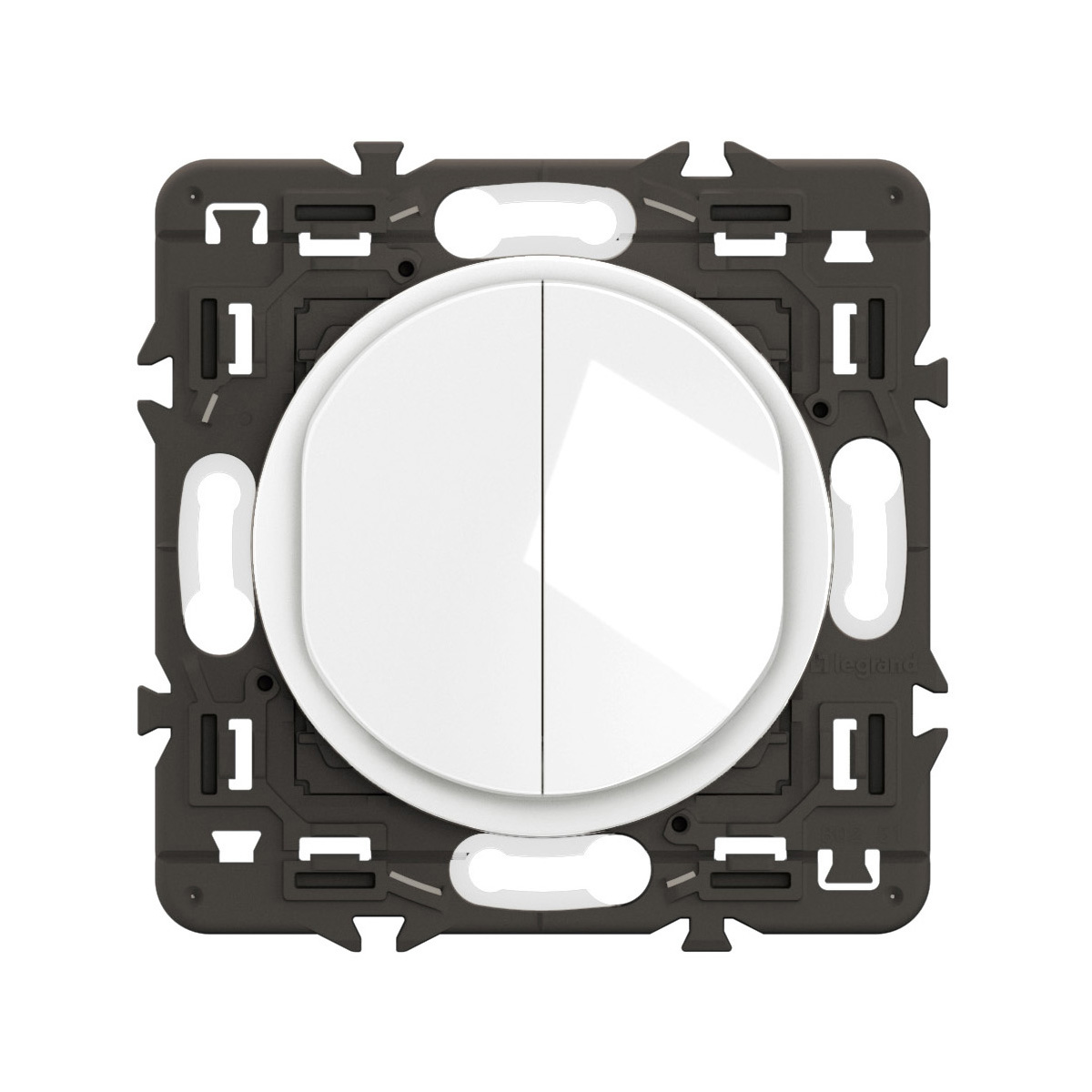 Double poussoir 6A Céliane - Blanc avec support, à équiper d'une plaque