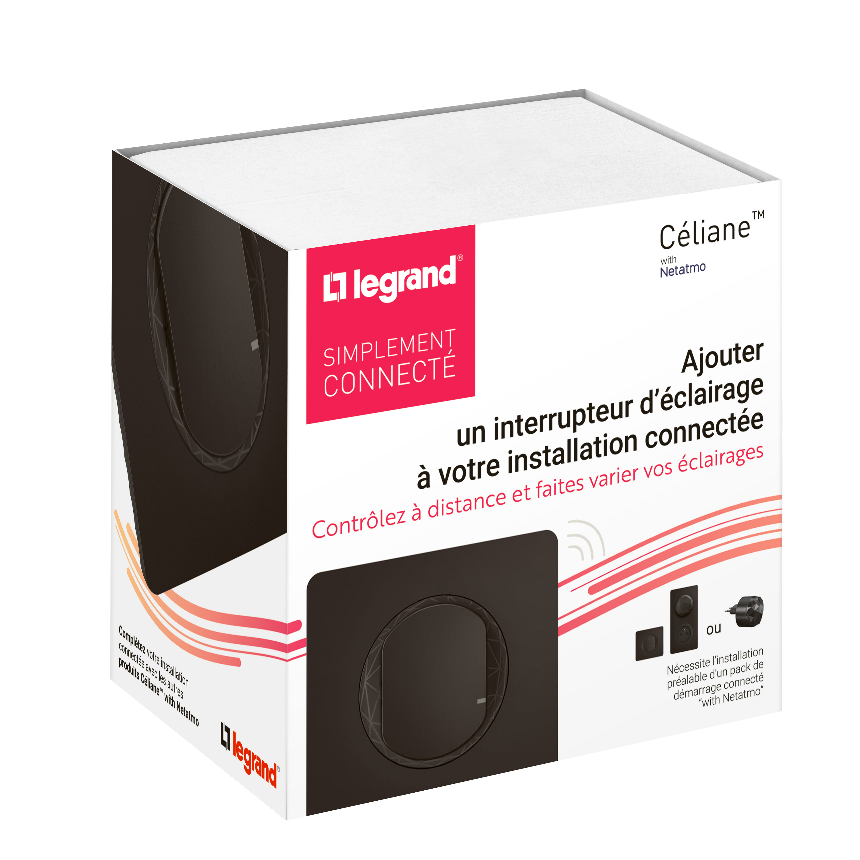 Interrupteur connecté sans Neutre avec option variation Céliane with Netatmo avec plaque - Noir