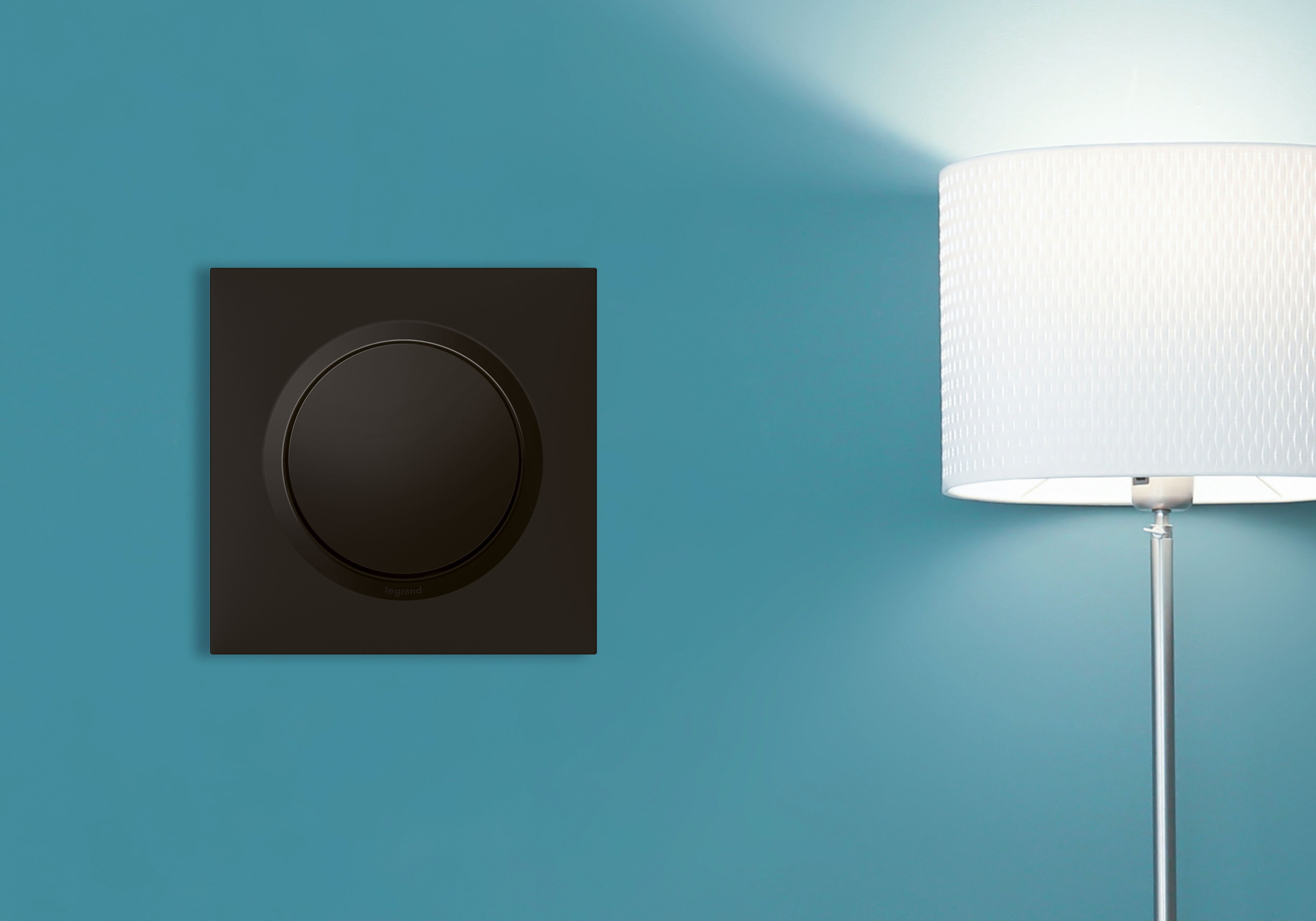 dooxie, une commande d'éclairage, équipée d'un support et à compléter d'une plaque, avec un design simple et moderne dans l'air du temps