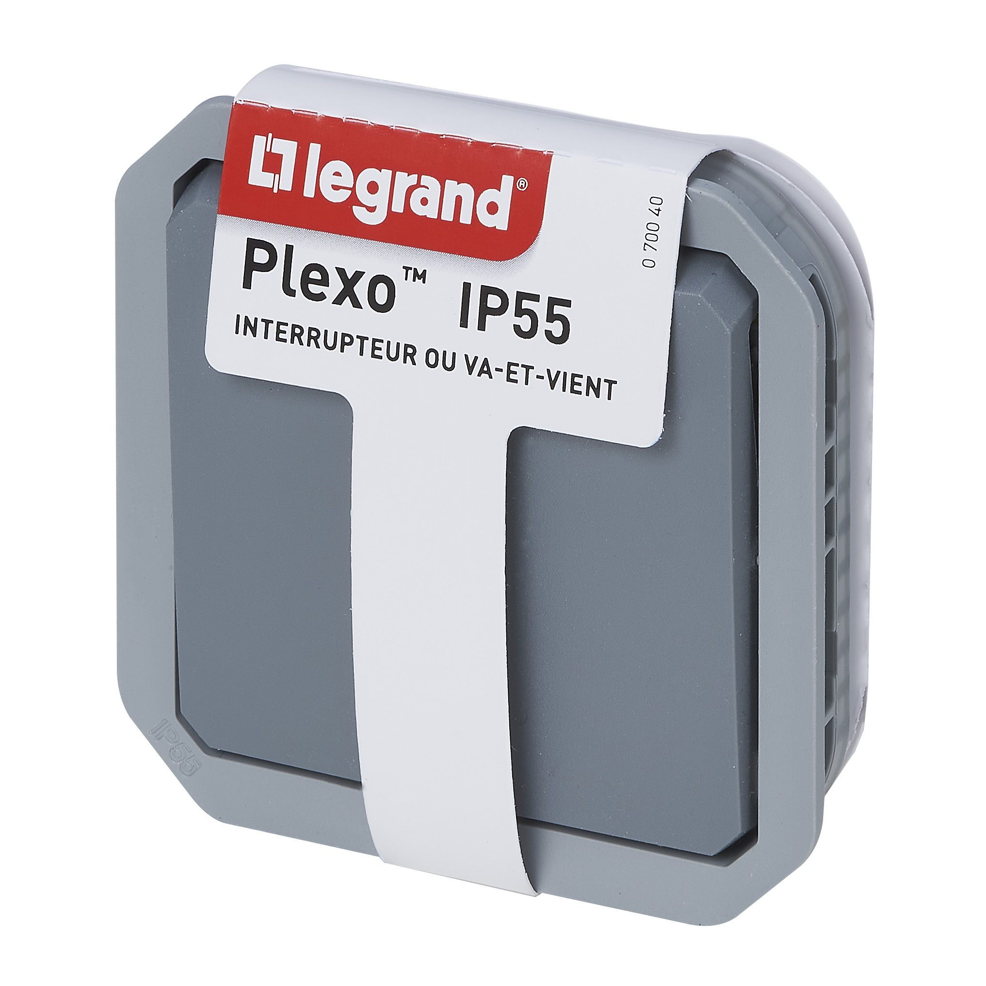 Interrupteur ou va-et-vient étanche Plexo 10A à équiper d'un boitier ou d'une plaque support finition gris