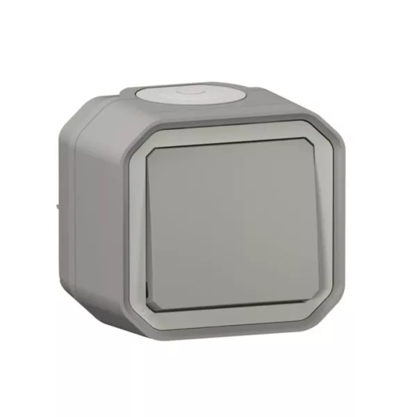 Interrupteur ou va-et-vient étanche Plexo 10A livré complet pour montage en apparent gris