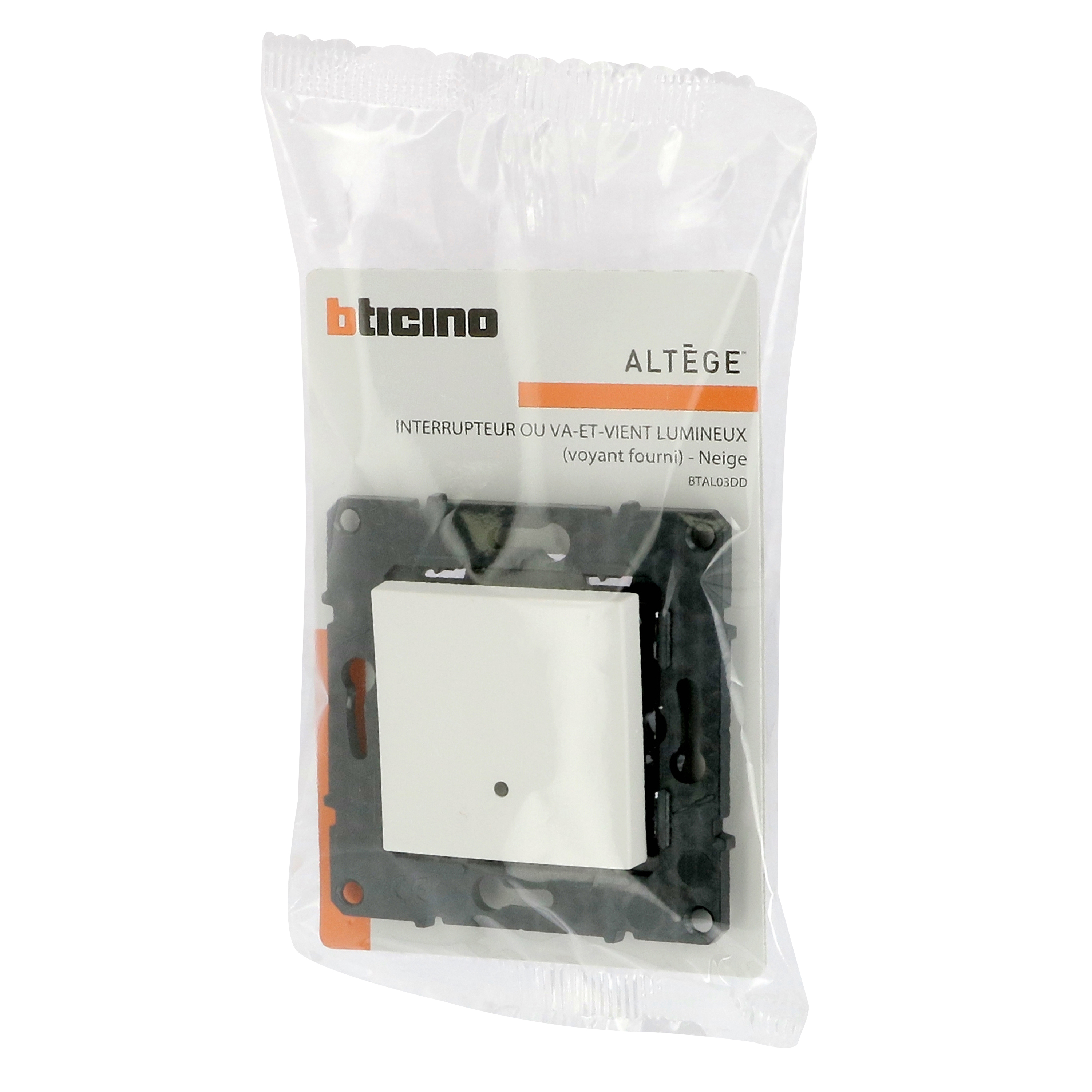 Interrupteur ou va-et-vient lumineux Altège 10A avec connexion à bornes automatiques - finition Neige