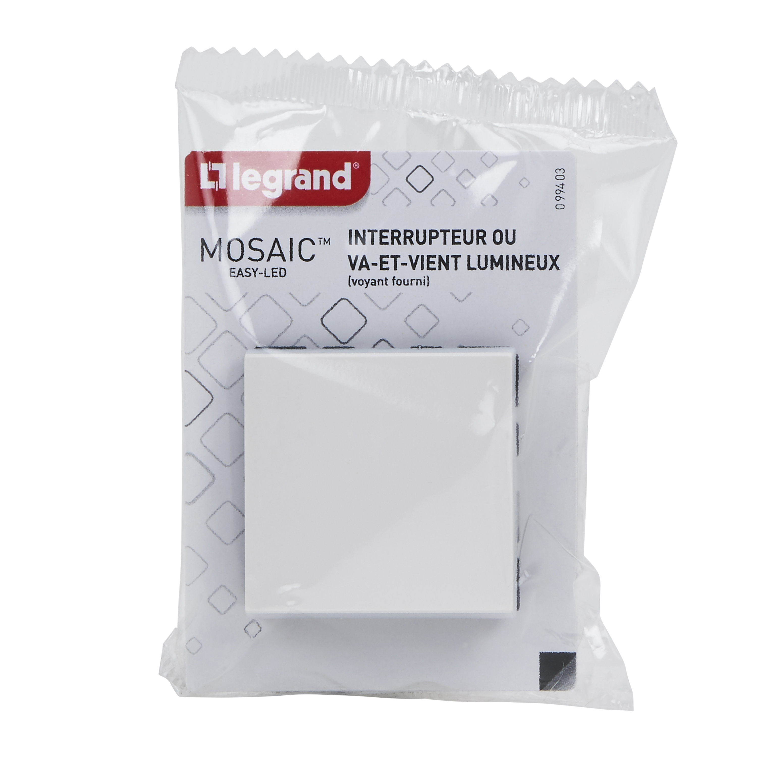 Interrupteur ou va-et-vient lumineux avec voyant Mosaic Easy-Led 10A 2 modules - blanc