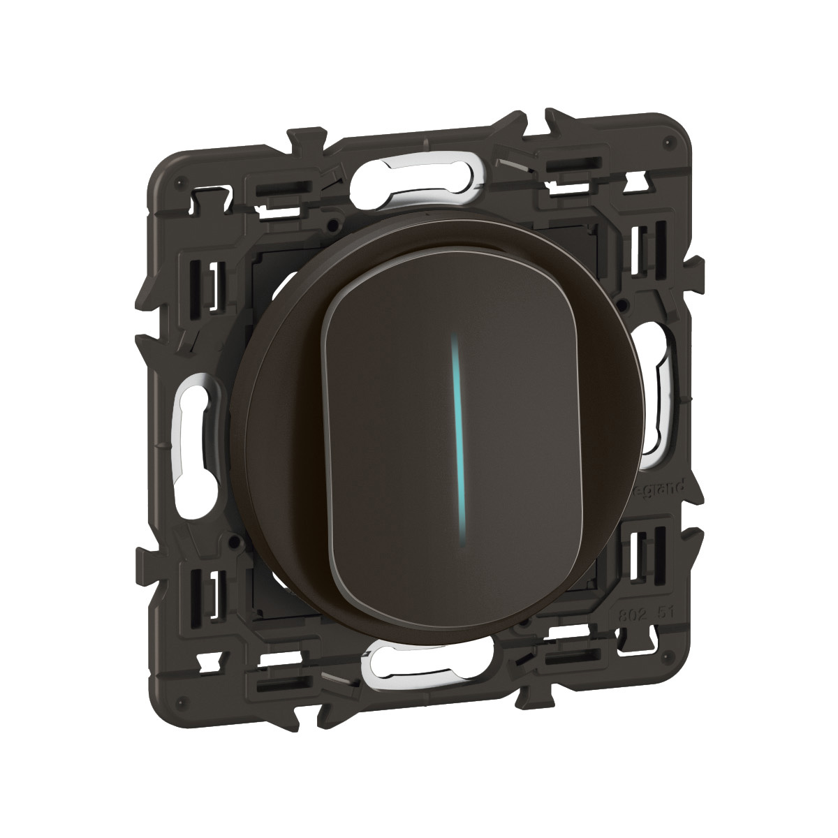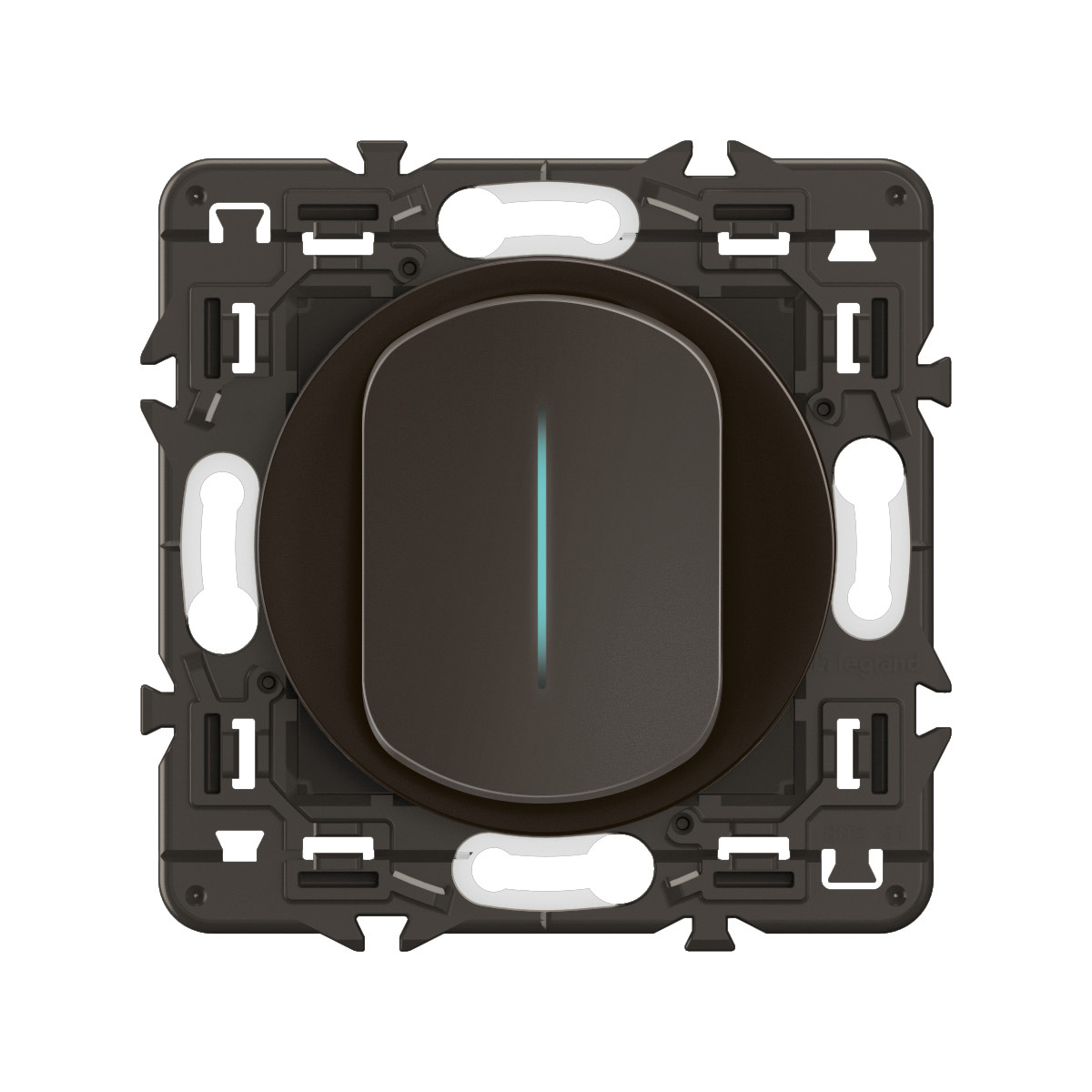 Interrupteur ou va-et-vient témoin 10A (voyant fourni) Céliane - Noir avec support, à équiper d'une plaque