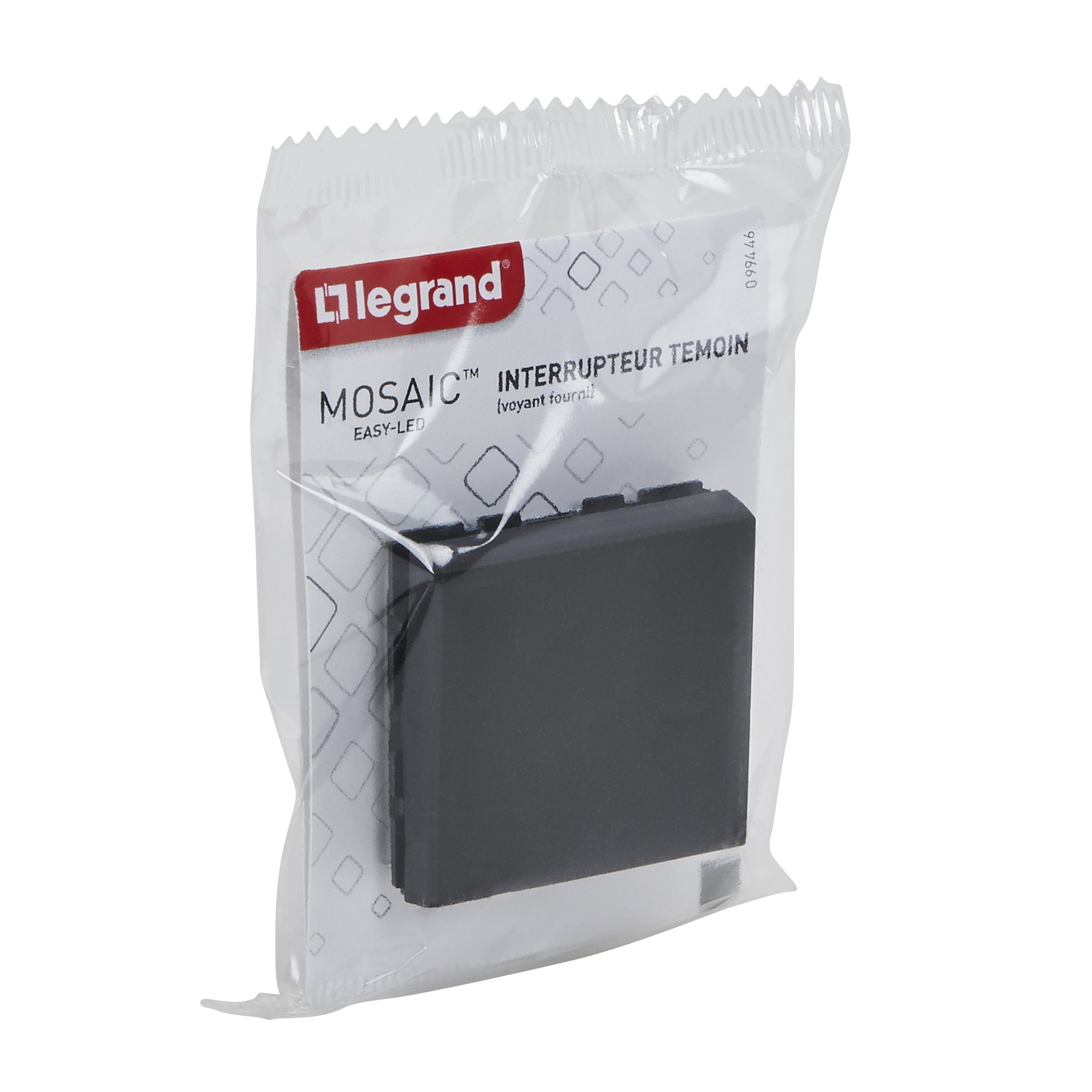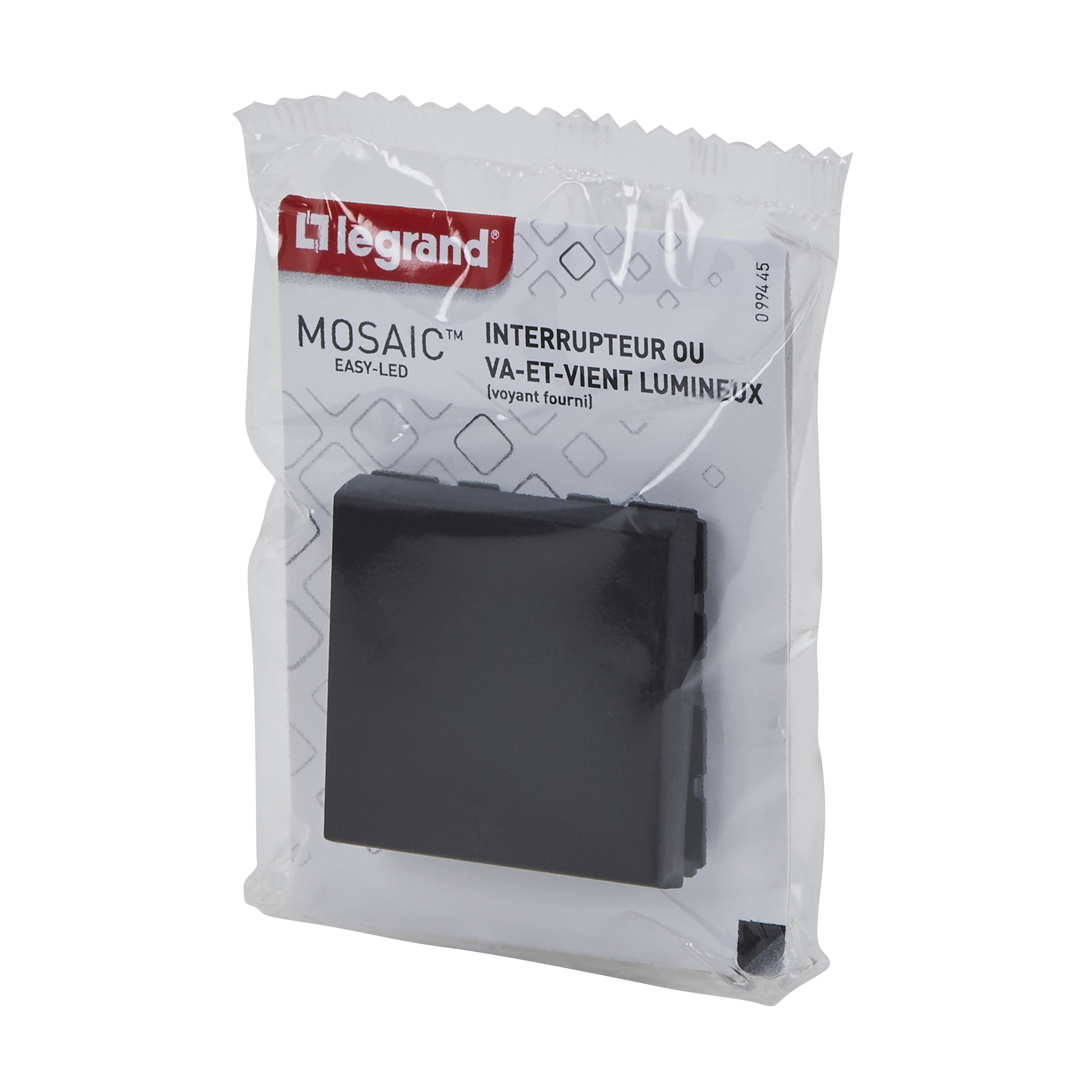 Interrupteur ou va-et-vient témoin avec voyant Mosaic Easy-Led 10A 2 modules - noir mat