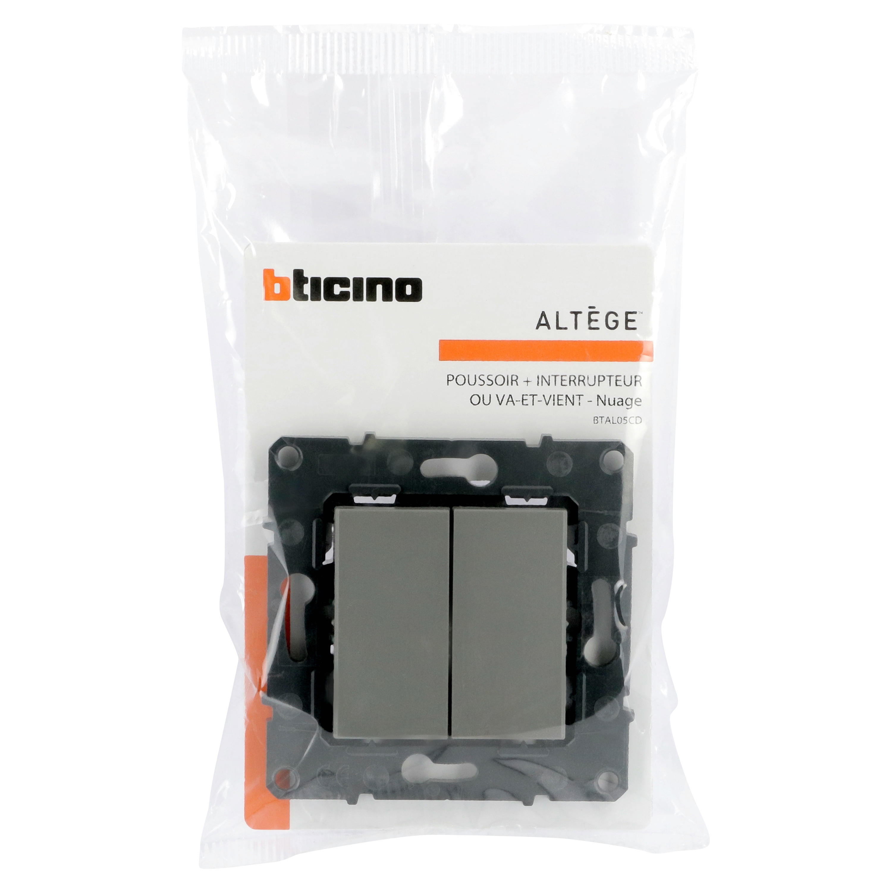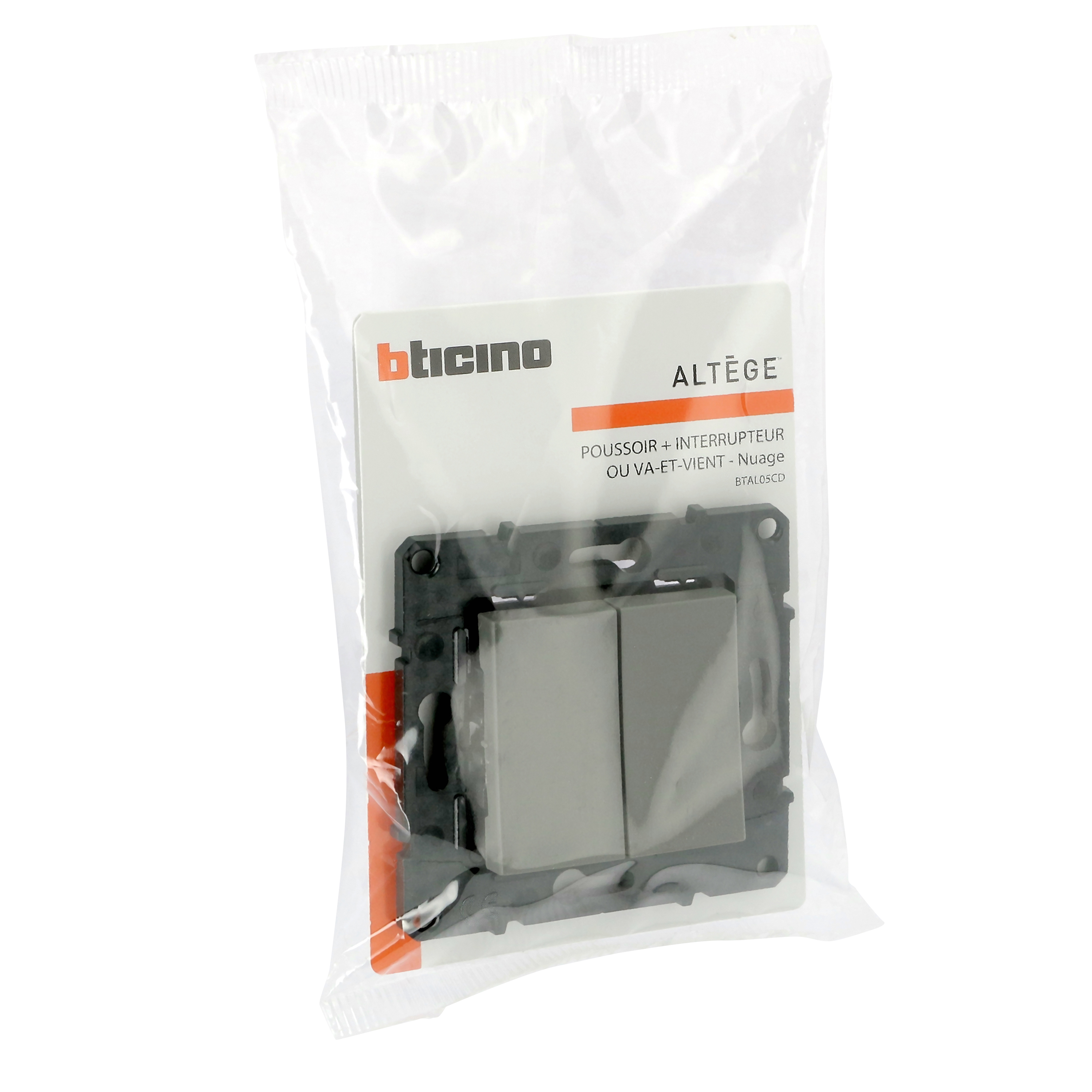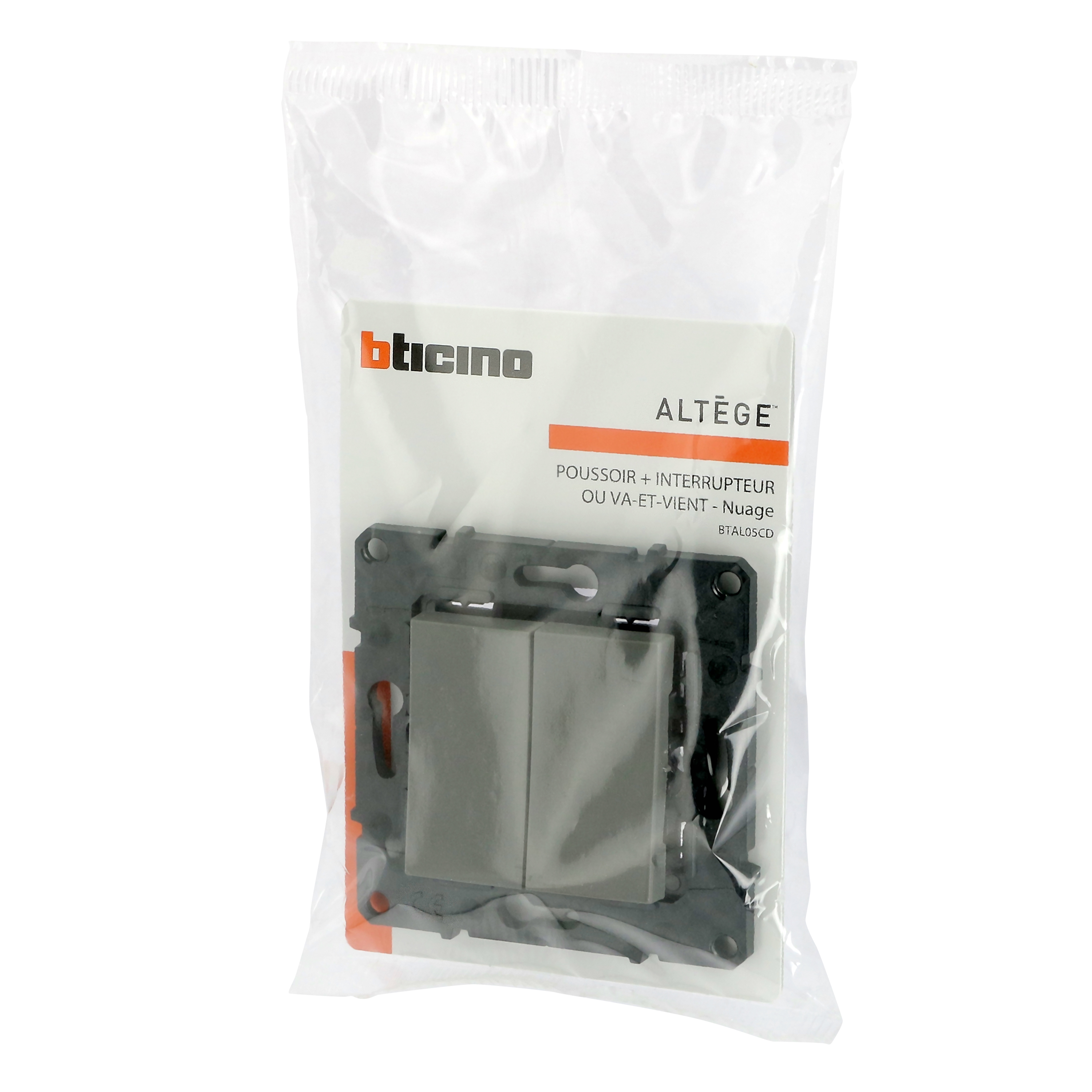 Poussoir 6A + Interrupteur ou va-et-vient Altège 10A avec connexion à bornes automatiques - finition Nuage