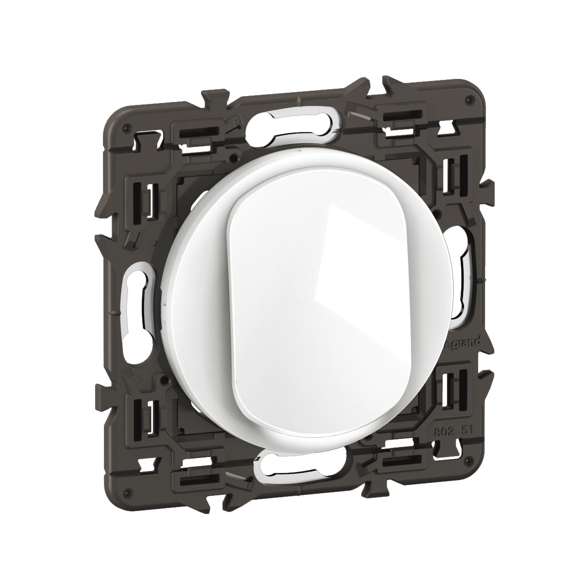 Commande d'éclairage Céliane vendue avec support, prête à installer, à associer à des plaques Céliane avec une sélection de couleurs et de matières qui répond à tous les styles