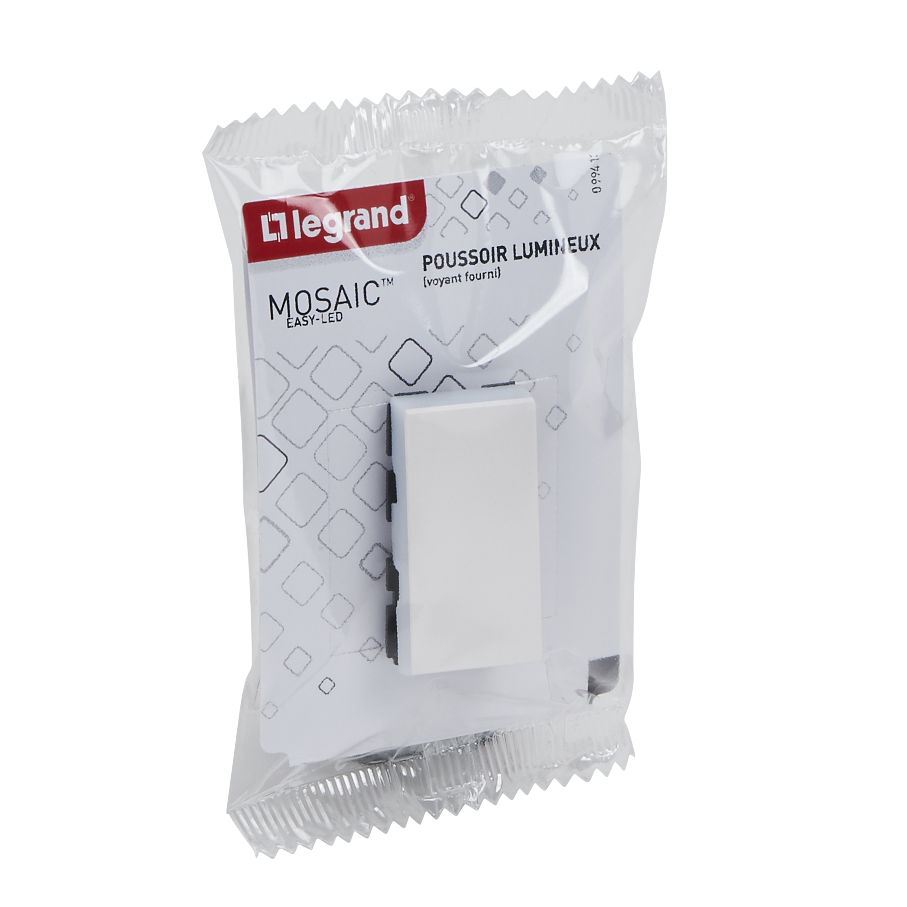 Poussoir lumineux avec voyant Mosaic Easy-Led 6A 1 module - blanc