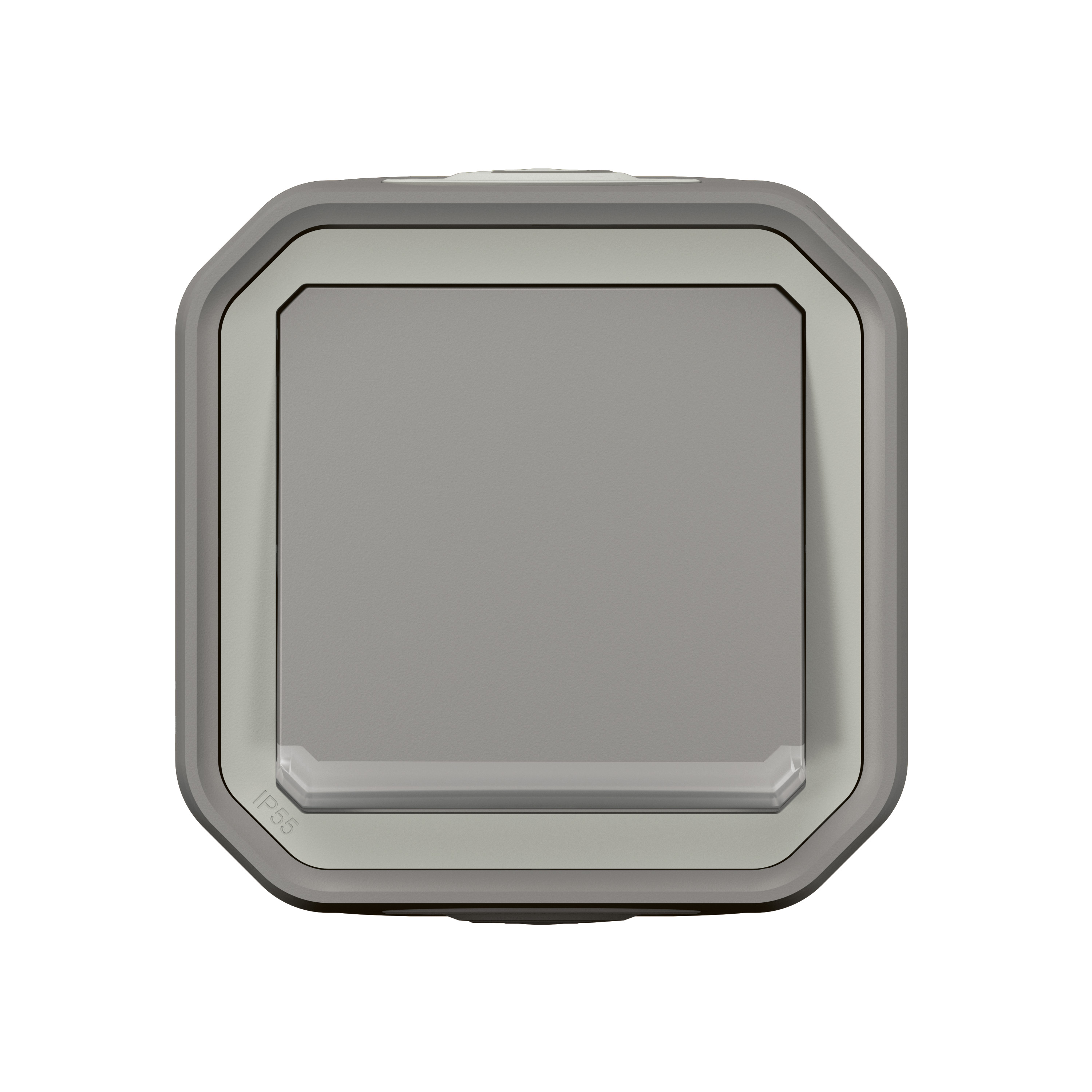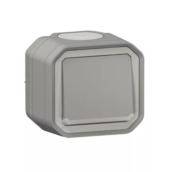 Poussoir lumineux étanche Plexo 10A livré complet avec voyant pour montage en apparent gris