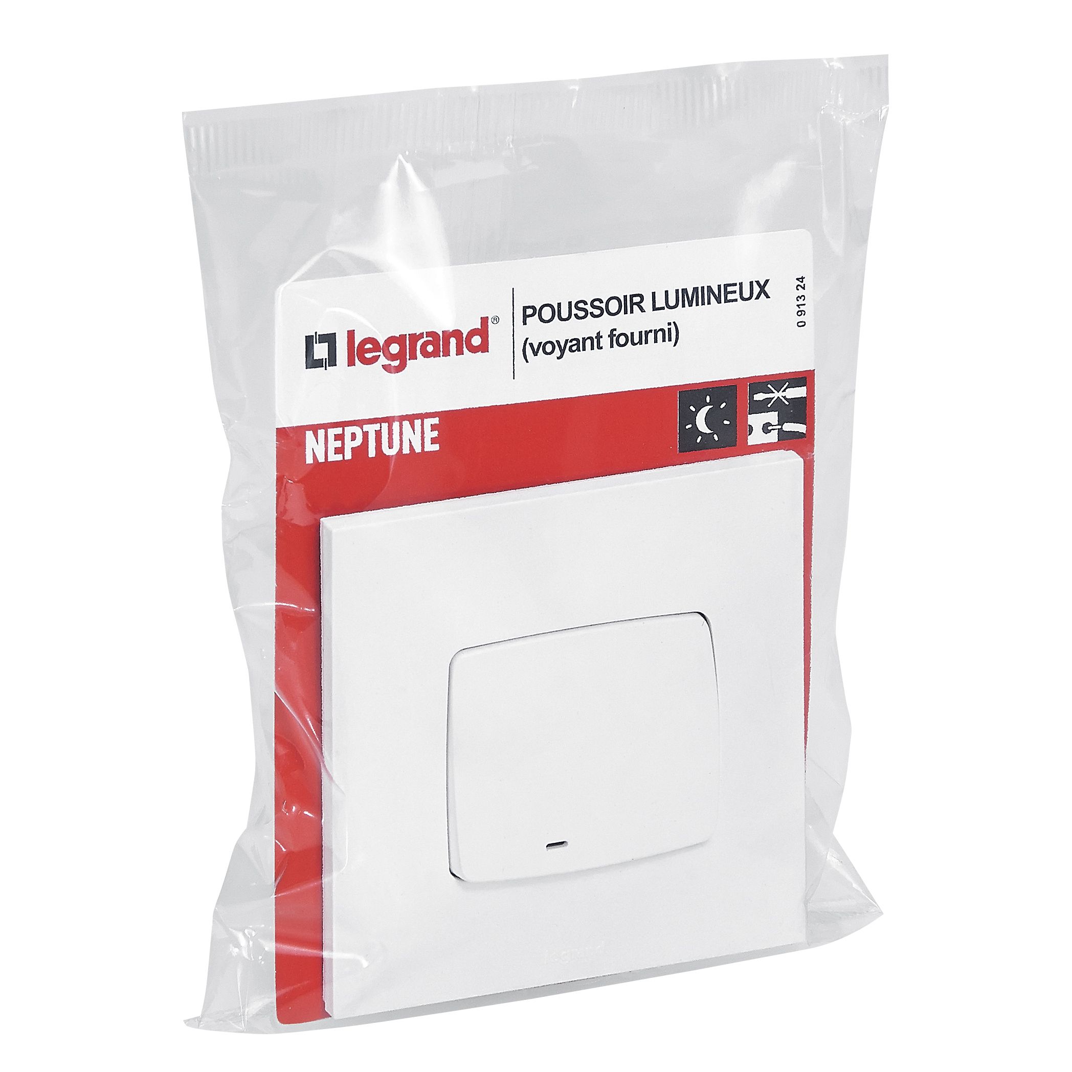 Poussoir lumineux (voyant fourni) Neptune - 6A - Blanc