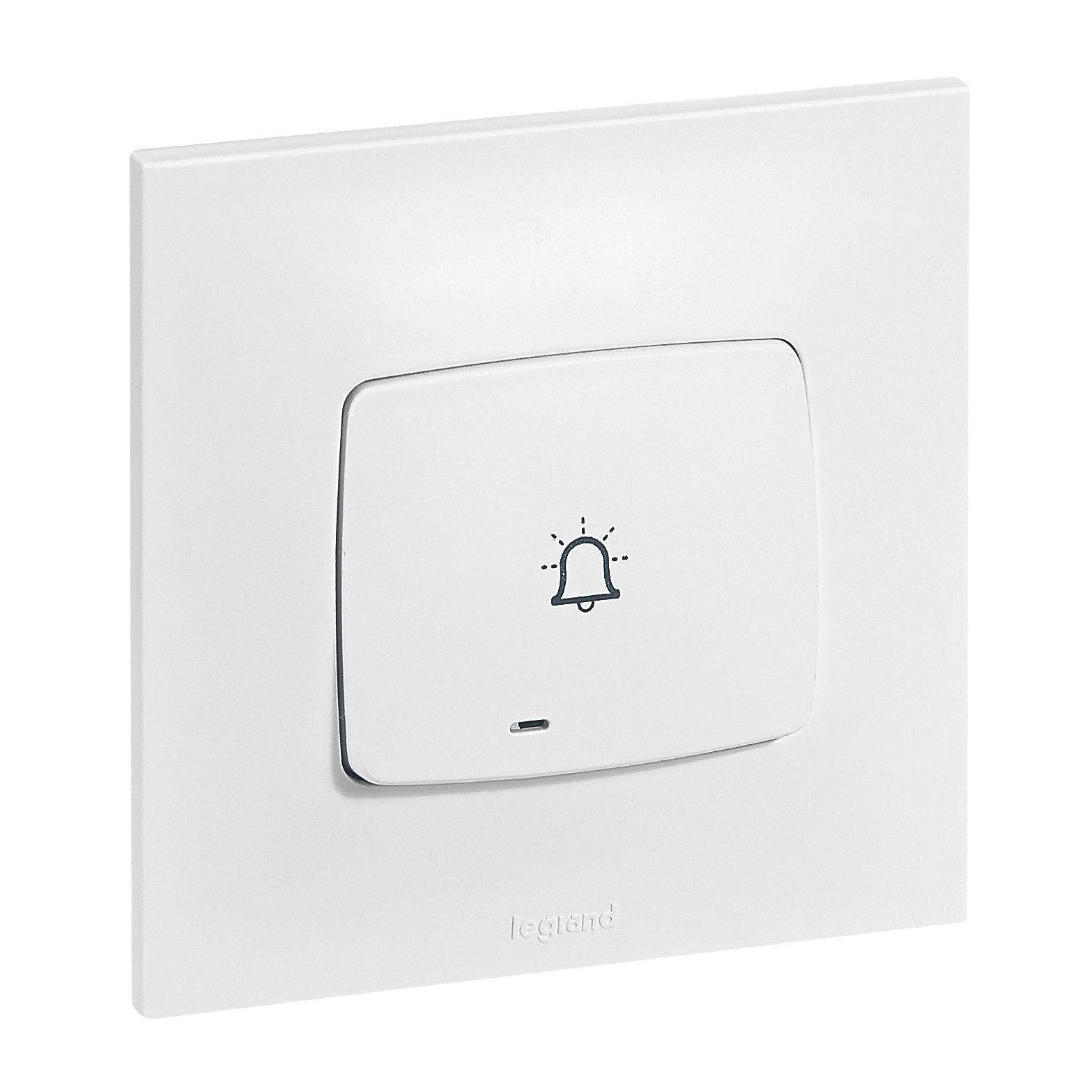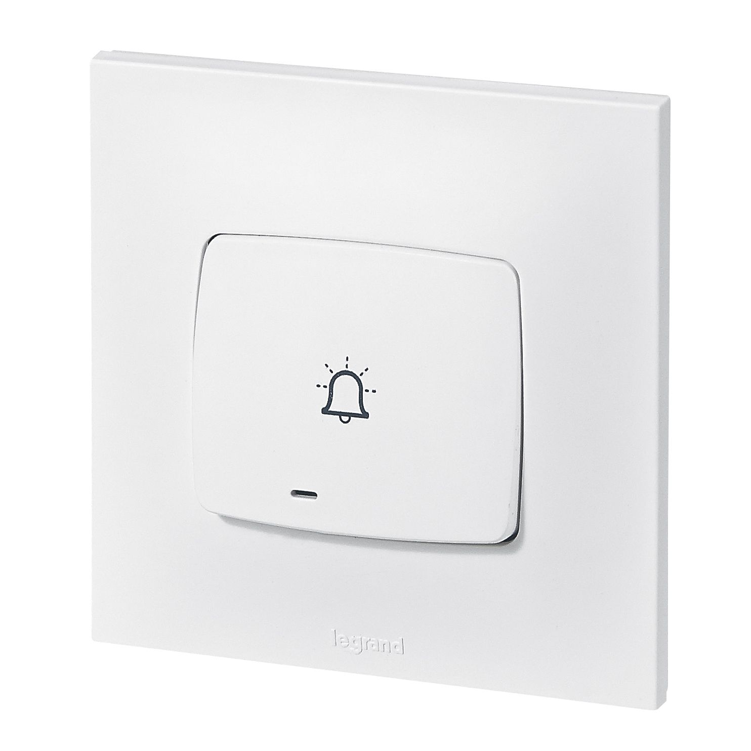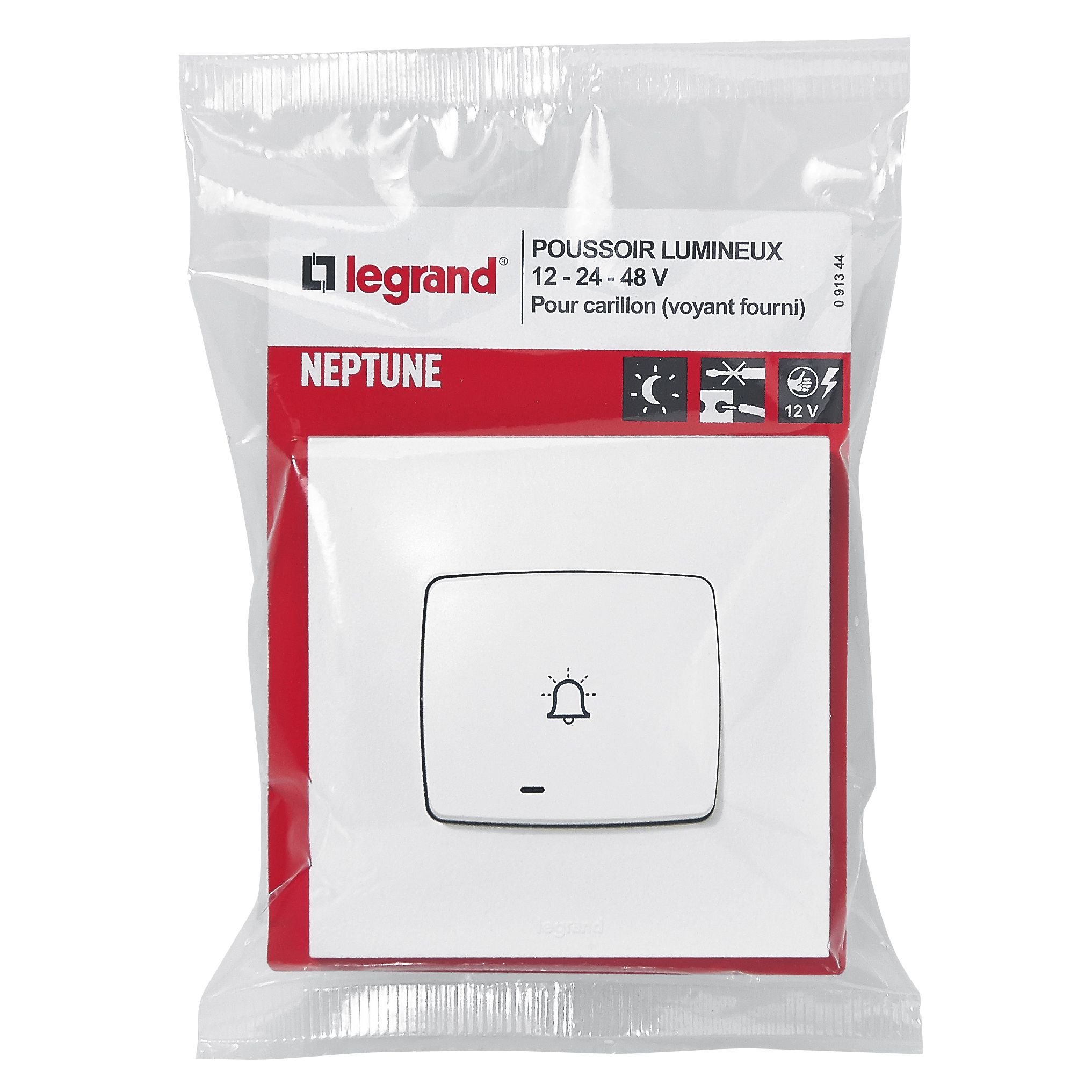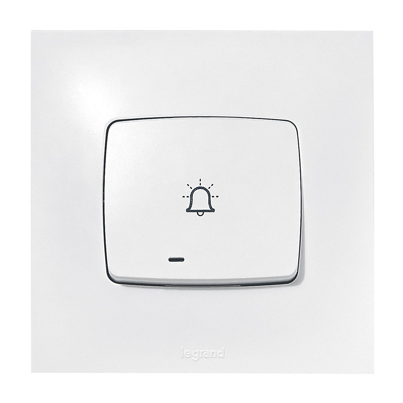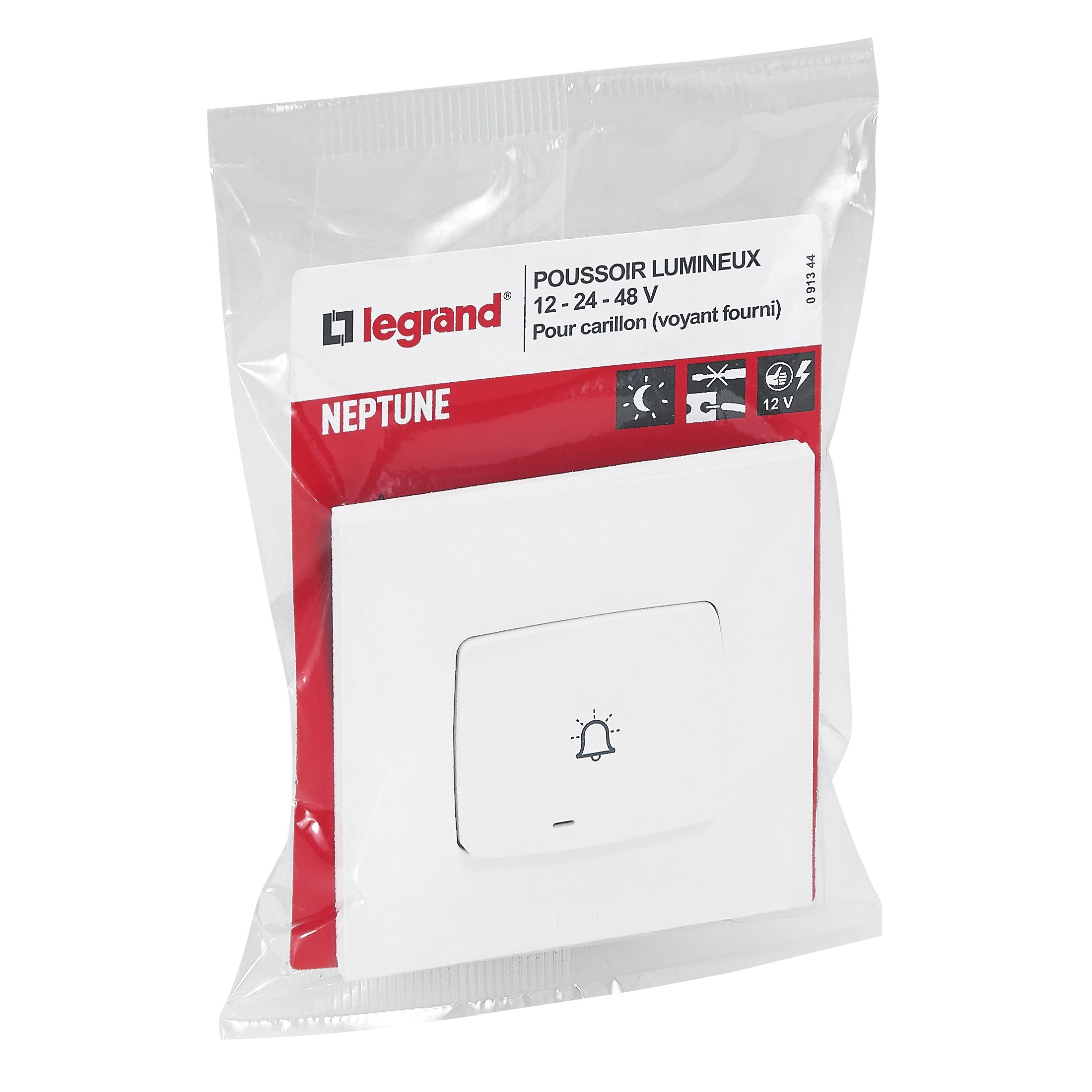 Poussoir lumineux (voyant fourni) Neptune avec symbole sonnette 6A - Blanc