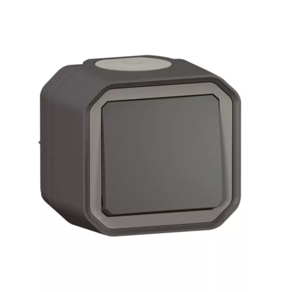 Poussoir simple étanche Plexo 10A livré complet pour montage en apparent anthracite