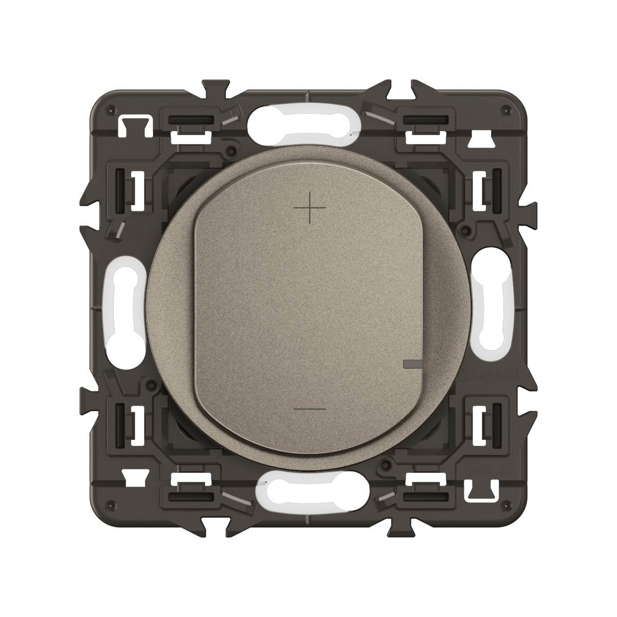 Variateur 2 fils sans Neutre Céliane toutes lampes dimmables - Titanium avec support, à équiper d'une plaque