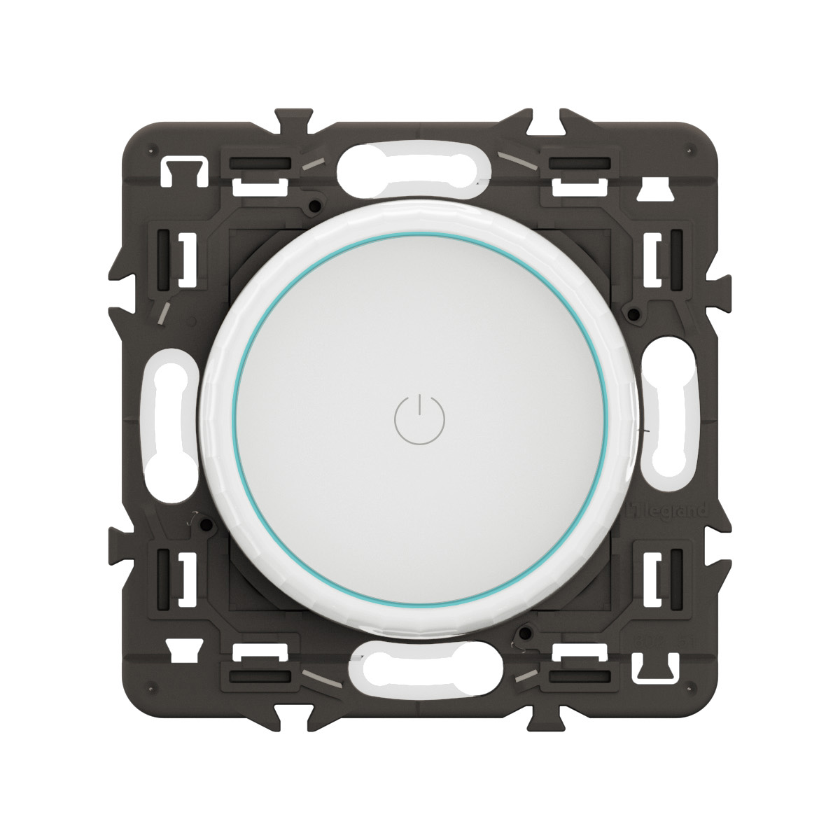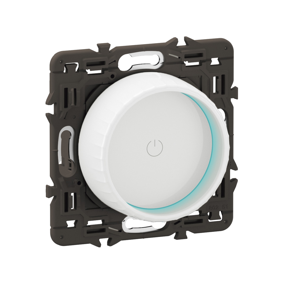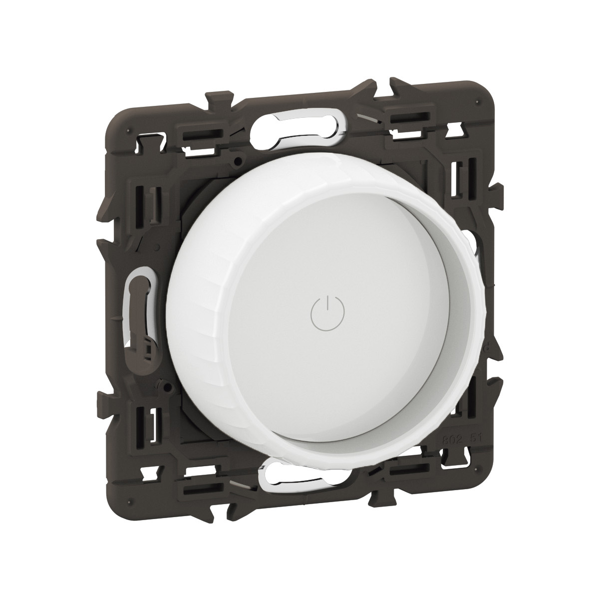Variateur avec bague rotative 200W LED Céliane - Blanc avec support, à équiper d'une plaque