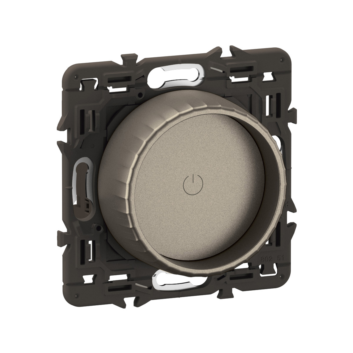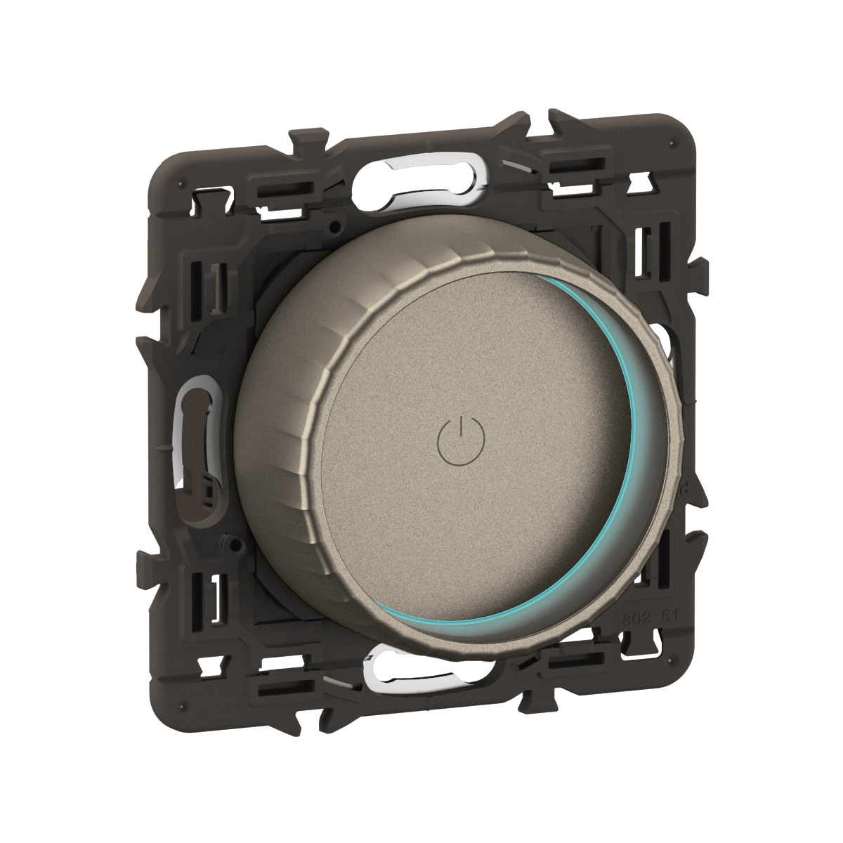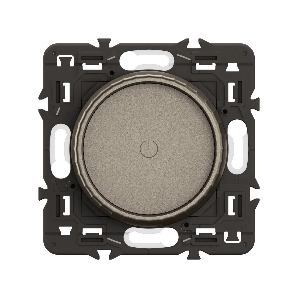 Variateur avec bague rotative 200W LED Céliane - Titanium avec support, à équiper d'une plaque