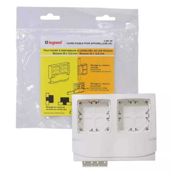 Cadre double pour appareillage apparent - pour moulures hauteur 12,5mm
