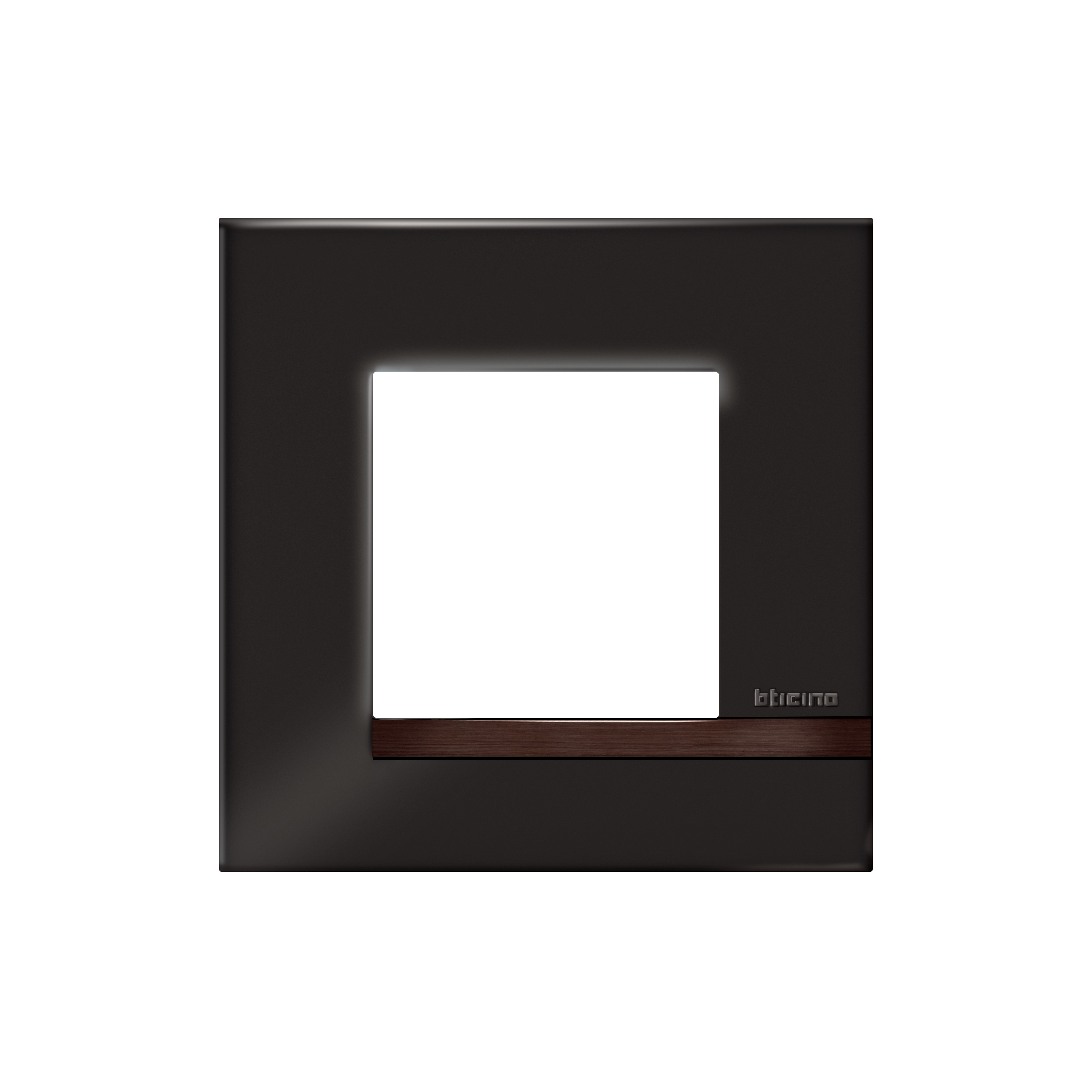 Plaque Altège Collection Déco 1 poste finition Onyx - noir brillant avec liseré bois foncé