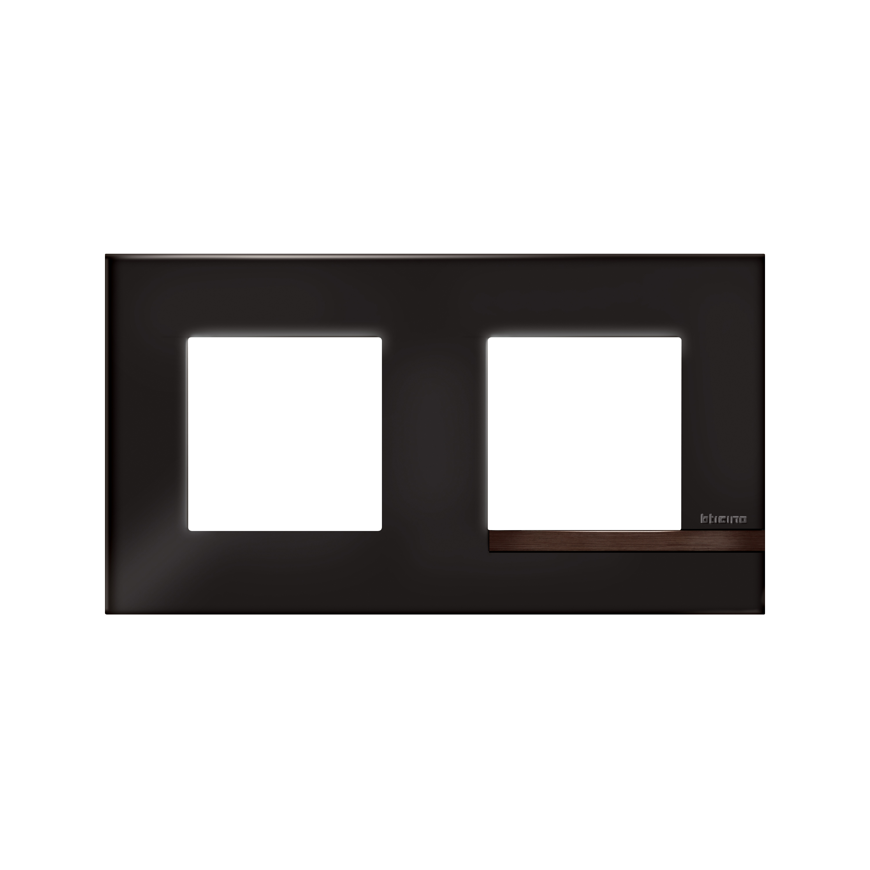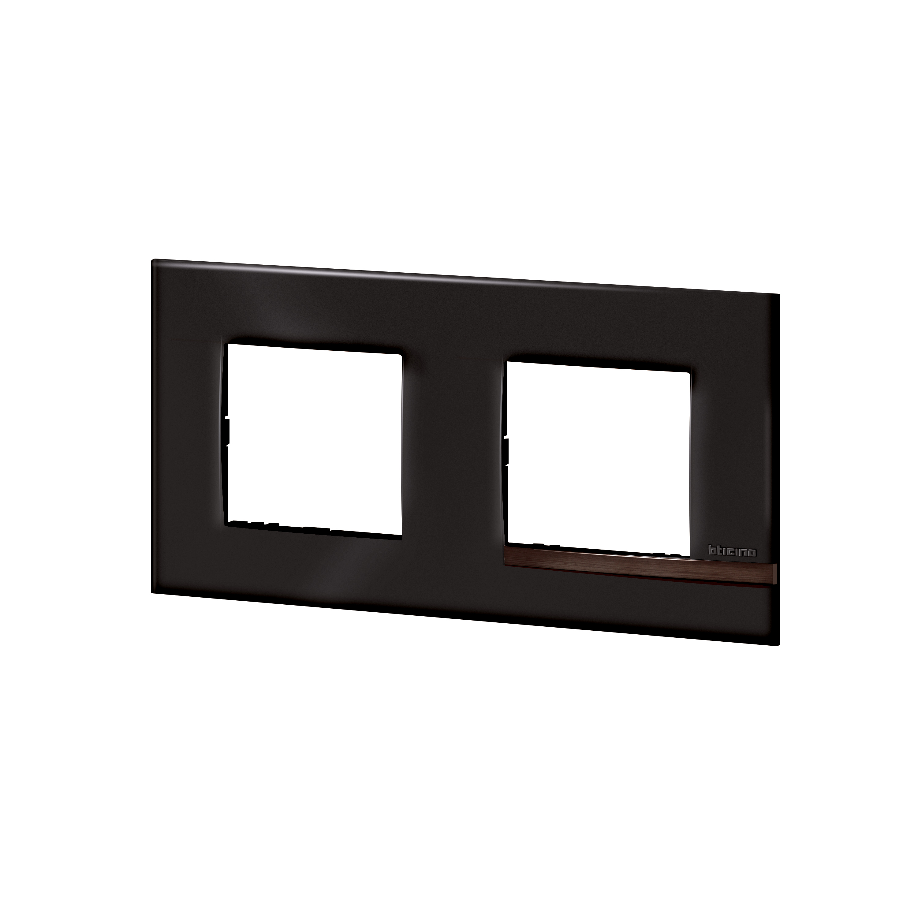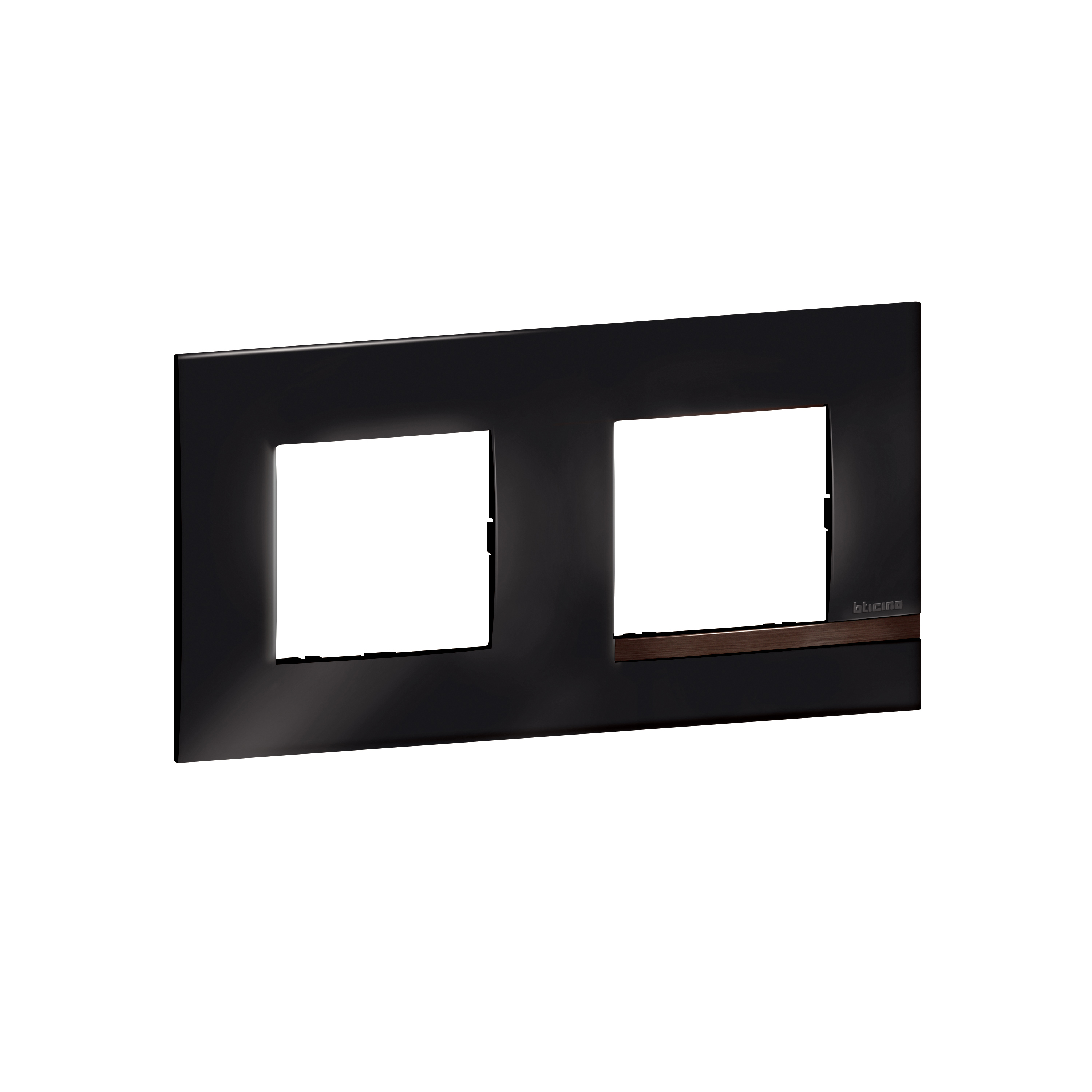 Plaque Altège Collection Déco 2 postes finition Onyx - noir brillant avec liseré bois foncé
