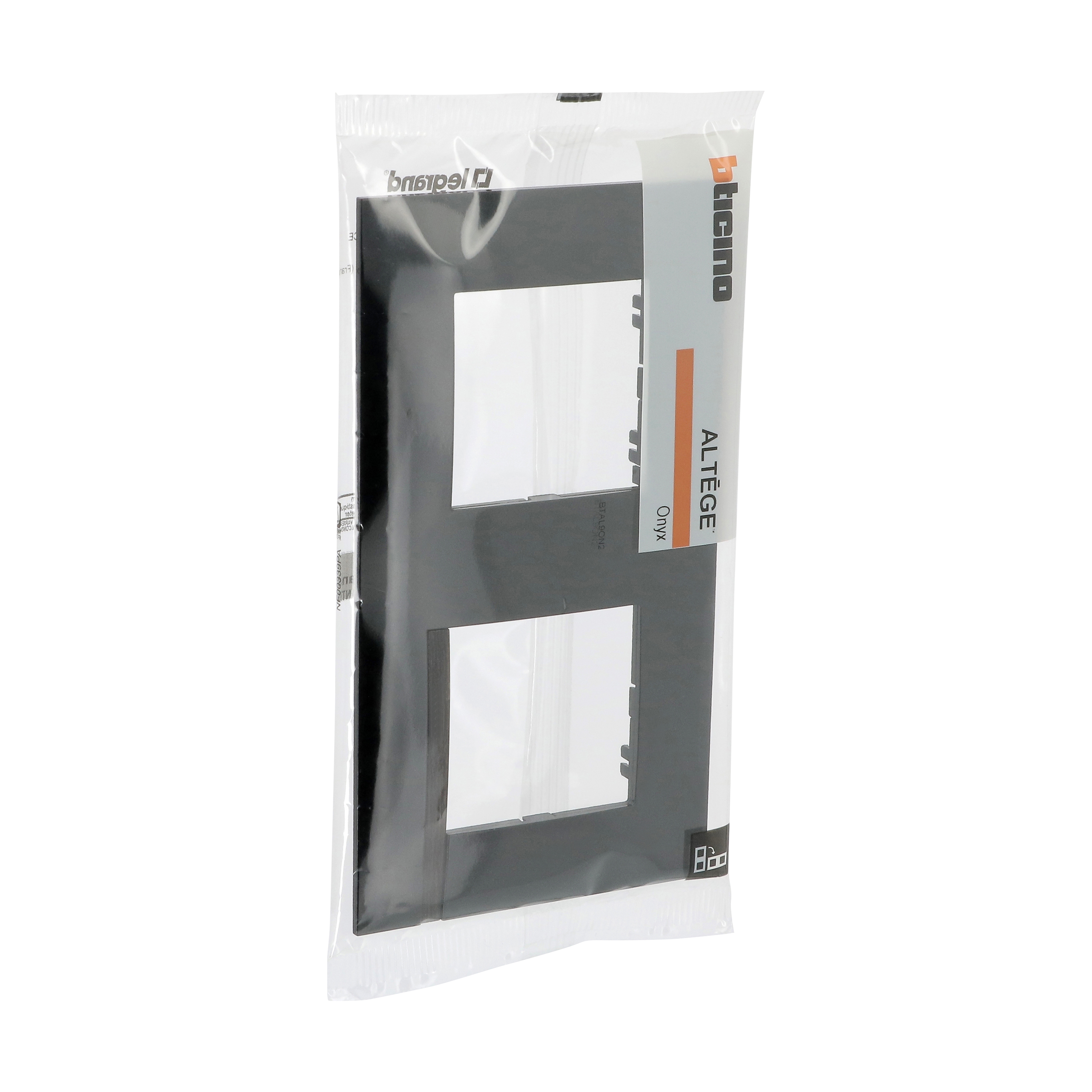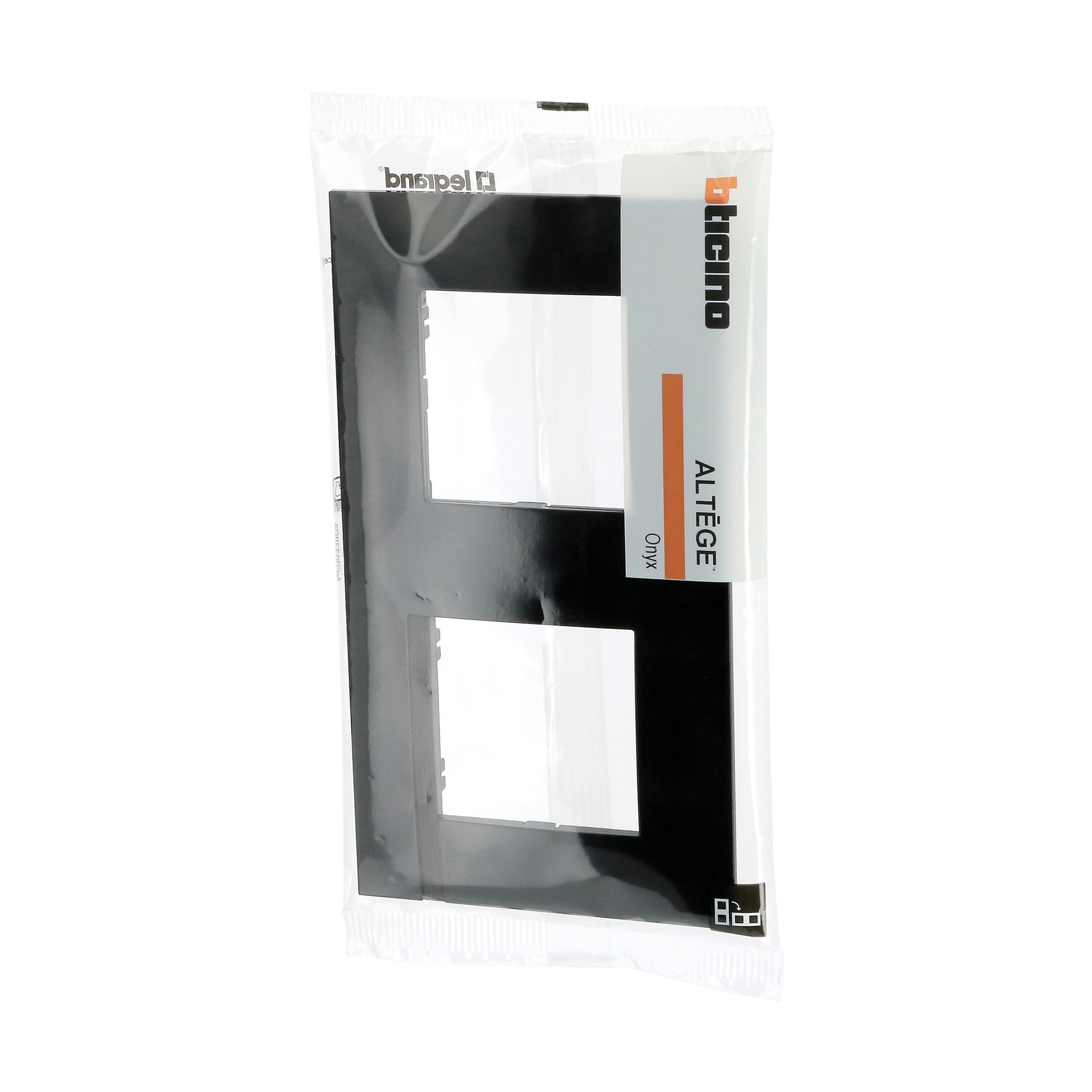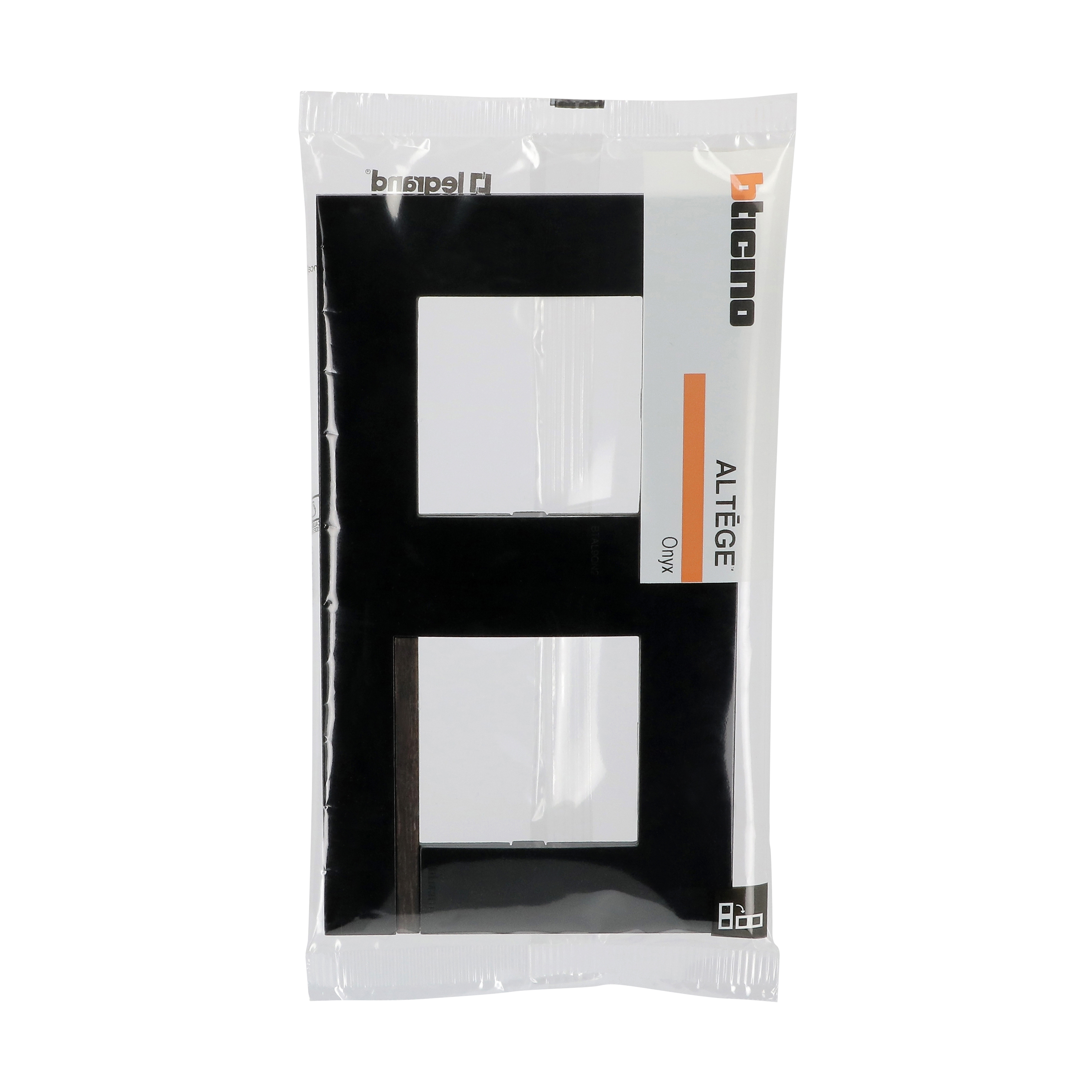 Plaque Altège Collection Déco 2 postes finition Onyx - noir brillant avec liseré bois foncé