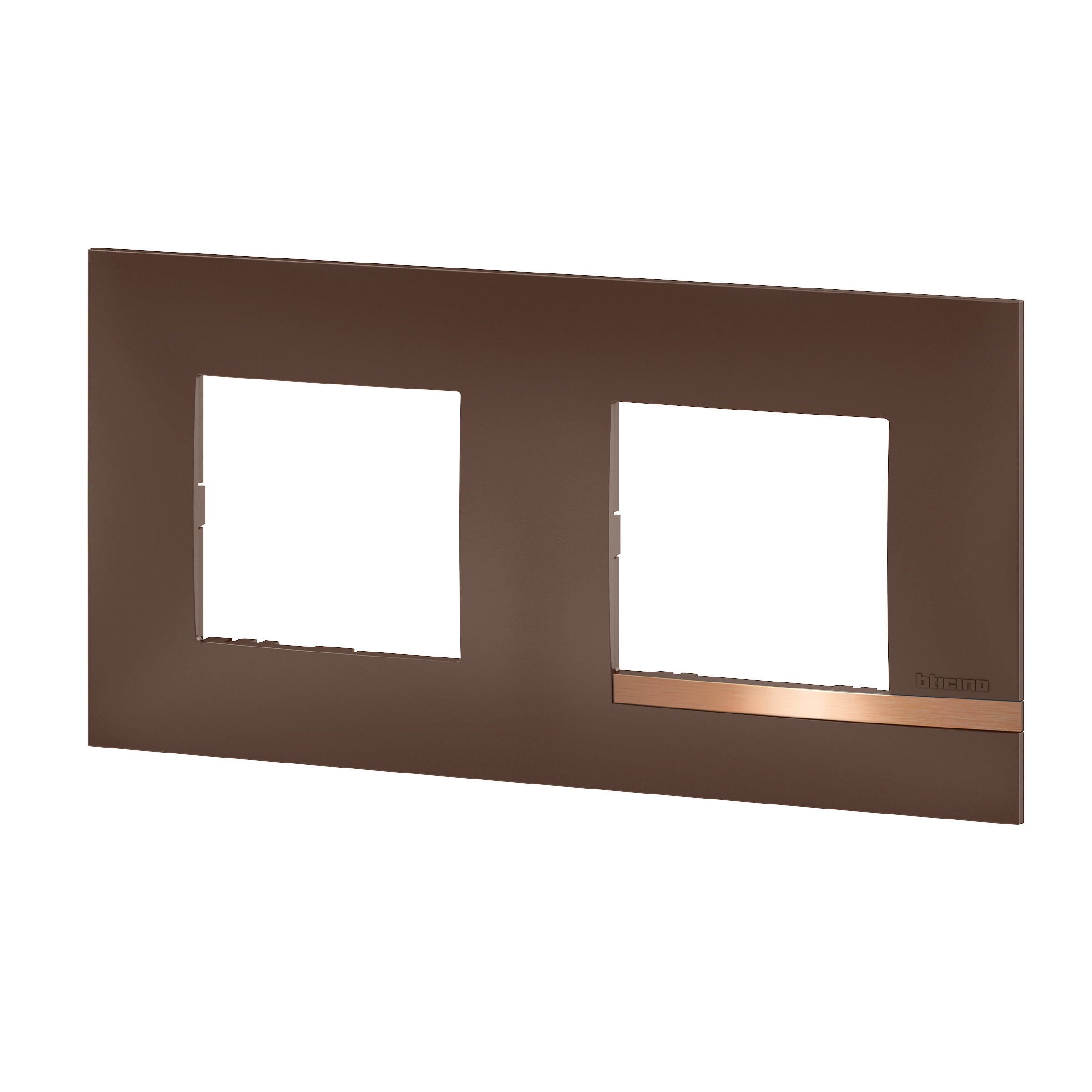 Plaque Altège Collection Déco 2 postes finition Terre de sienne - marron avec liseré effet cuivre