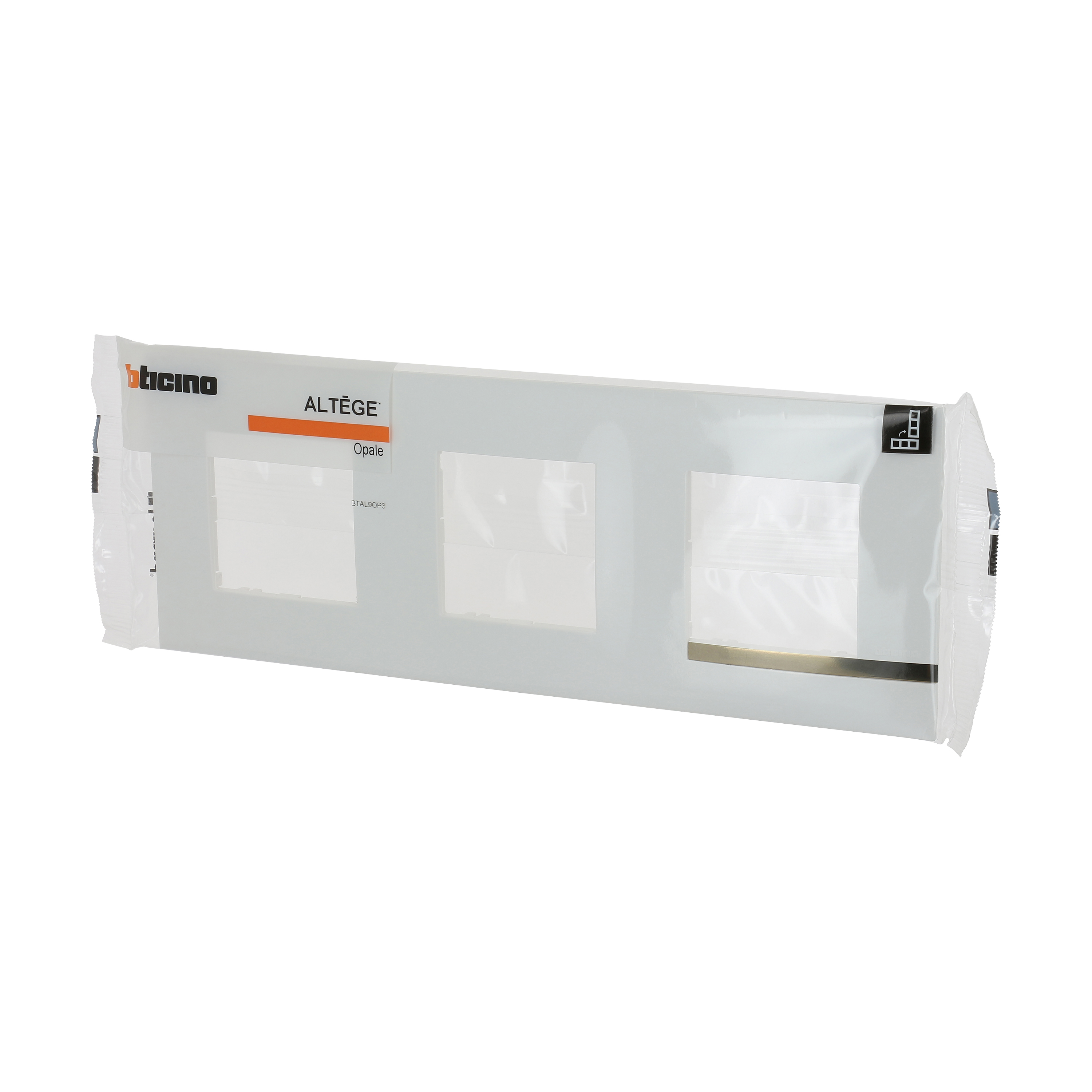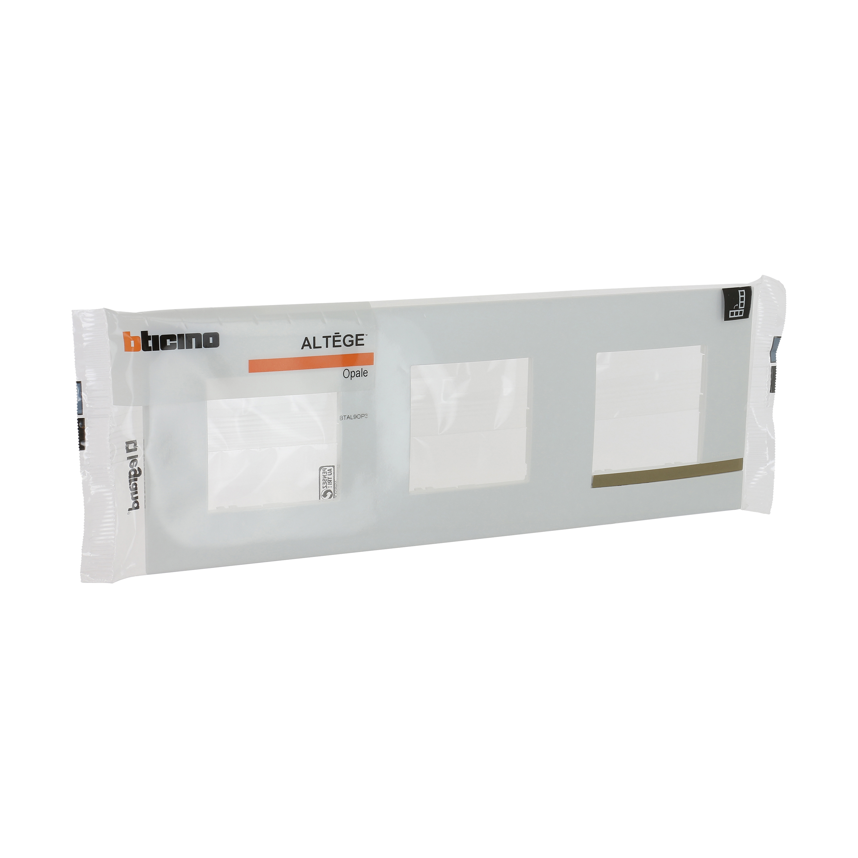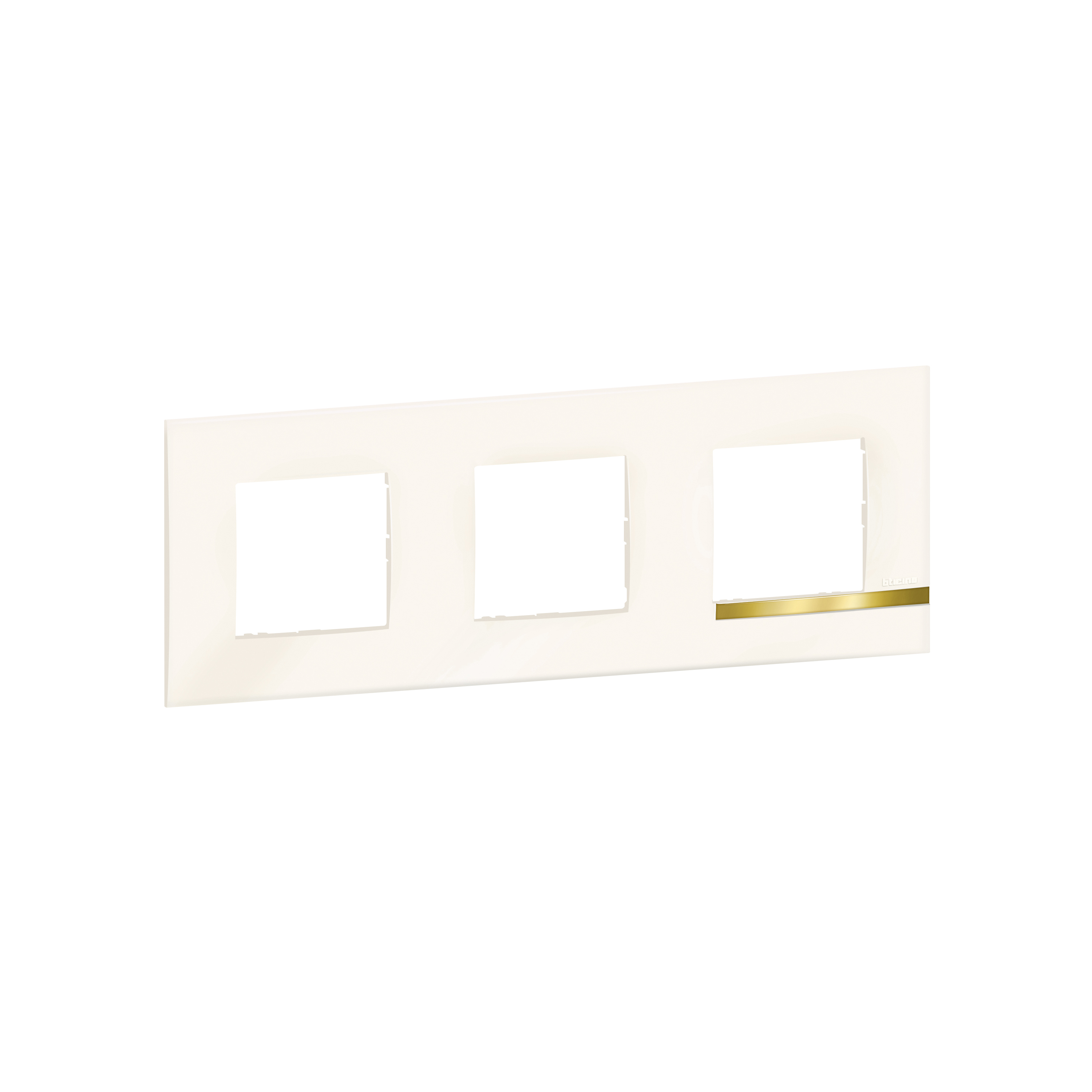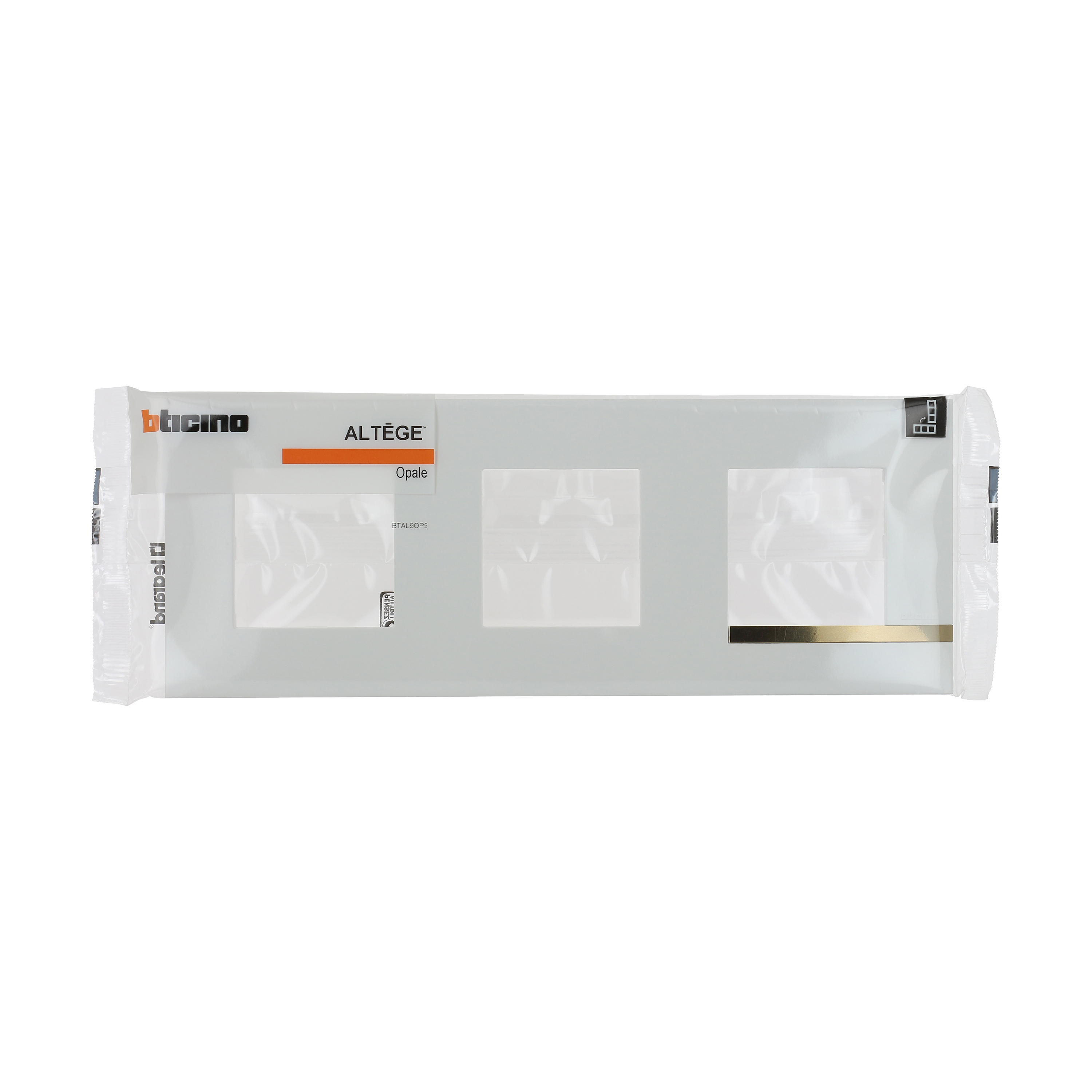 Plaque Altège Collection Déco 3 postes finition Opale - blanc brillant avec liseré imitation or