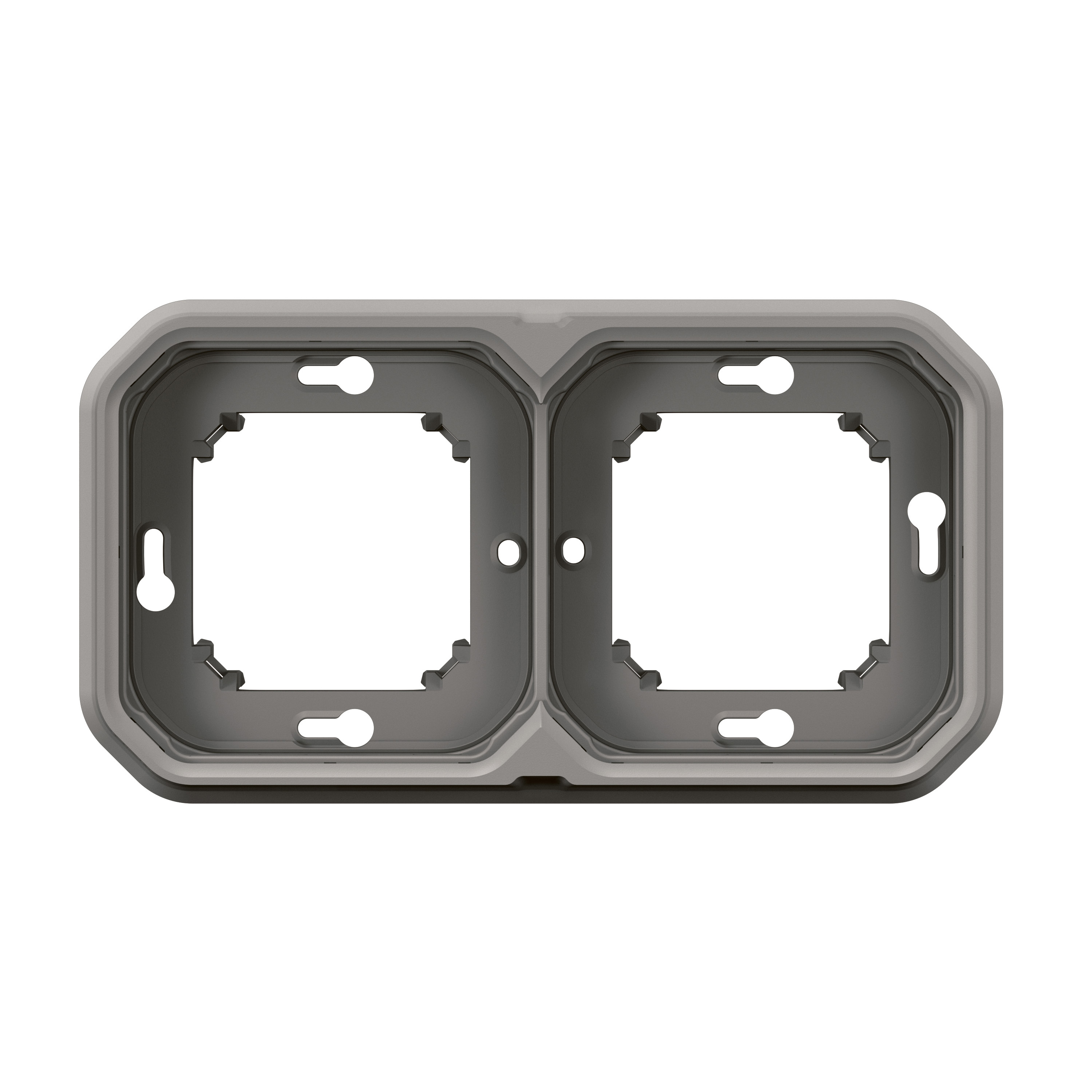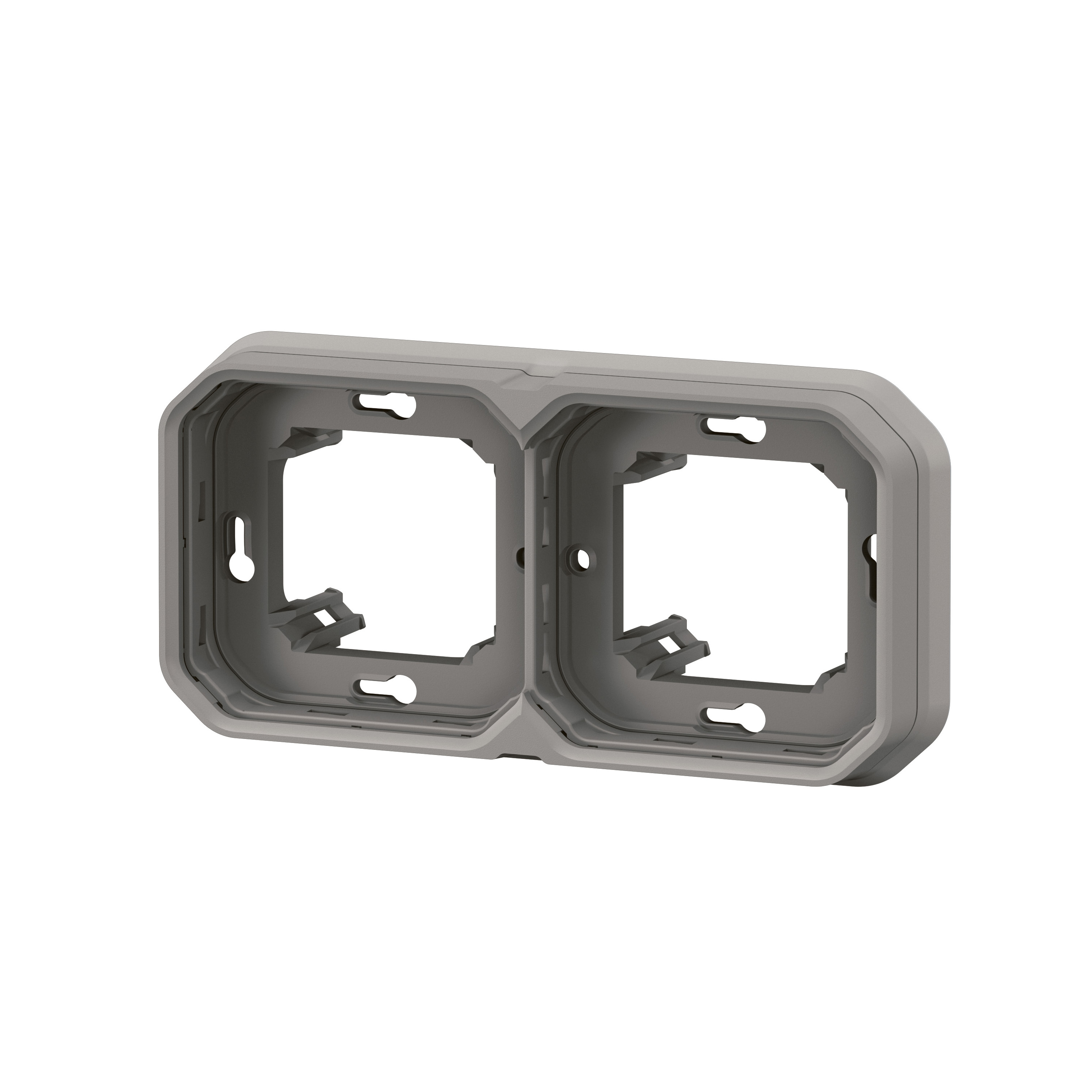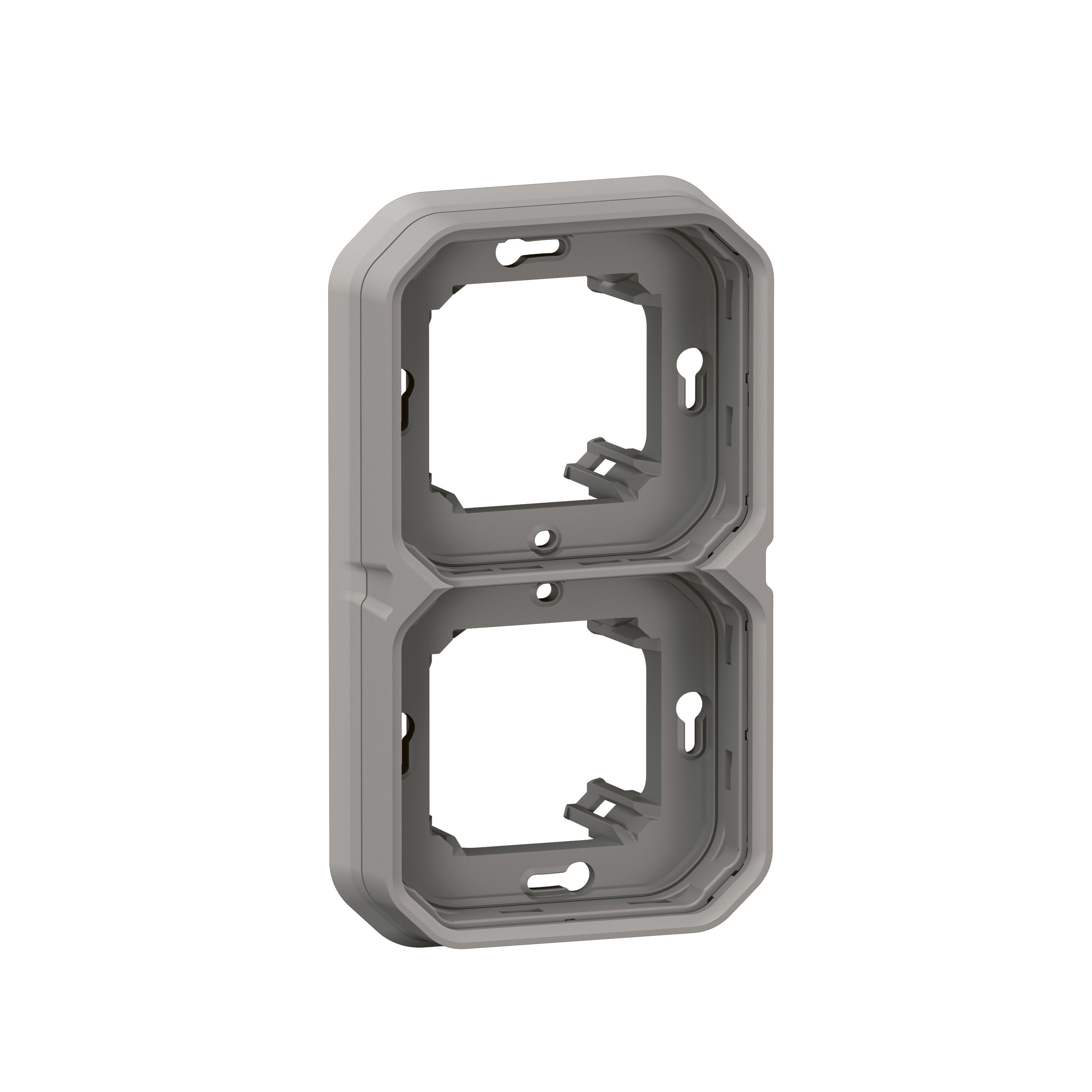 Support plaque étanche 2 postes Plexo pour montage horizontal ou vertical en encastré des fonctions composables - gris