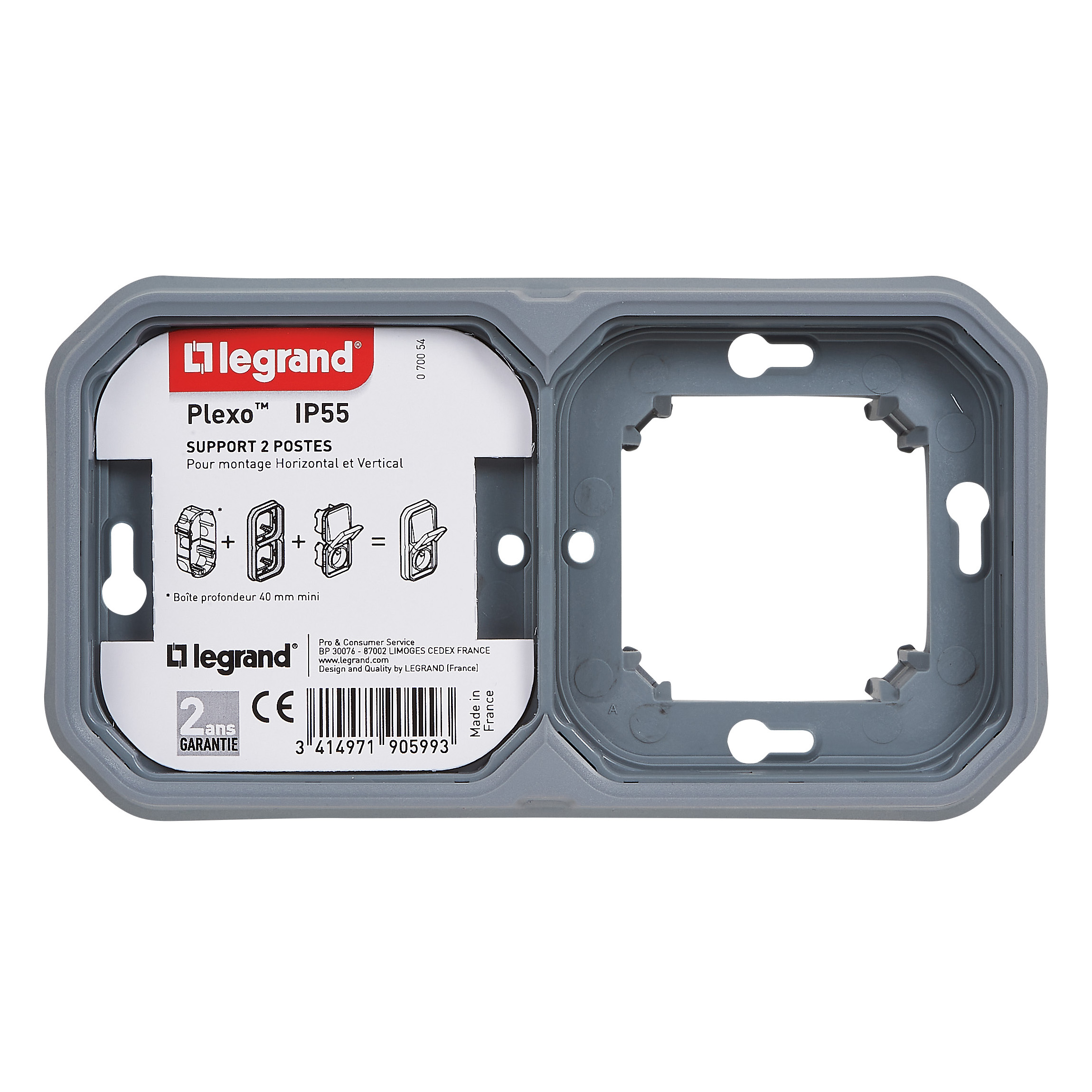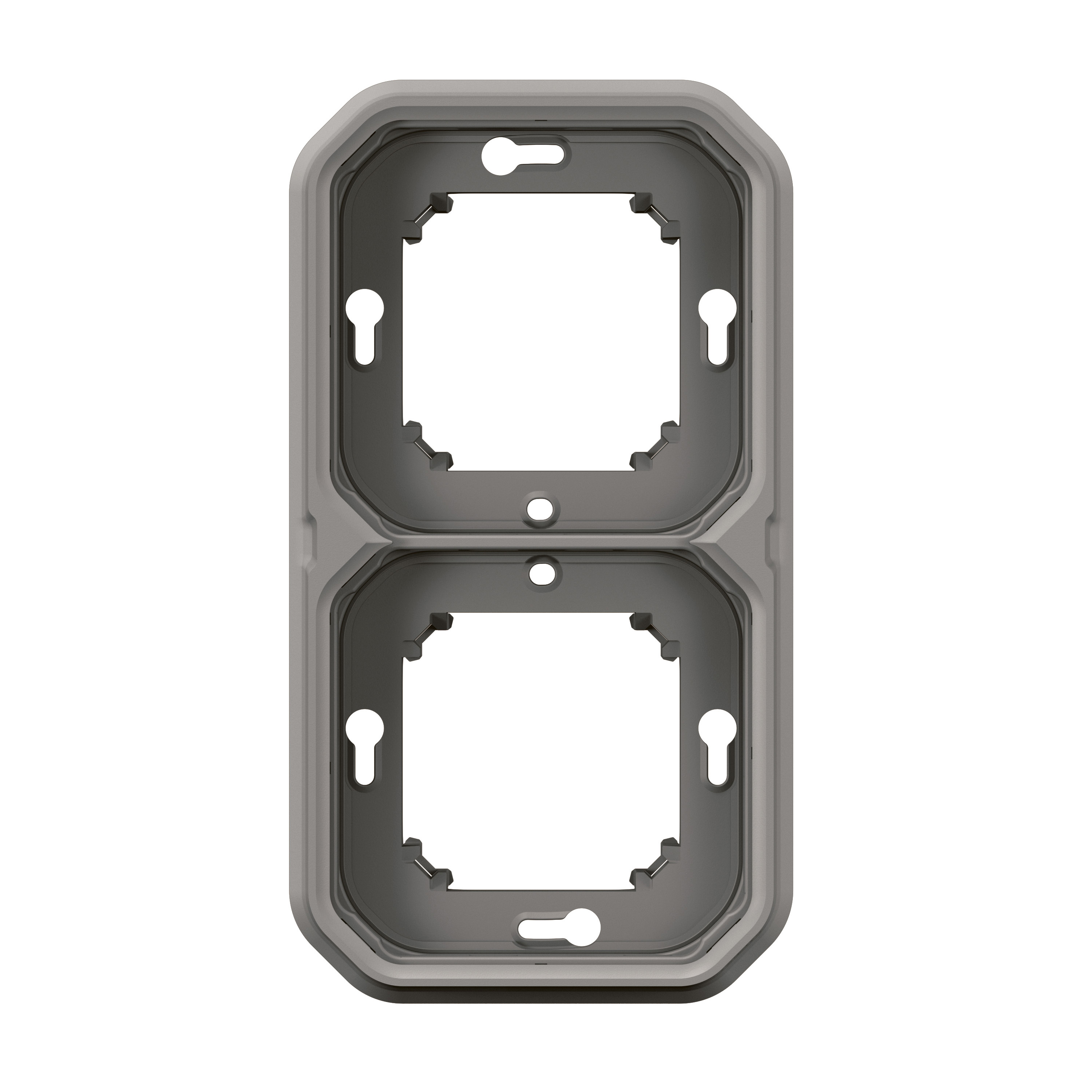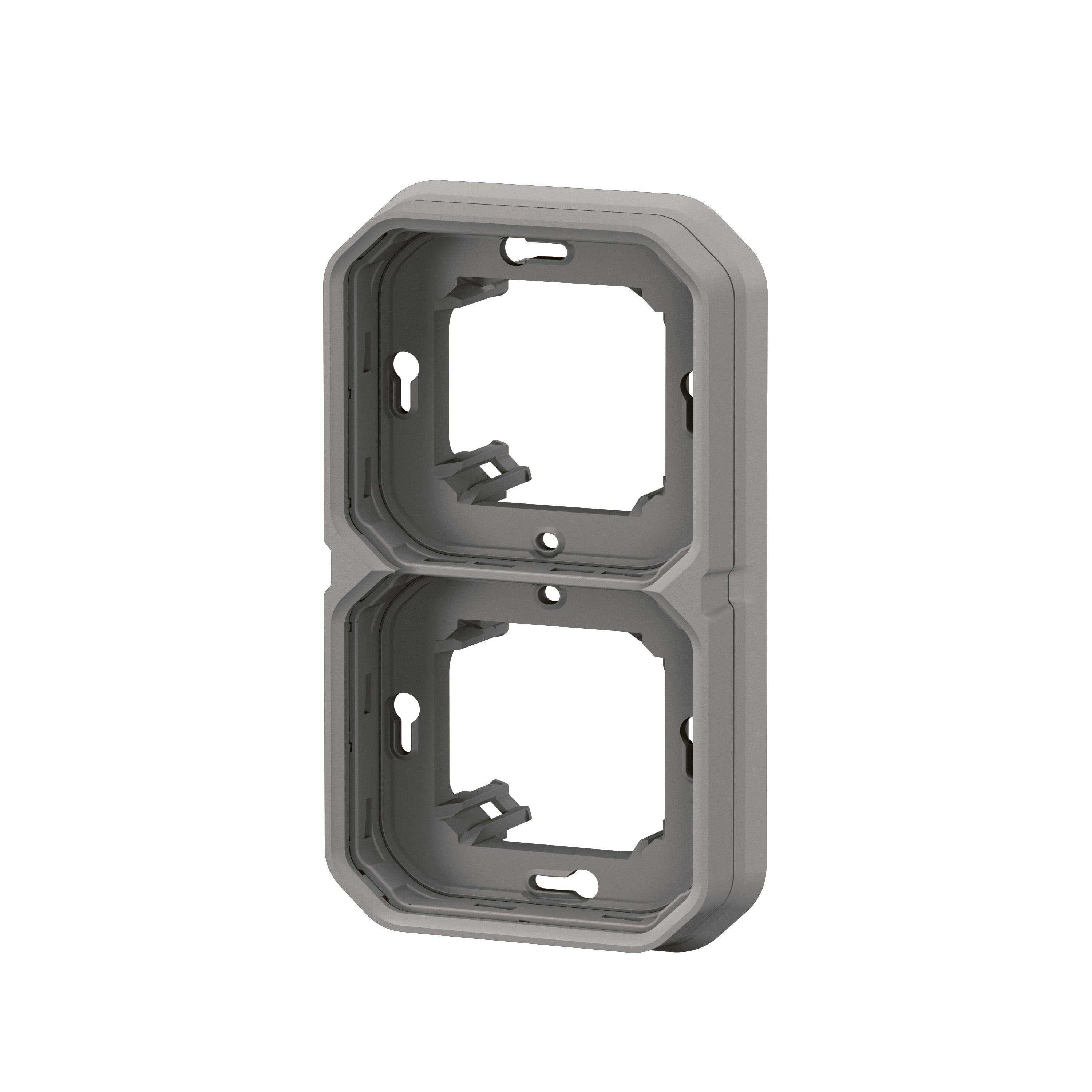 Support plaque étanche 2 postes Plexo pour montage horizontal ou vertical en encastré des fonctions composables - gris