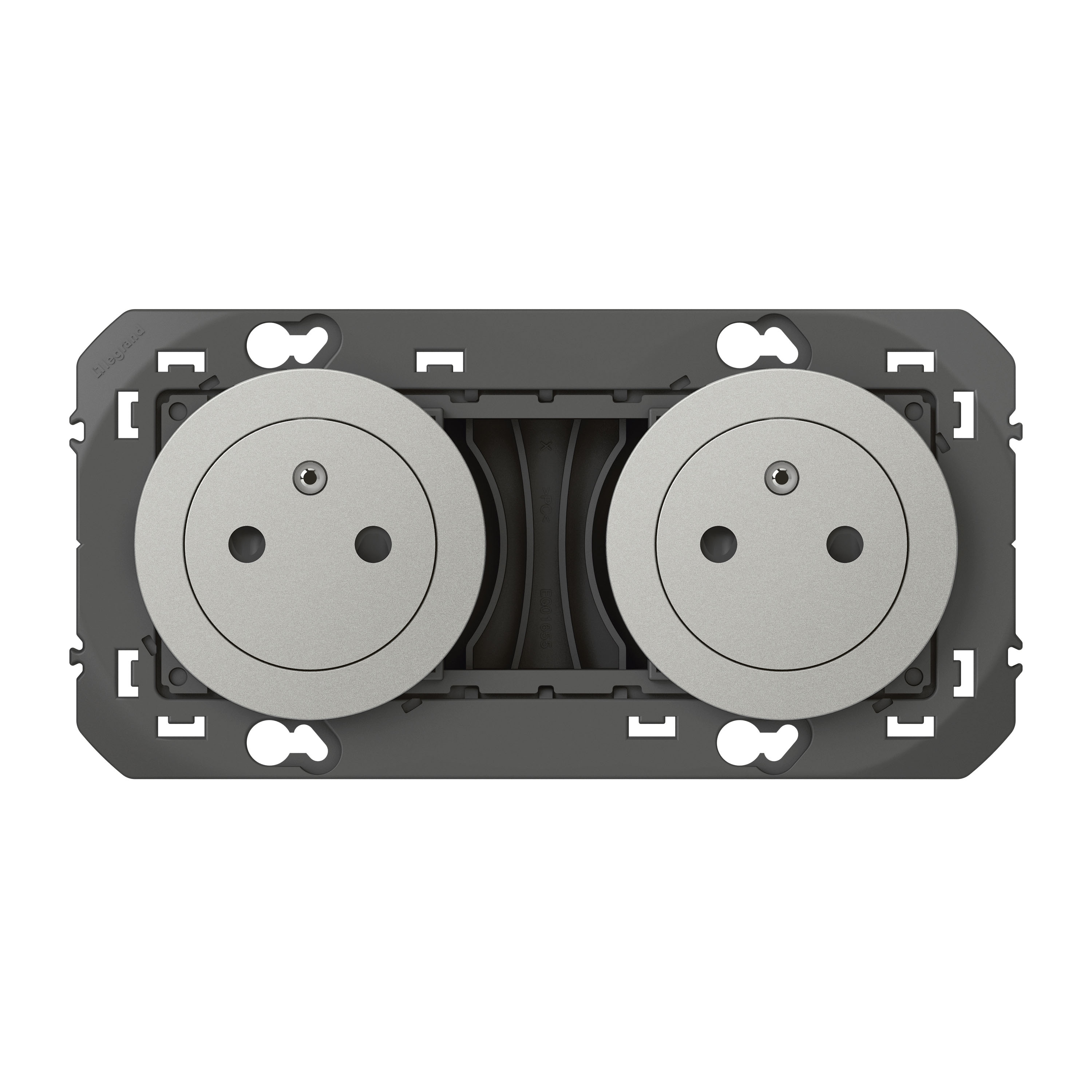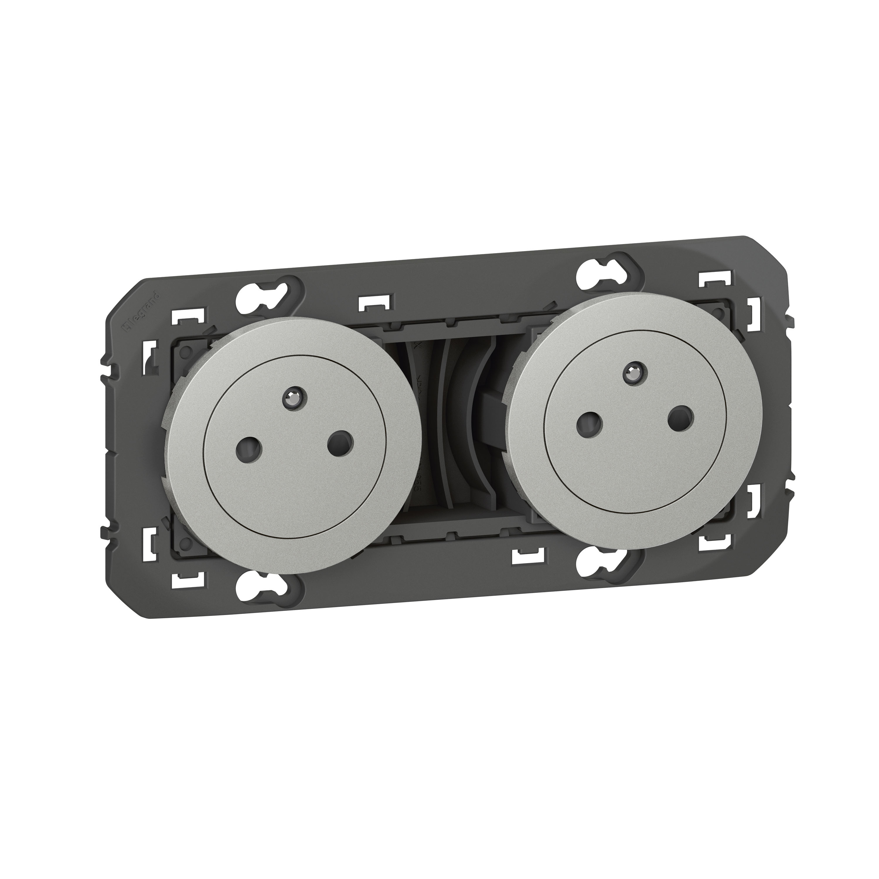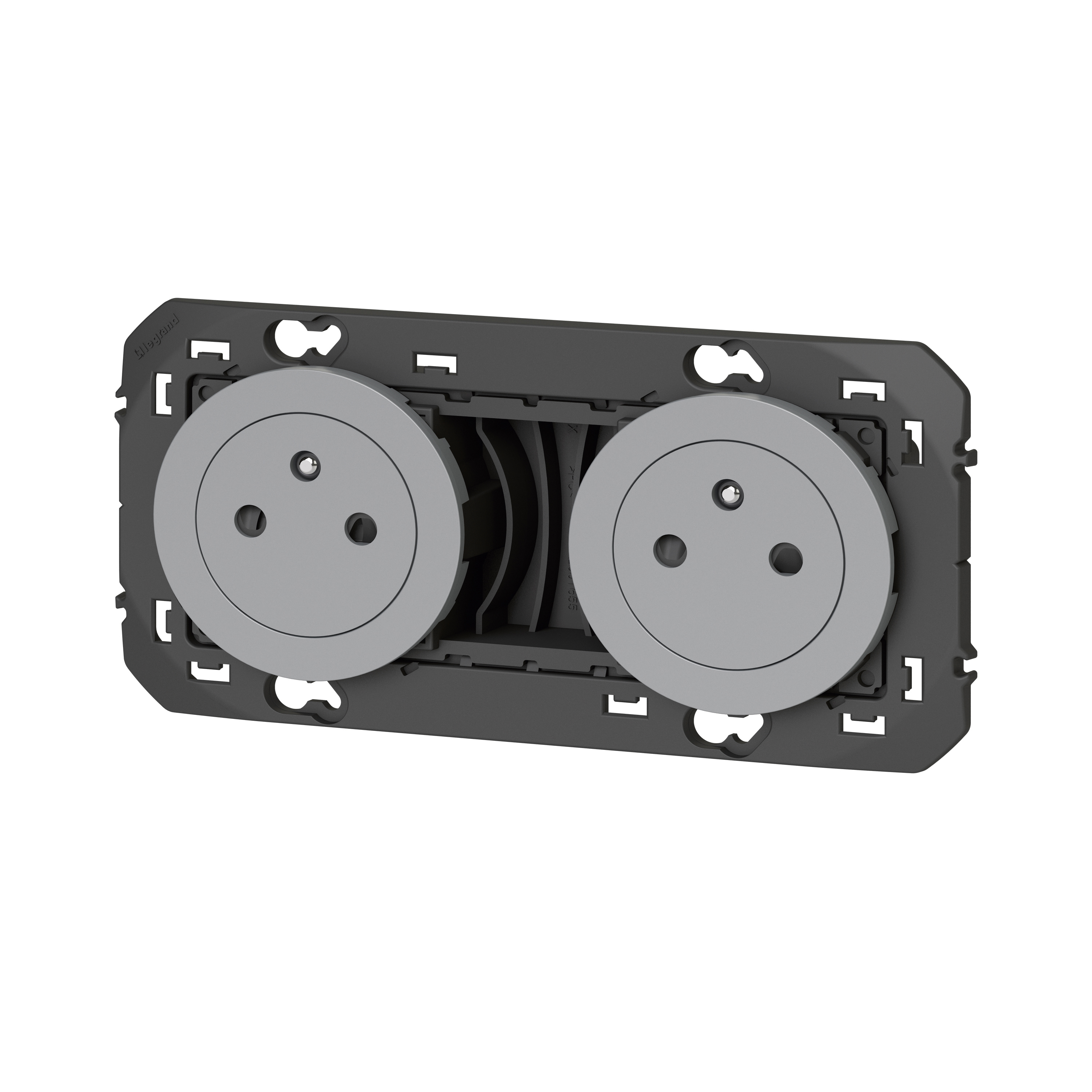 dooxie, une double prise de courant, équipée d'un support et à compléter d'une plaque, avec un design simple et moderne dans l'air du temps