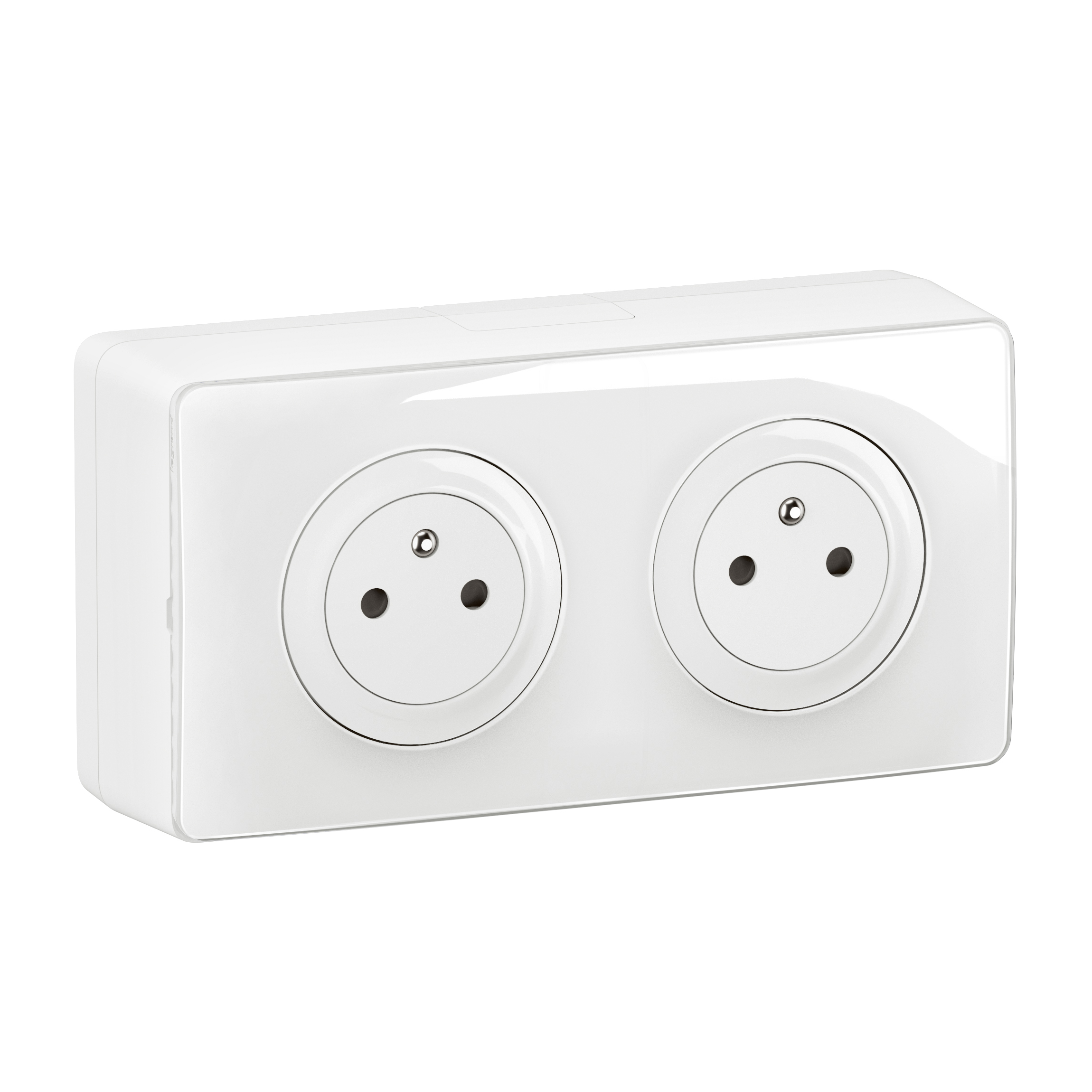 - 1 cadre en apparent 2 postes - Prise avec éclips de protection pour protection des enfants