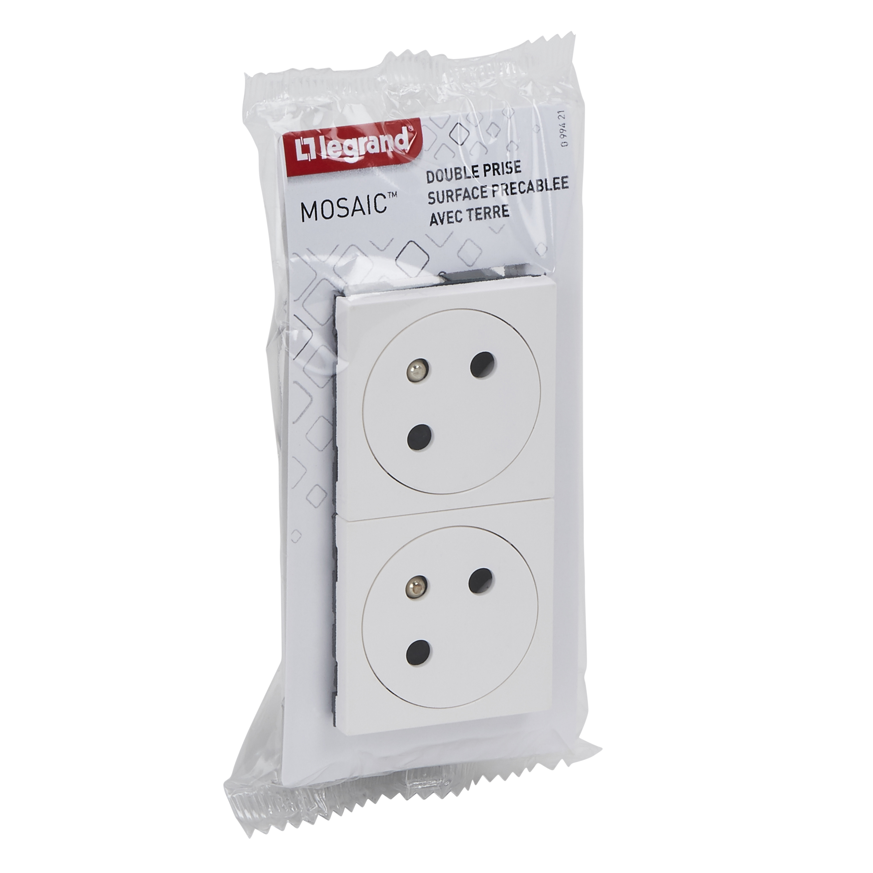 Double prise de courant Surface Mosaic Link à 45° précâblée - blanc