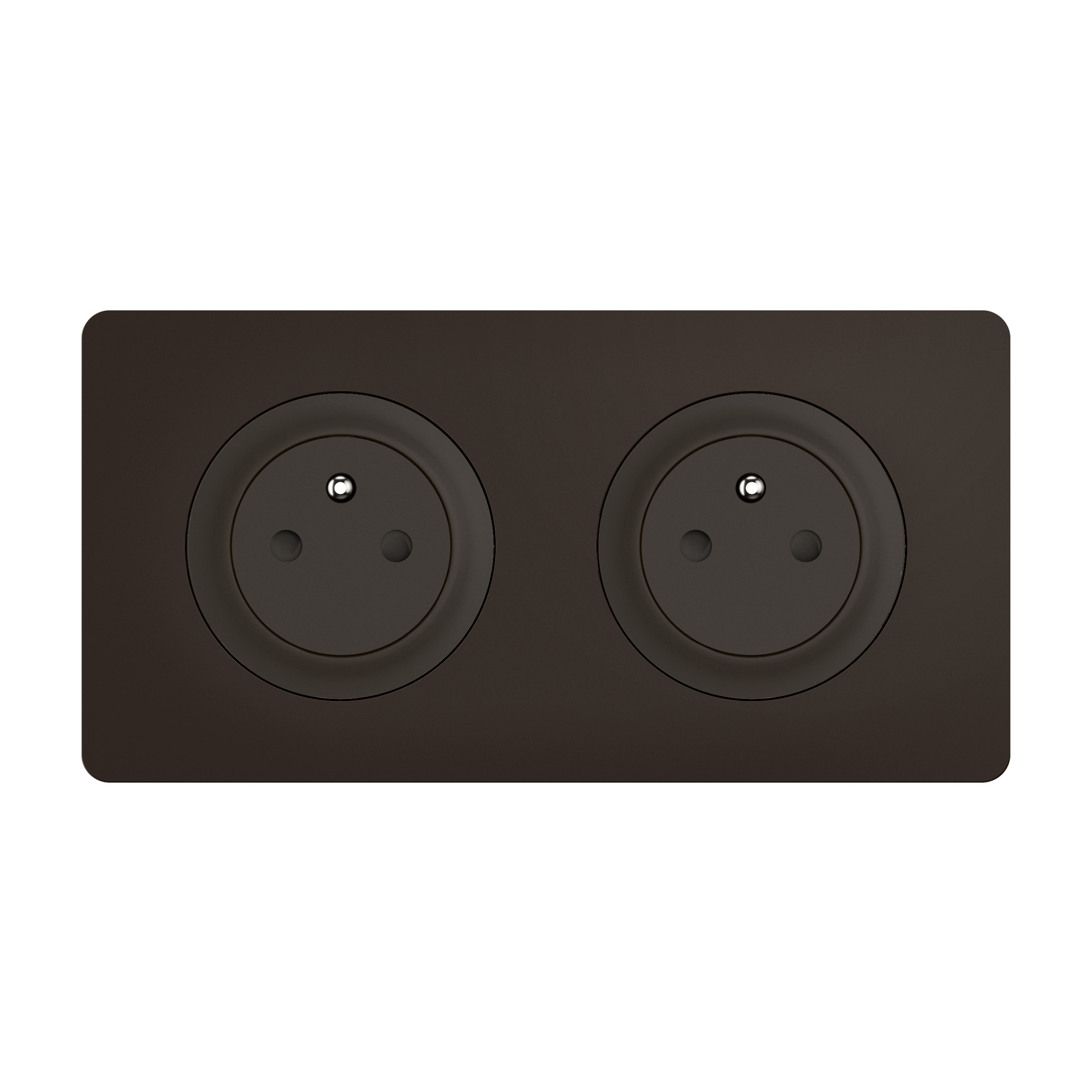 Kit double prise 2P+T Surface précâblées - livrées complètes avec support, enjoliveurs Noir, plaque Noir Mat 2 postes et boîte d'encastrement multi-matériaux 2 postes