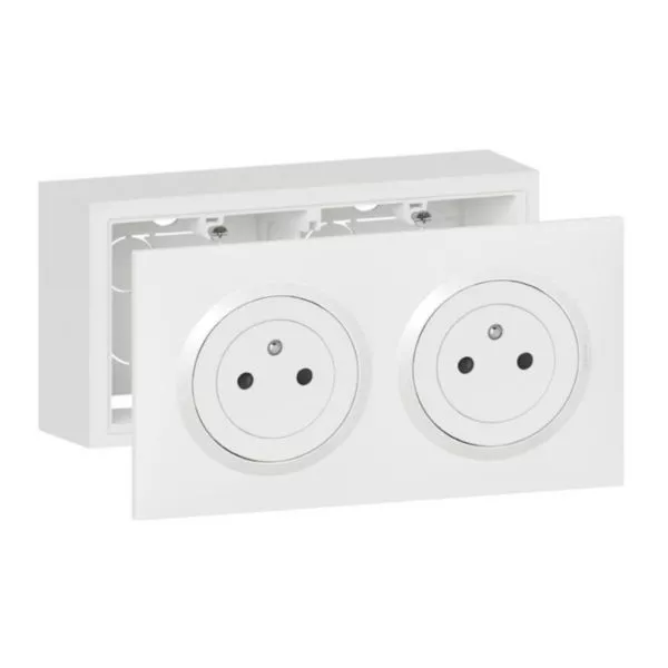dooxie, kit prêt à poser avec double prise de courant complète et un cadre pour une pose en apparent au mur
