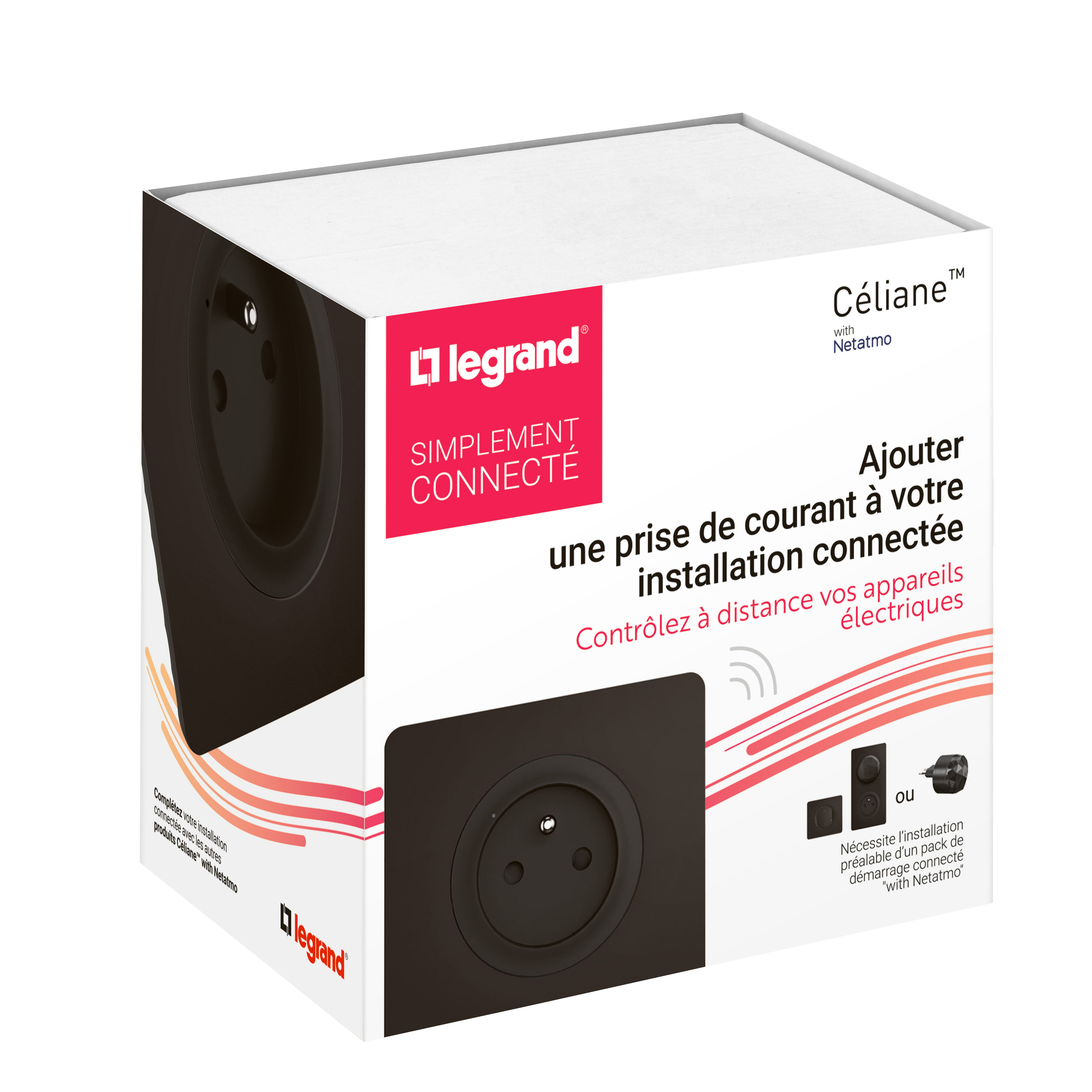 Prise connectée 2P+T 16A Céliane with Netatmo avec plaque - Noir
