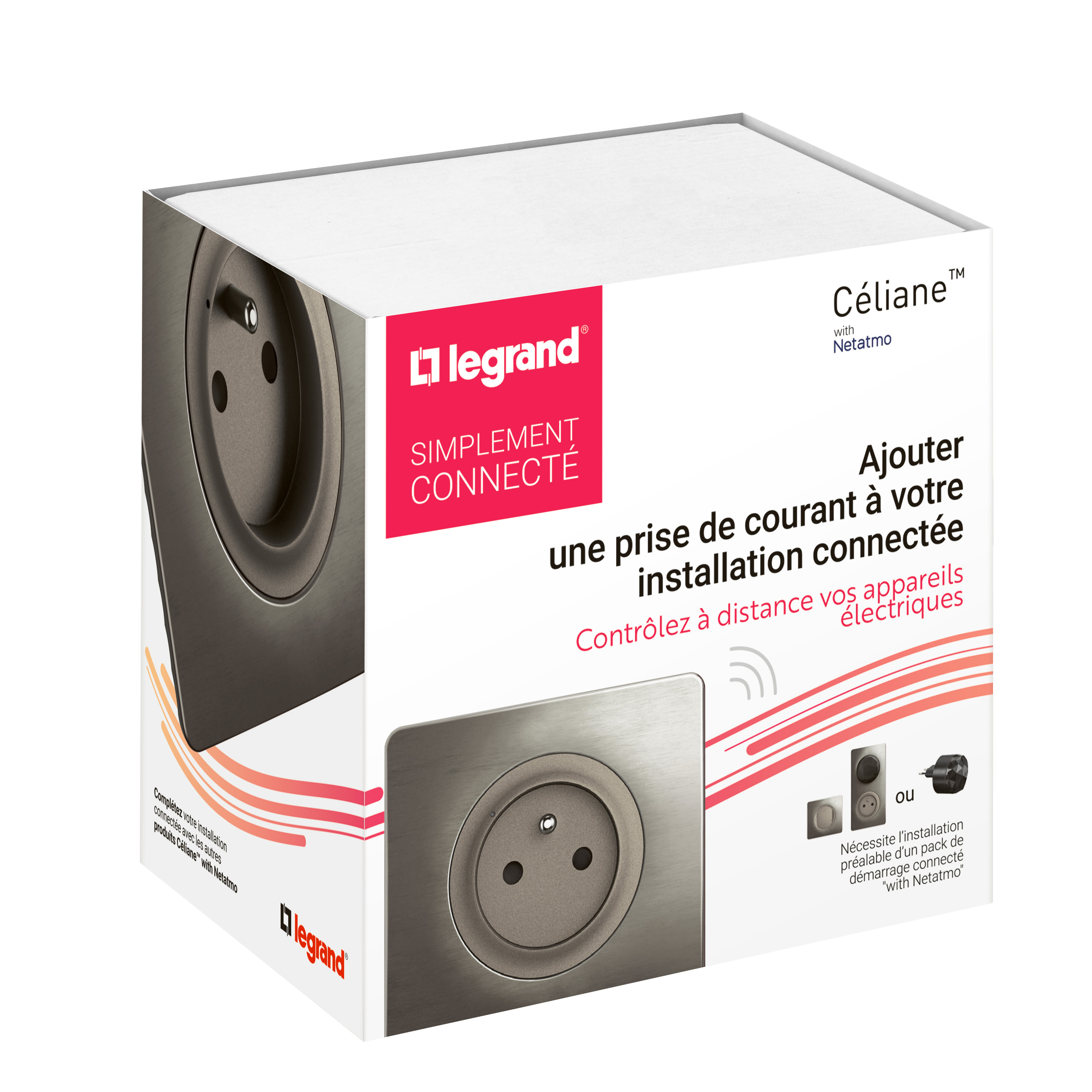 Prise connectée 2P+T 16A Céliane with Netatmo avec plaque - Titanium