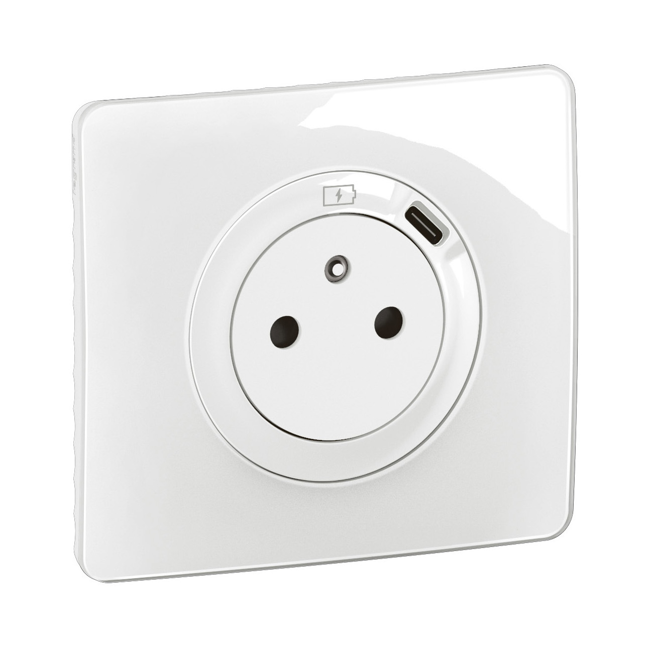Prise de courant 2P+T Surface Confort avec prise USB Type-C intégrée avec plaque Céliane - Blanc